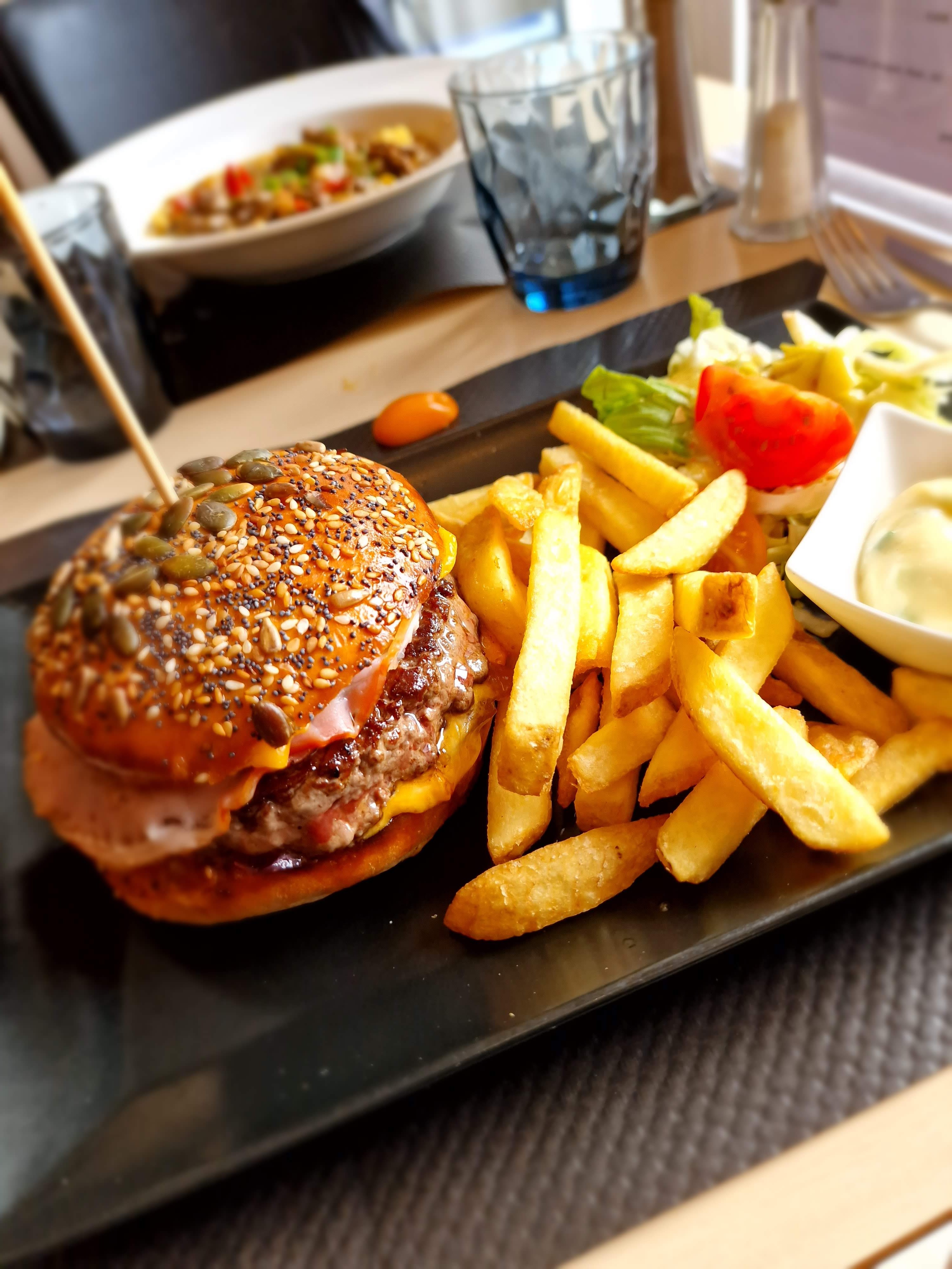 Excellente table, personnel très sympathique, accueili sans problème avec notre chienne Berger Australien, excellent hamburger et ma femme s'est régalé avec le plat du jour, un tajine de boeuf 👍🏻 Tarifs très abordables