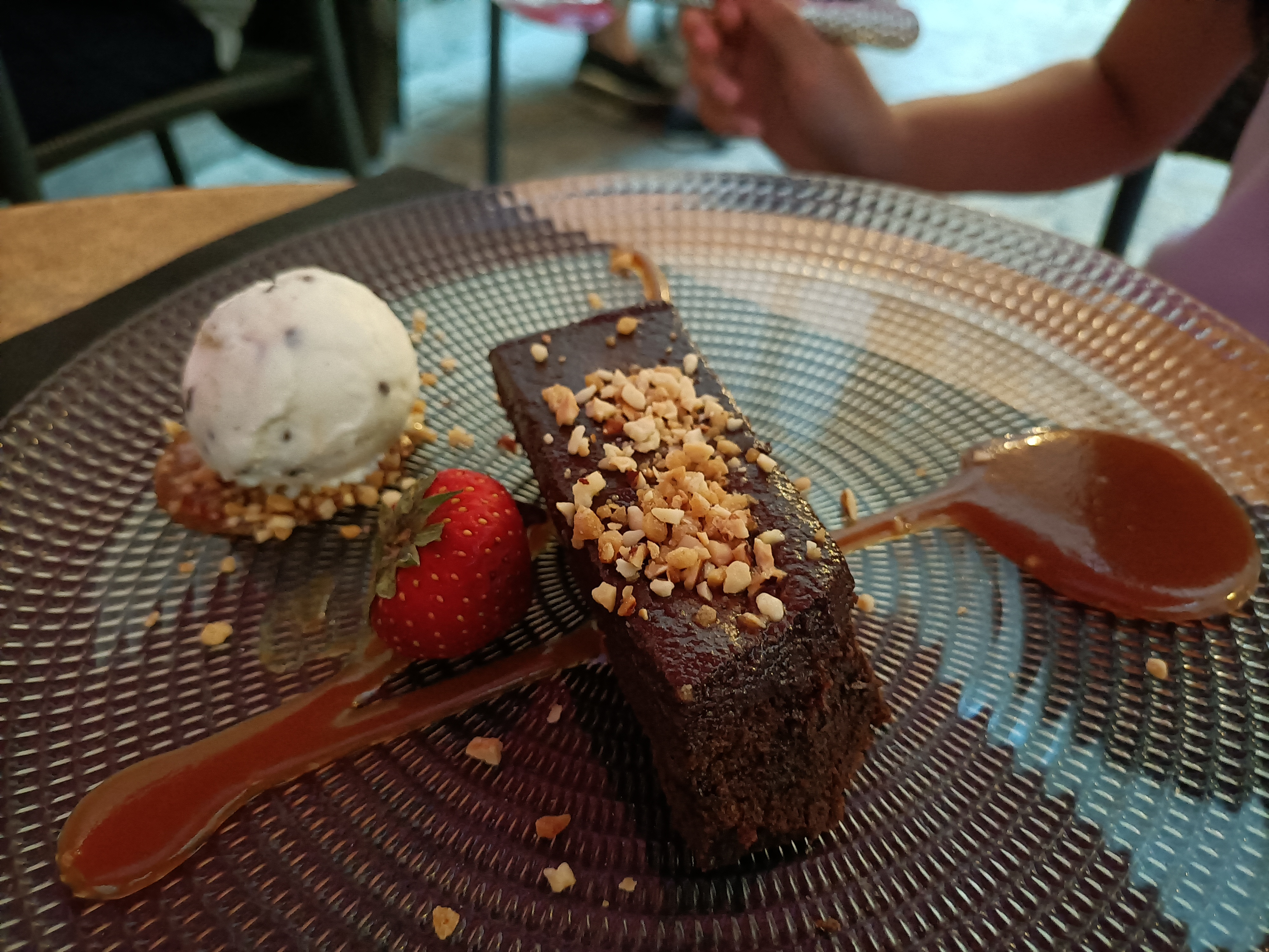 Tout était très bon. Dans la soupe de chocolat, une boule vanille supplémentaires serait bien. La porte qui permet d'accéder au patio fait un couinement désagréable. Ce doit être le plus gros défaut Personnel agréable