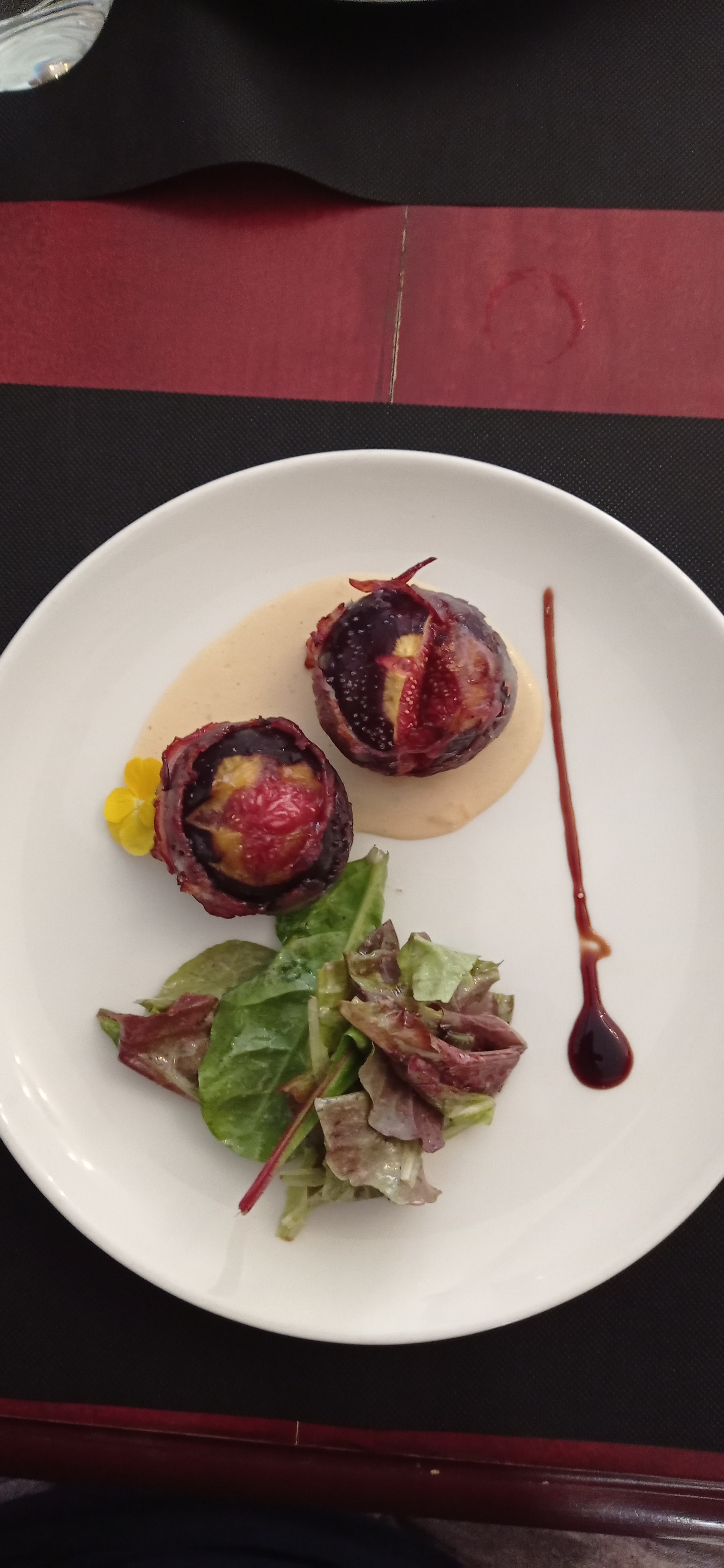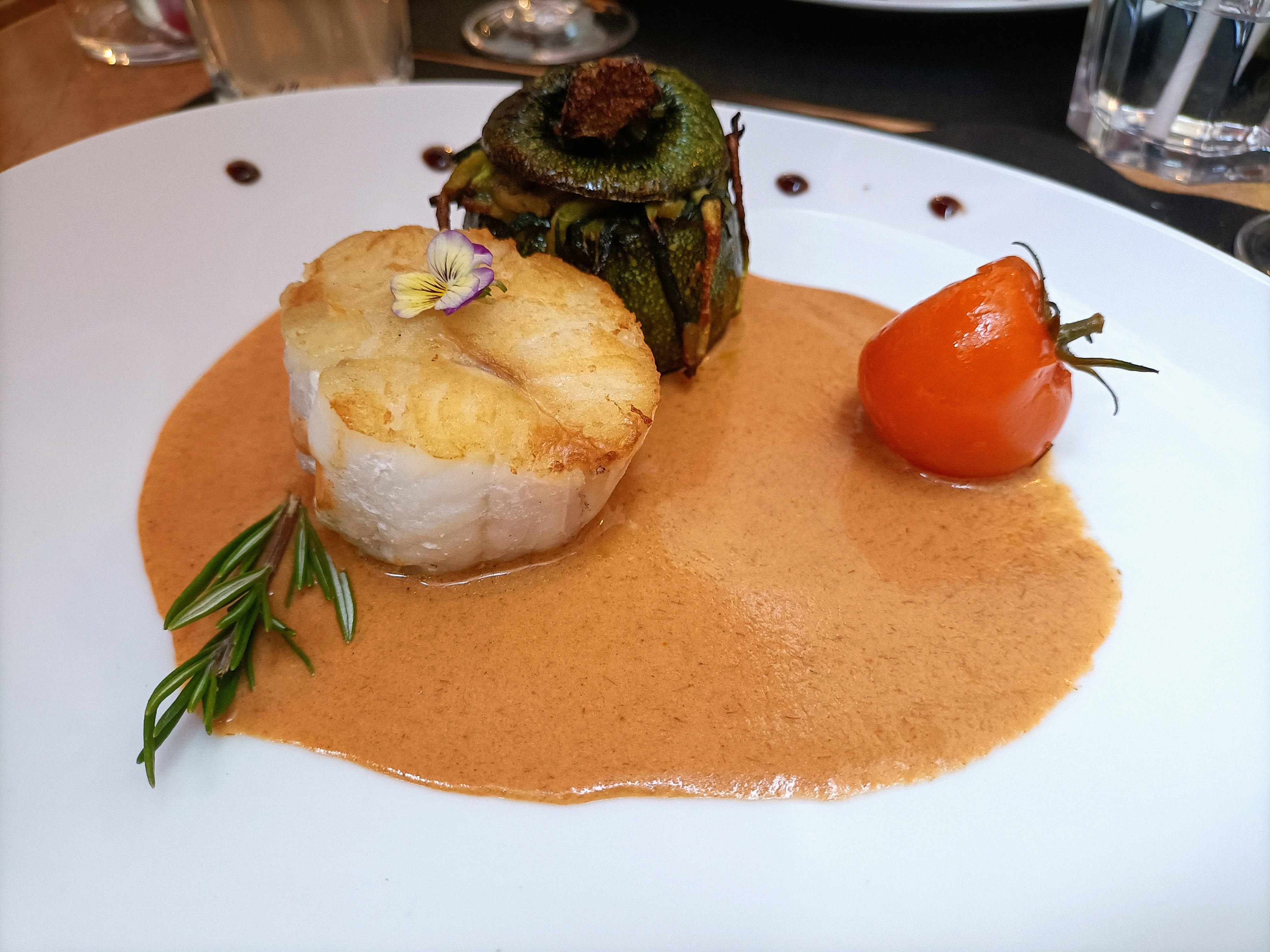 3 étoiles car produits frais et bien cuisines pour le plat principal ! Dommage que la verrine avec sauce baignait dans le jus de la viande dans l'assiette, pas top côté présentation ! L'entrée panna cota courgette fade et pas du tout relevée et le café gourmand sans surprise quant aux verrines ou pâtisserie Dommage, car prix 160 euros pour 3 personnes, plats à la carte avec 1/2 bouteille vin 1 soda, 1 gazeuse.