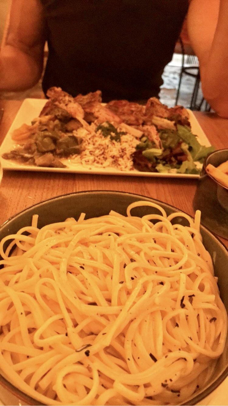 Accueil sympathique de la serveuse. Patron pas du tout aimable. La petite terrasse est jolie bien que située dans une rue passante (voitures). Le plat de linguine est excellent. Les cartes sont très usées !