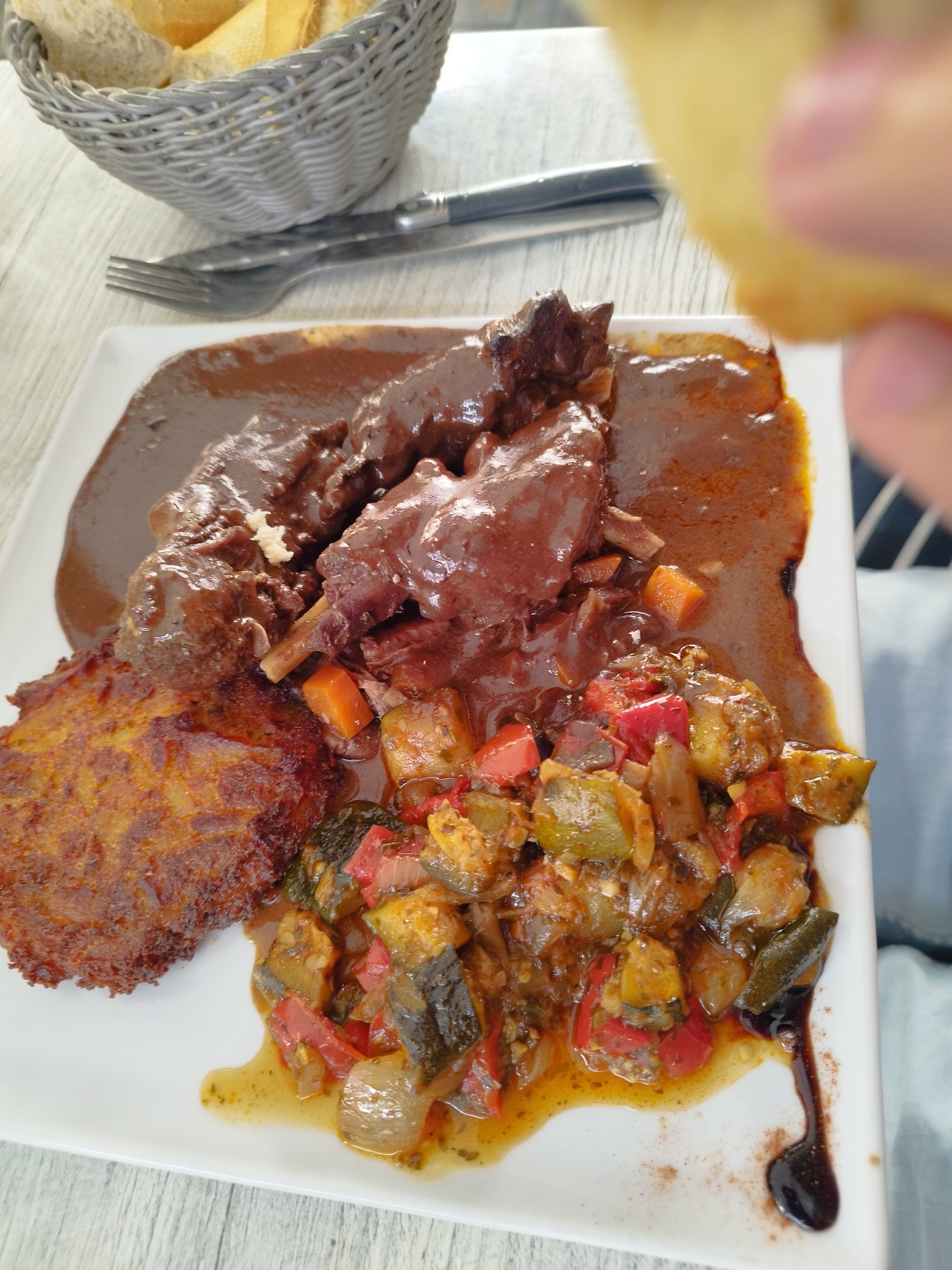 J'ai déjà mangé ici mais à une table devant après le marché. Cette fois, mon voisin m'a emmené au restaurant derrière, de jolis plafonds voûtés, une cave aménagée j'imagine. Bon service, bon repas juste pour le menu du formulaire, toujours d'un bon rapport qualité-prix à l'heure du déjeuner je recommande