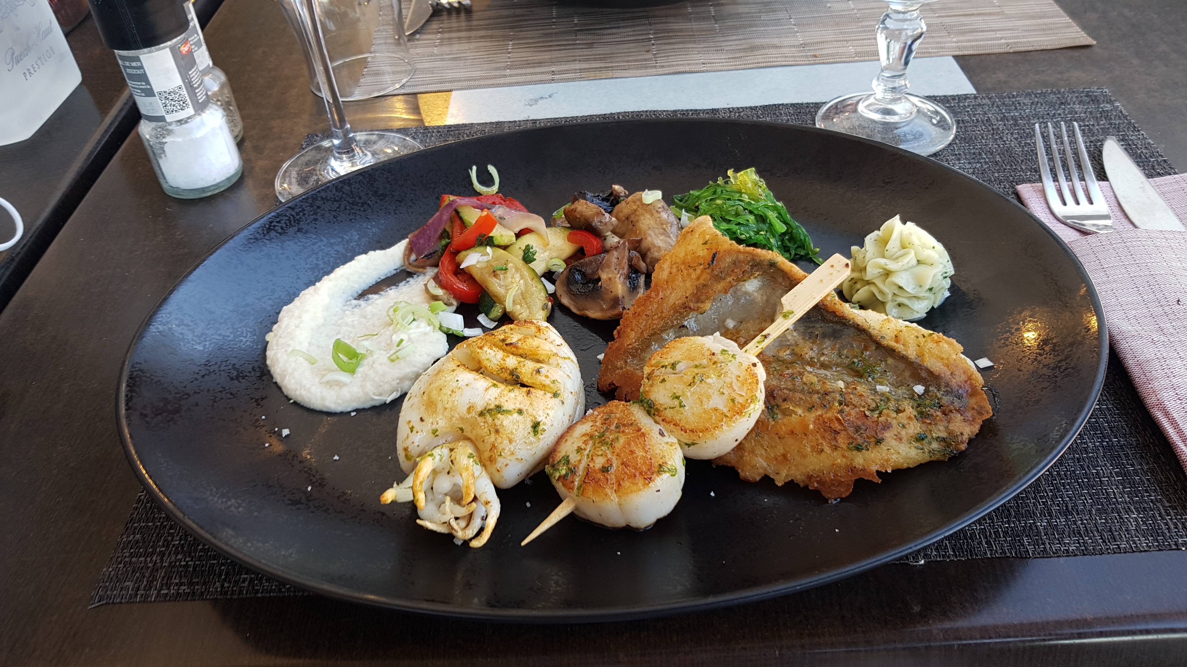 Nous avons très bien mangé, plats délicieux ( risotto crevettes, noix de st jacques, brochettes de noix de st jacques, tataki de thon). Service très sympa