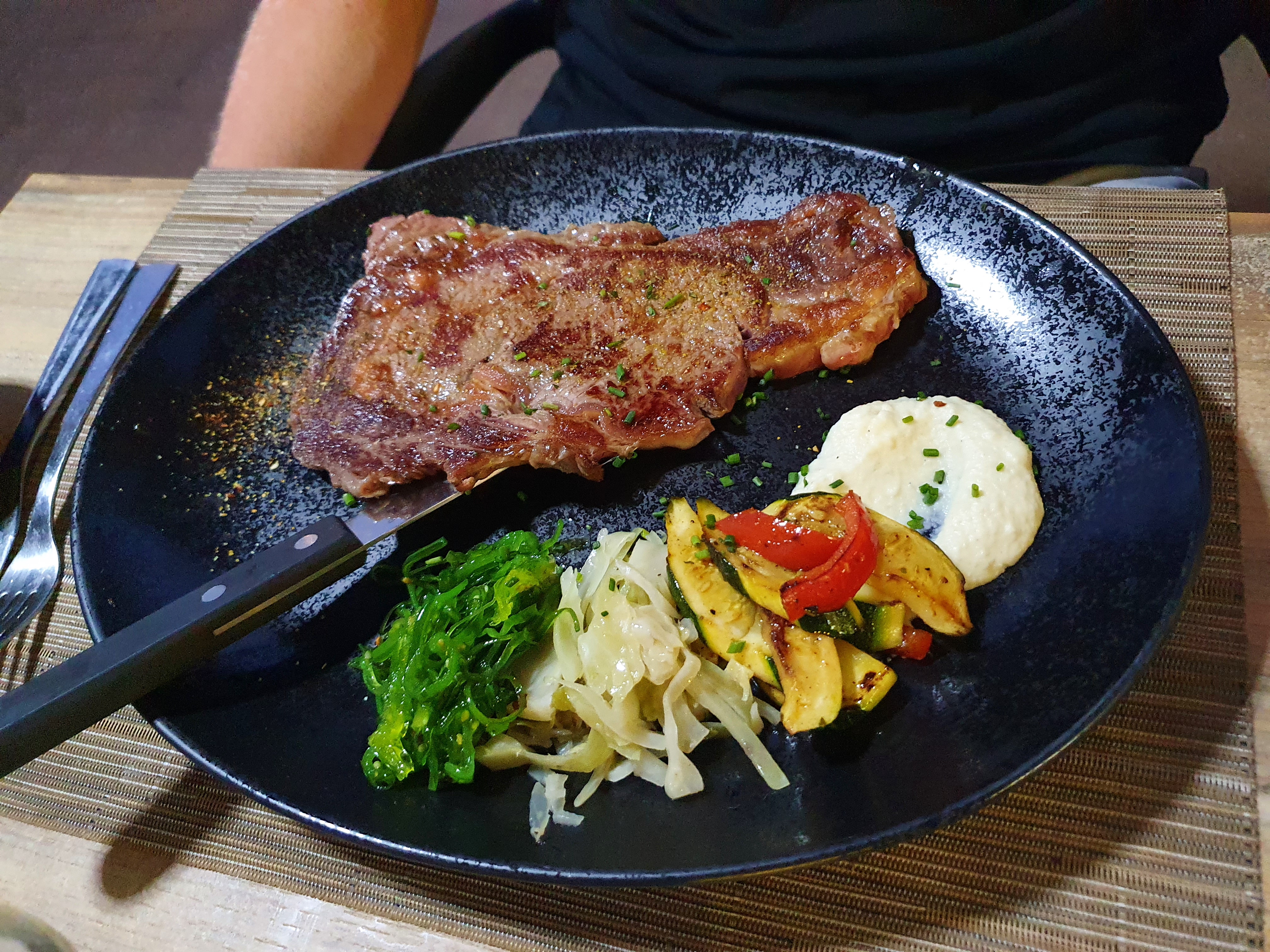 Agréablement surpris. Belle et grosse Entrecôte. Les frites sont originales en formes de chips. La carte est variée et les prix raisonnable, Entrecôte 21€, moules frite sauce roquefort 13.50€. Je recommande.