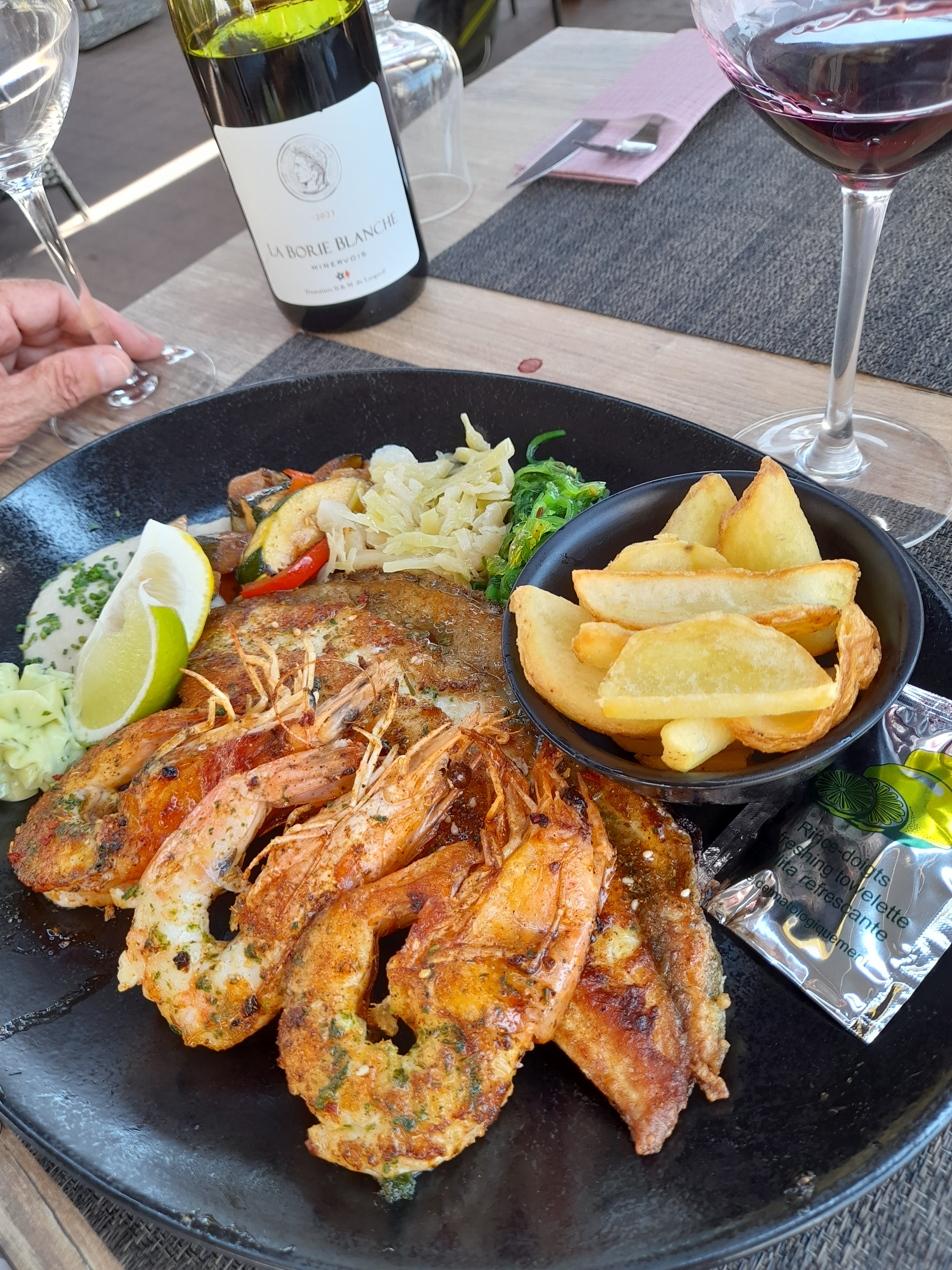 Belle découverte de passage sur Sète. Produits frais, assiettes généreuses. Trilogie de Saint Pierre, St Jacques et sèche à tomber! Mention spéciale pour les frites maison DELICIEUSES !! Bon rapport qualité/ prix :) Bravo au chef et à toute l'équipe pour votre accueil chaleureux !
