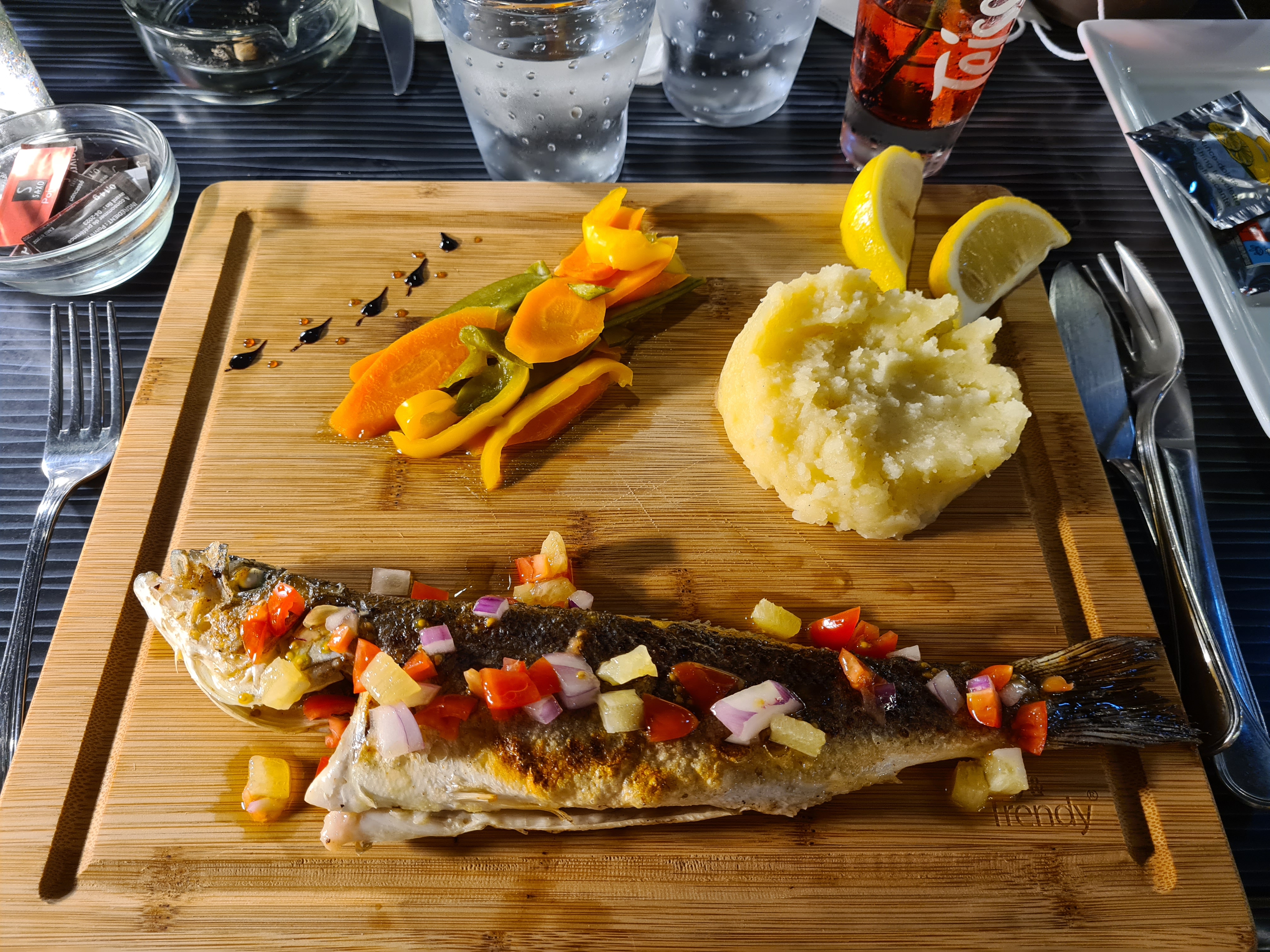 Dès l'arrivée le personnel est à votre disposition, très aimable et vous n'avez pas besoin de leurs demander une bouteille d'eau car ils vous l'amène dès votre installation. A part cela, les assiettes sont très complètes avec du poisson frais et des accompagnements succulent. Si vous êtes dans la zone du cap d'Agde, je vous conseille ce restaurant immédiatement.