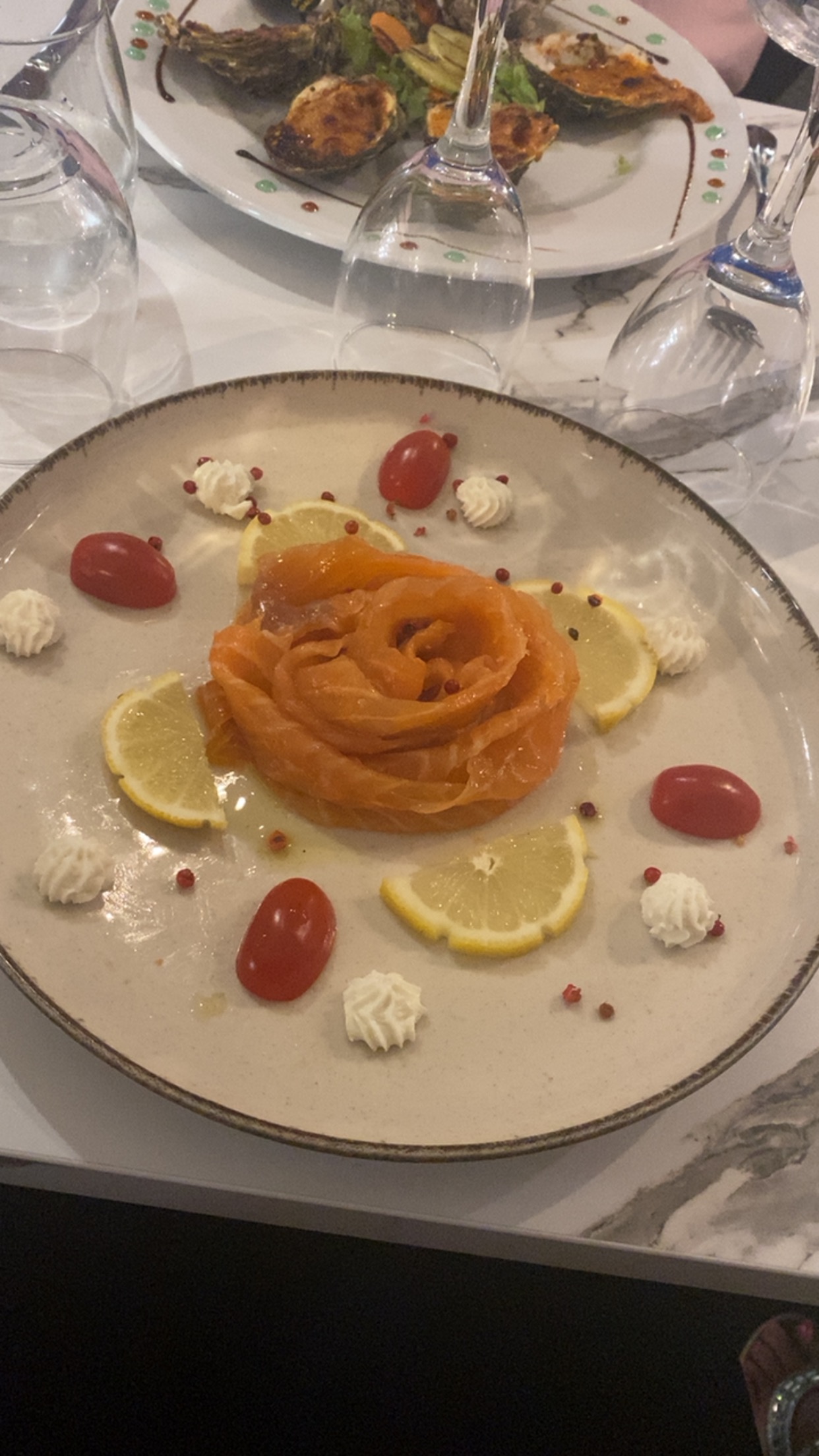 Dîner en couple, produits frais et cuisine délicieuses, service extrêmement agréable, jolie vue, encore merciiiiii pour la petite attention ❤️ 😁, je recommande à 100%, Bravo pour votre travail !!!