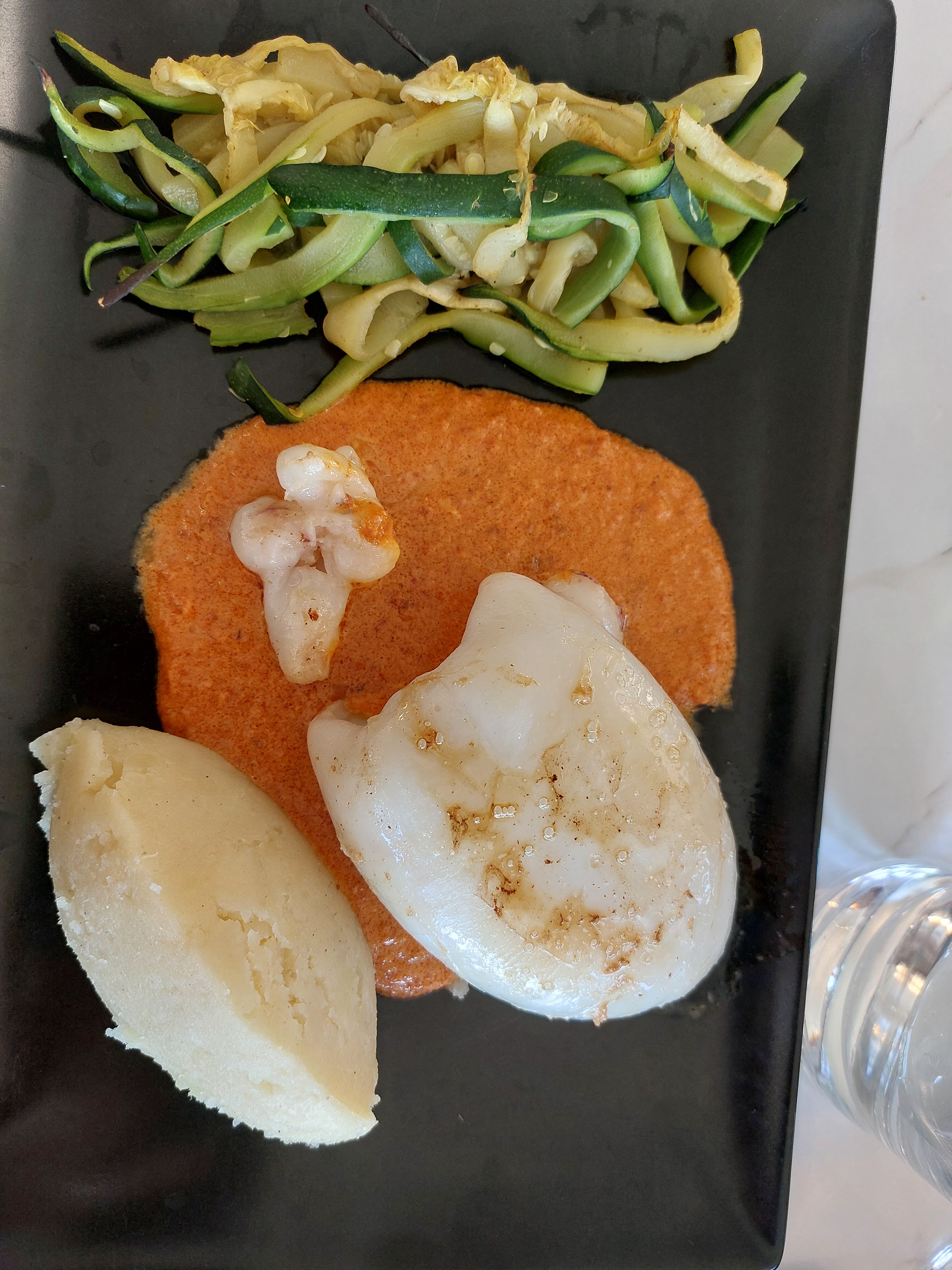 Je suis assez déçue. L'entrée était bonne (saumon gravelax), mais le plat très décevant. J'ai pris les encornets au pesto, le chef devait être juste au niveau des encornets, car il n'y en avait presque pas dans le plat (5 tout petits) et le pesto était très très acide et amer. Il devait y avoir soit du vinaigre soit du citron (ou les deux), mais la sauce n'était vraiment pas à mon gout. Bref, je n'ai pas aimé, mais la cuisine étant une question de gout, je ne veux pas non plus mettre une trop mauvaise note. Le dessert (mousse au chocolat) était bon.