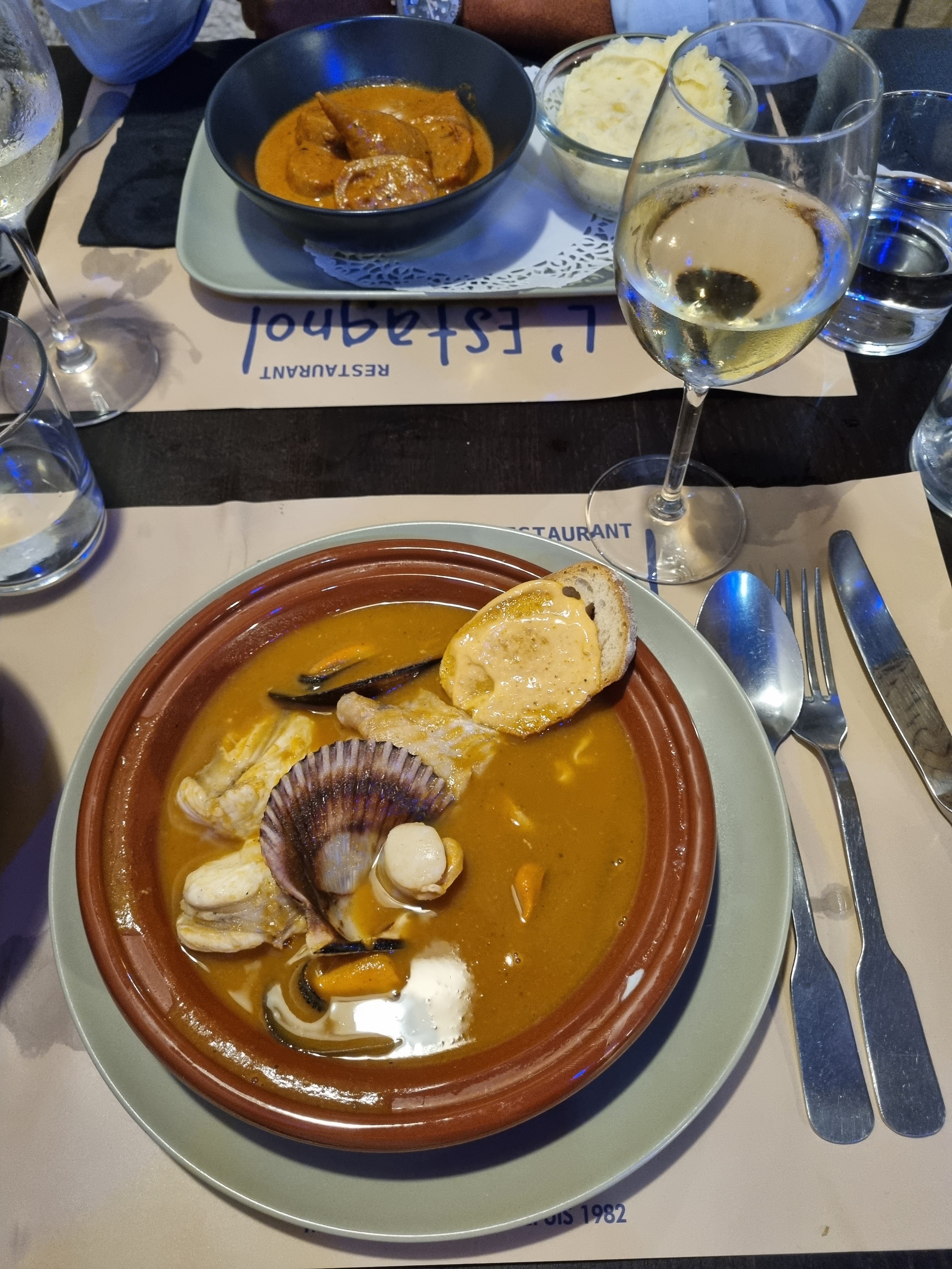 Repas en famille tout le monde enchanté, service impeccable. La Zarzuela est une merveille,très copieux. et j'ai retrouvé la brioche perdue...Lendemain sur mes hanches 😁