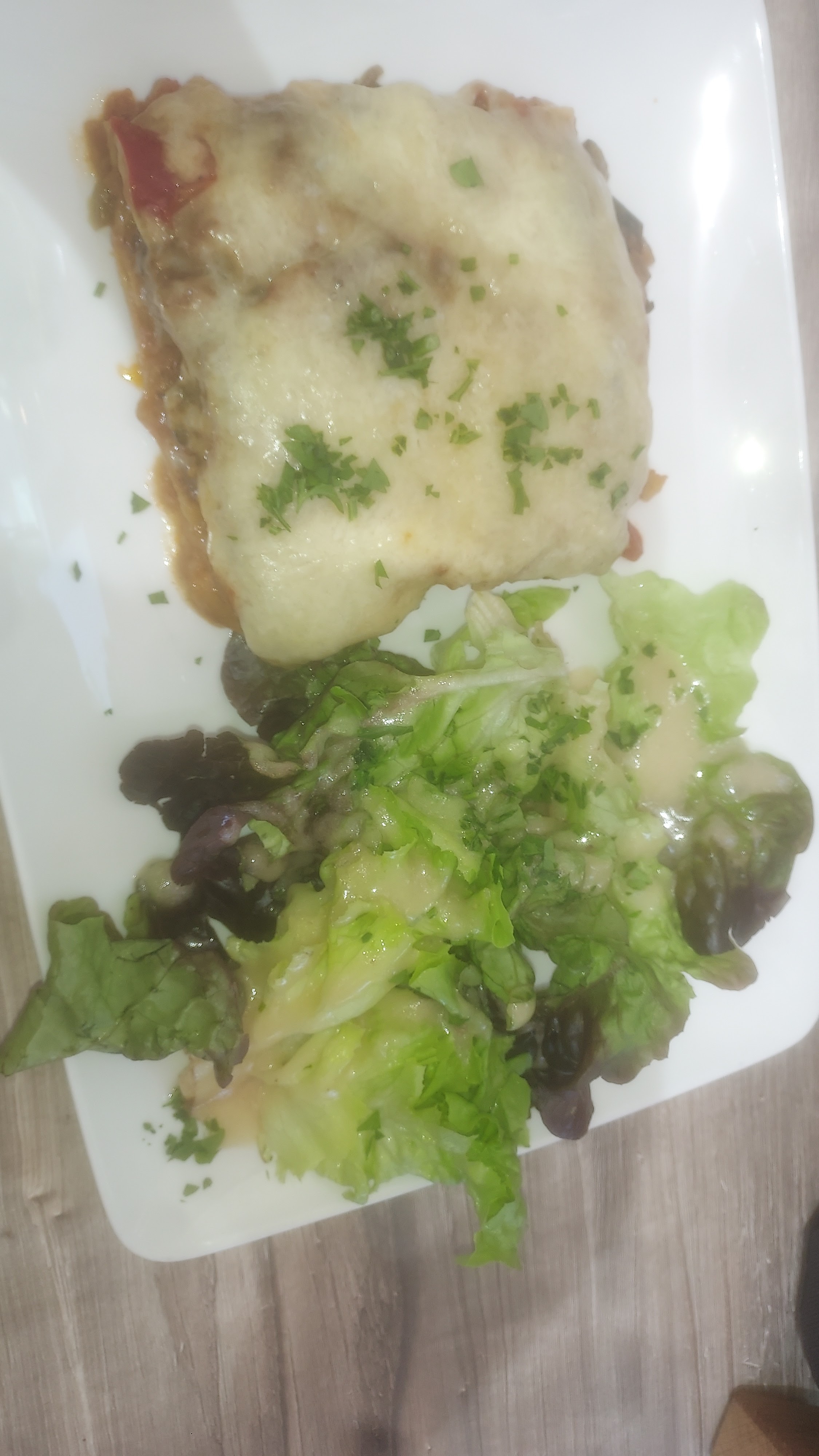 À fuir Commande d'une salade italienne à 17€ et d'une salade grec à 15€. Dans l'assiette on voyait bien qu'en cuisine ils n'avaient pas envie de préparer des salades, la présentation n'était pas très bonne dans les bols. J'ai l'habitude des salades italiennes .. mais la, il y avait beaucoup de vert .. et 1 petite tranche de jambon avec de la Mozarella, du Poivrons cru et quelques tomates séchée. Vu le prix je m'attendais à mieux .. surtout que, certes plus grand qu'une entrée, mais pas assez grand pour un repas. Lors du passage en caisse ils nous facturent 3 salades (au lieu de 2 .. voir la quantité les 2 auront fait une ..) .. et l'excuse de la personne derrière la caisse : j'ai commandé de nouvelles lunettes. Nouveau dans la région et propriétaire de gîtes c'est une adresse que je ne recommande pas.