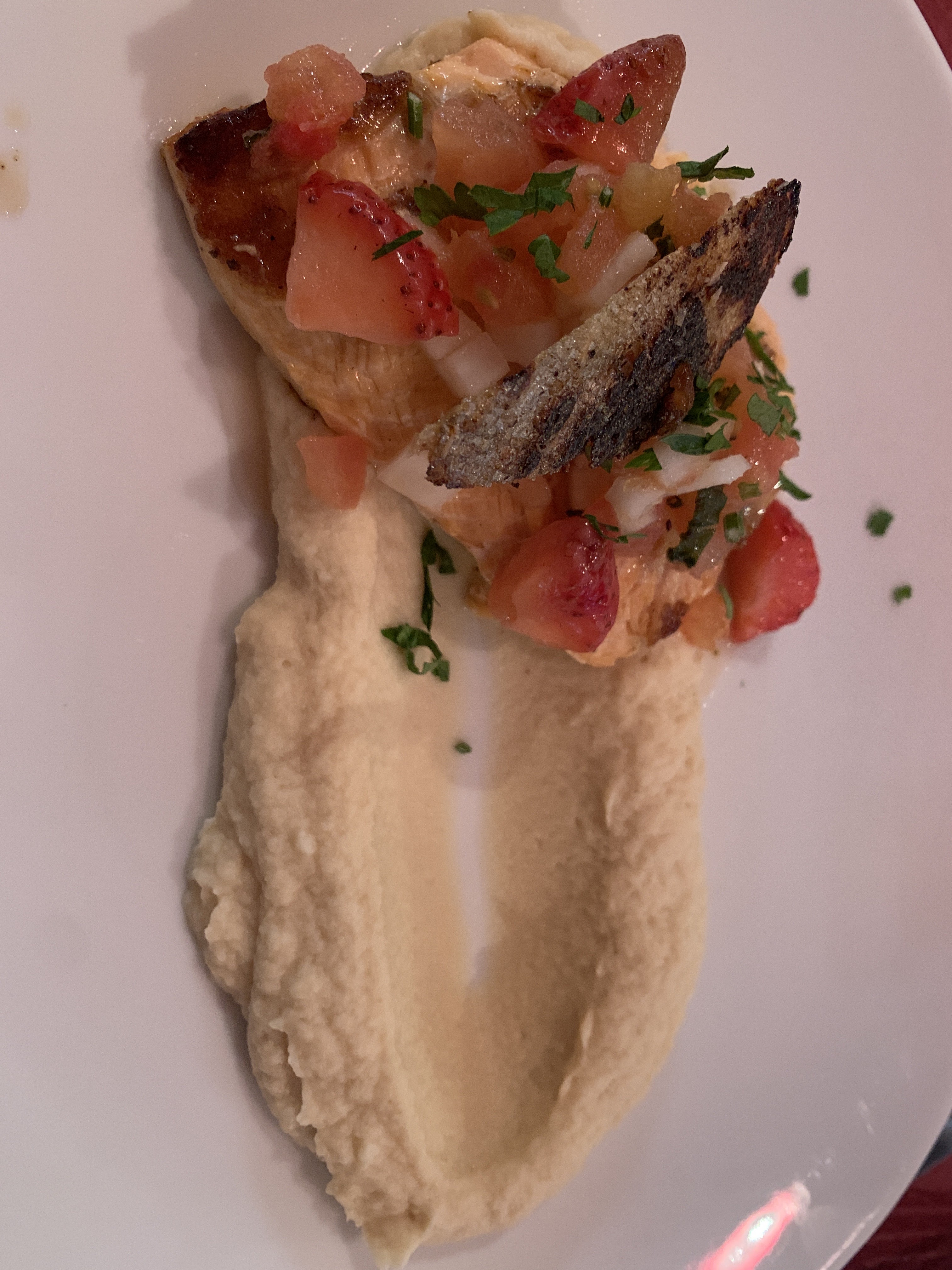 Restaurant fort sympathique. Serveuse des plus agréables conseillant bien. Le gaspacho de petits pois au citron jaune est absolument délicieux . C est une bonne idée de sortie restaurant que je conseille vivement