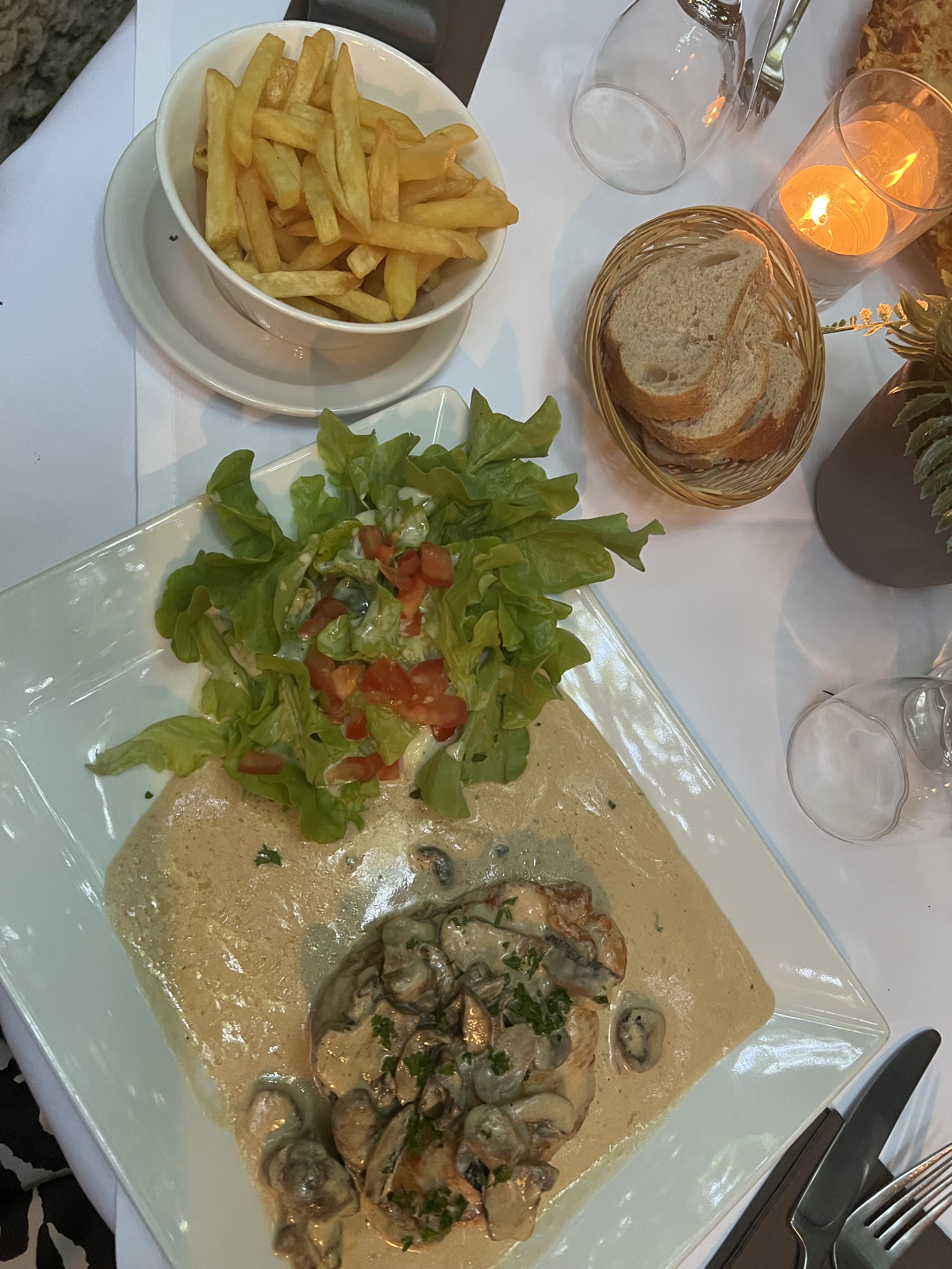 Avons-nous finit par avoir notre plat??? Au bout de 2h d’attente, une fois la commande prise..ici visiblement l’ordre d’arrivée ne compte pas, nous étions parmi les 1ers à arriver. Nous avons donc loupé notre séance cinéma ! C’était la 1 ère et dernière fois pour nous! Vu l’attente, j’aurais au moins espéré manger autre chose que des champignons en boîte.