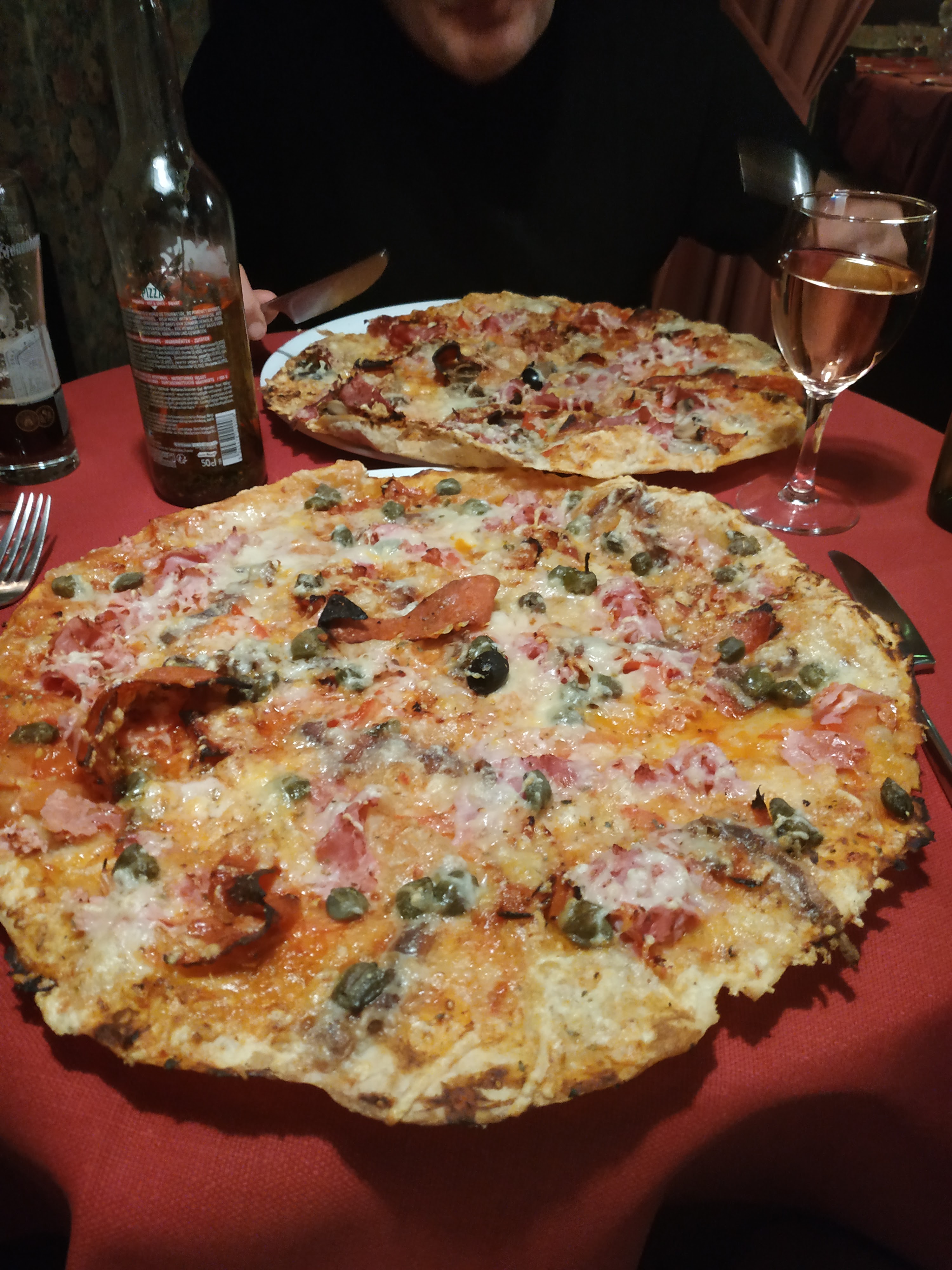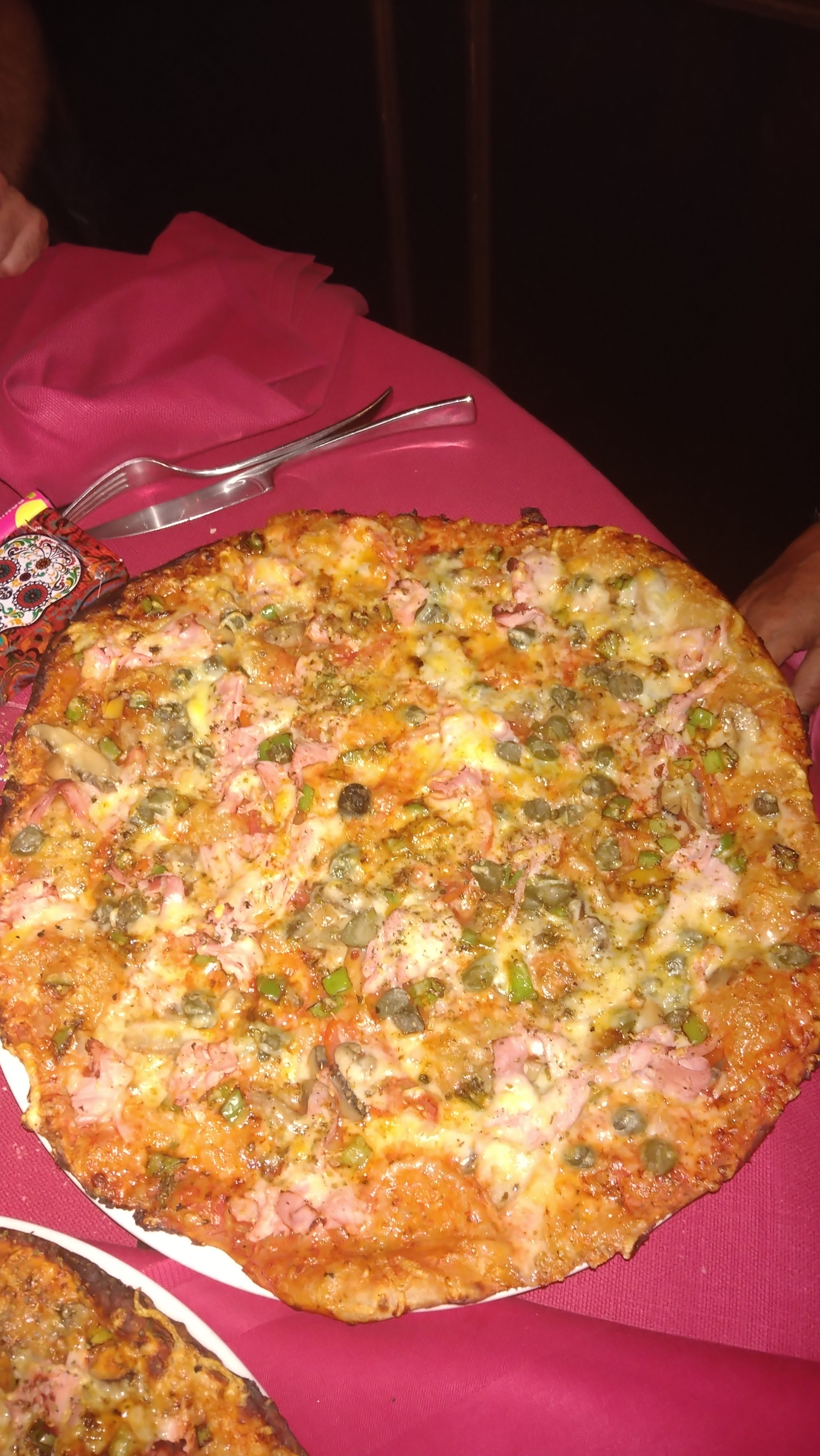 On a pris des pizzas pour ma part très bonne , bien garni seul bémols la pâte n’est pas une « 0pate à pizza » un peu surpris , et base de fromage à l’emmental ( loin de la véritable pizza italienne ) mais très bonne quand même !