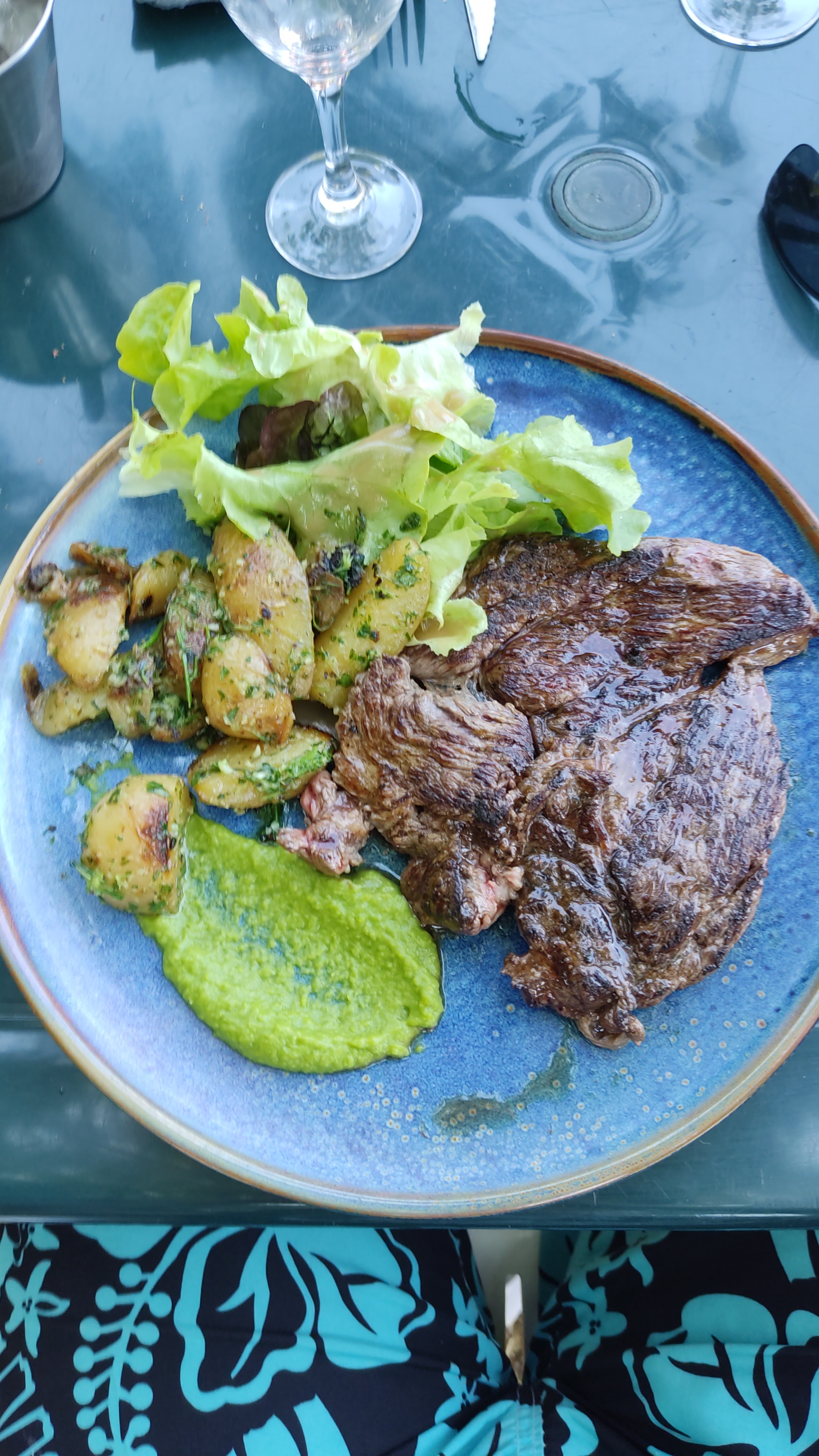 Exellent rapport qualité prix. Plat copieux, accueil tres agréable. Le bonus , en face de l air pour camping car. On recommande.