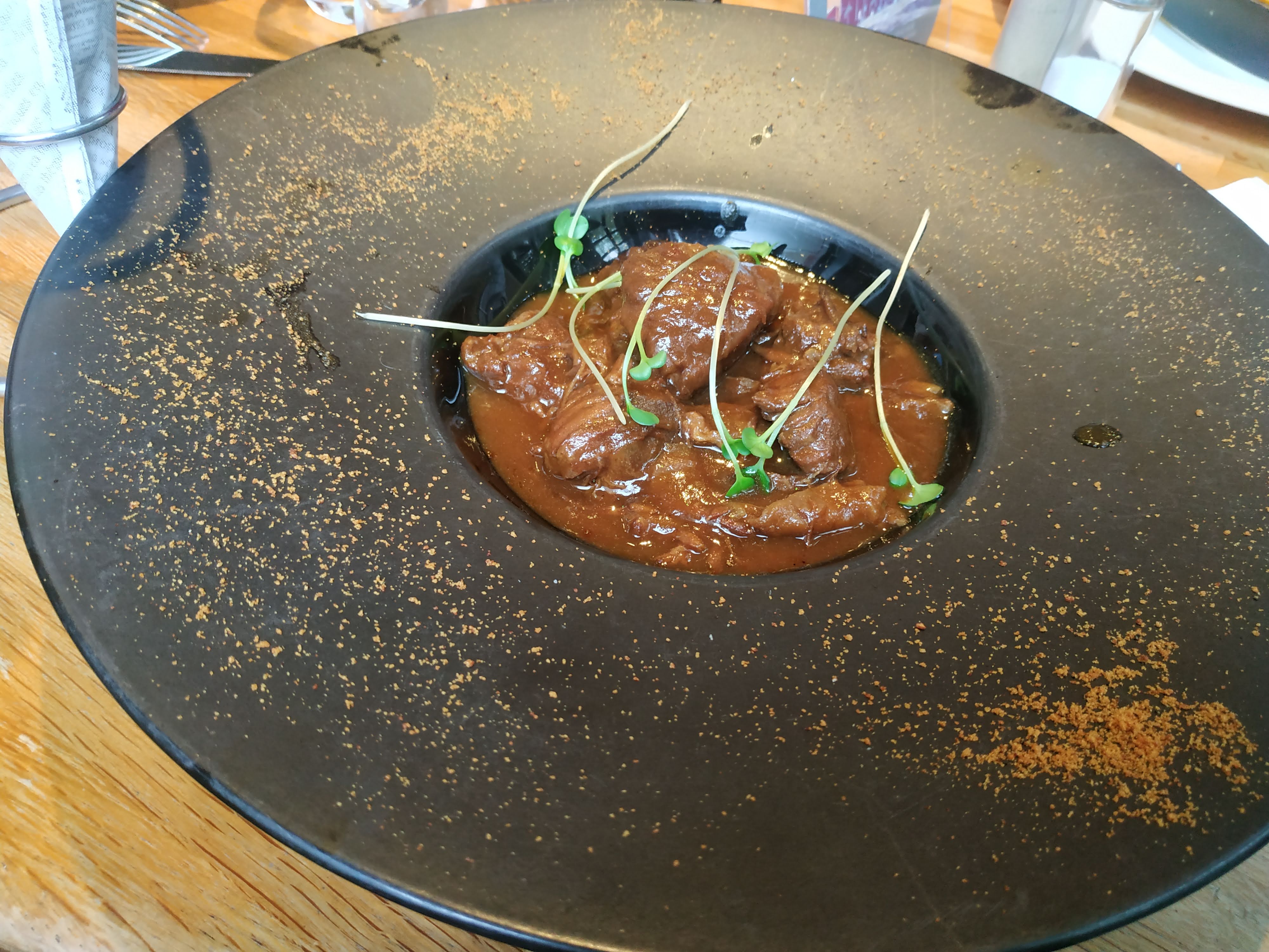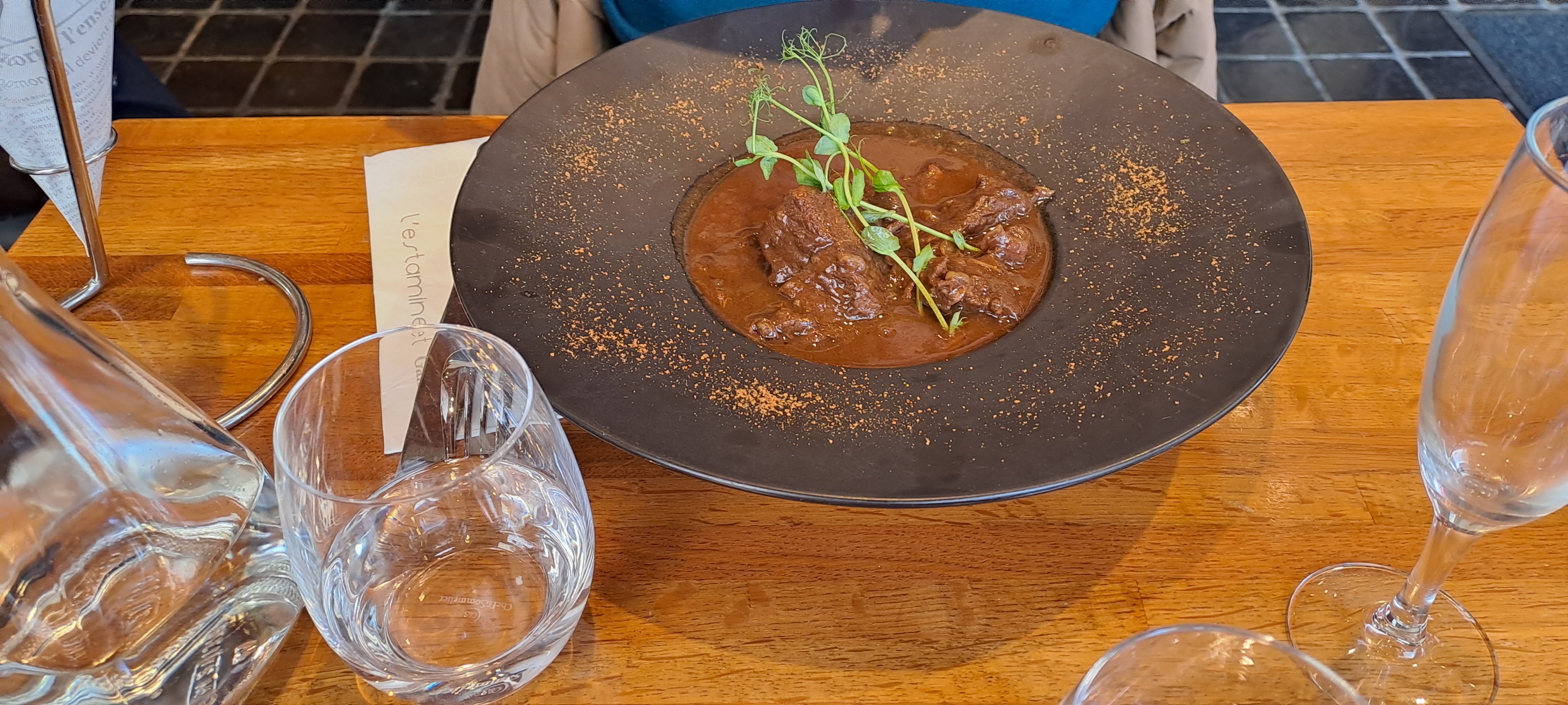 Bon accueil. La carbonade effiloché de boeuf braisé et sa sauce généreuse avec le goût bien présent du pain d'épices. Prix moyen pour un repas soigné au calme.