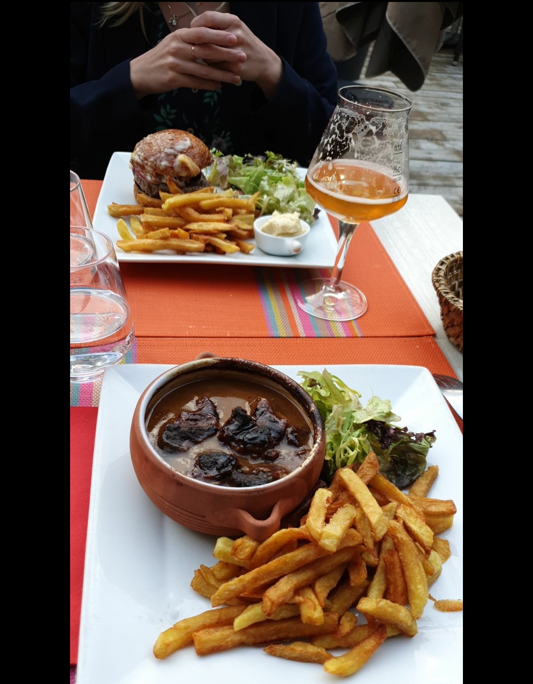 Avis mitigé. Service très long. Suis arrivé à 19h30 et suis sorti à 22h. Les frites c'est des petits morceaux de pomme de terre. Dommage car niveau goût, c'est bon. Juste mal coupé. La viande (pièce de bœuf) bien cuite, pas de soucis. La viande de la carbonnade est dure. Elle devrait être fondante. Par contre, mélanger des fumeurs et non fumeurs en terrasse, la c'est non! C'est un restaurant, pas un bistrot. Pas très agréable la fumé de cigarette (tabac) de la table voisine dans le nez en mangeant.