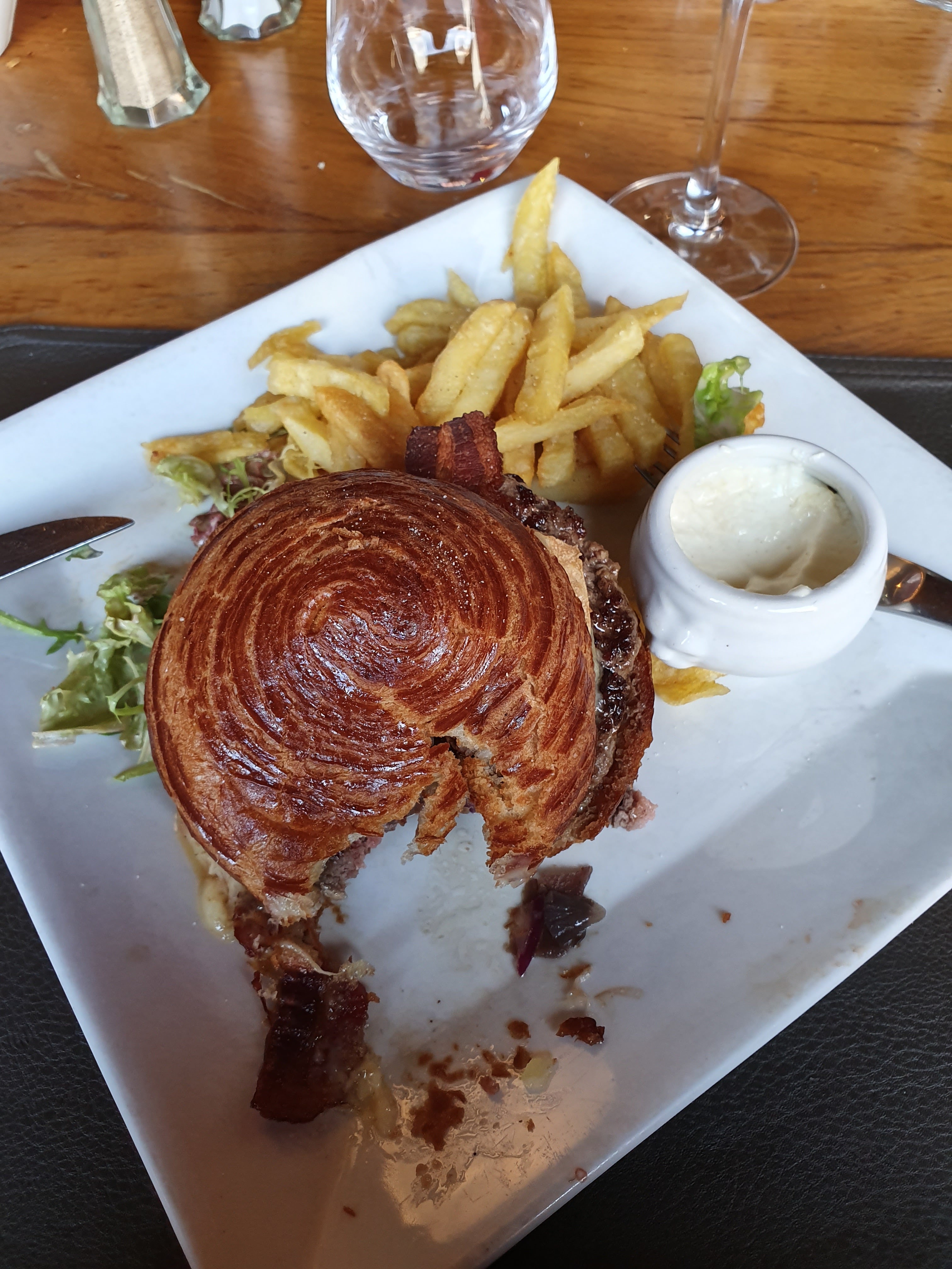 J'ai pris le Burger Gourmand, excellent repas, très bonne sauce au poivre. C'était la première fois que je goûtait à un burger feuilleté, et je ne suis pas déçue ! Lieu accueillant et agréable, je recommande.