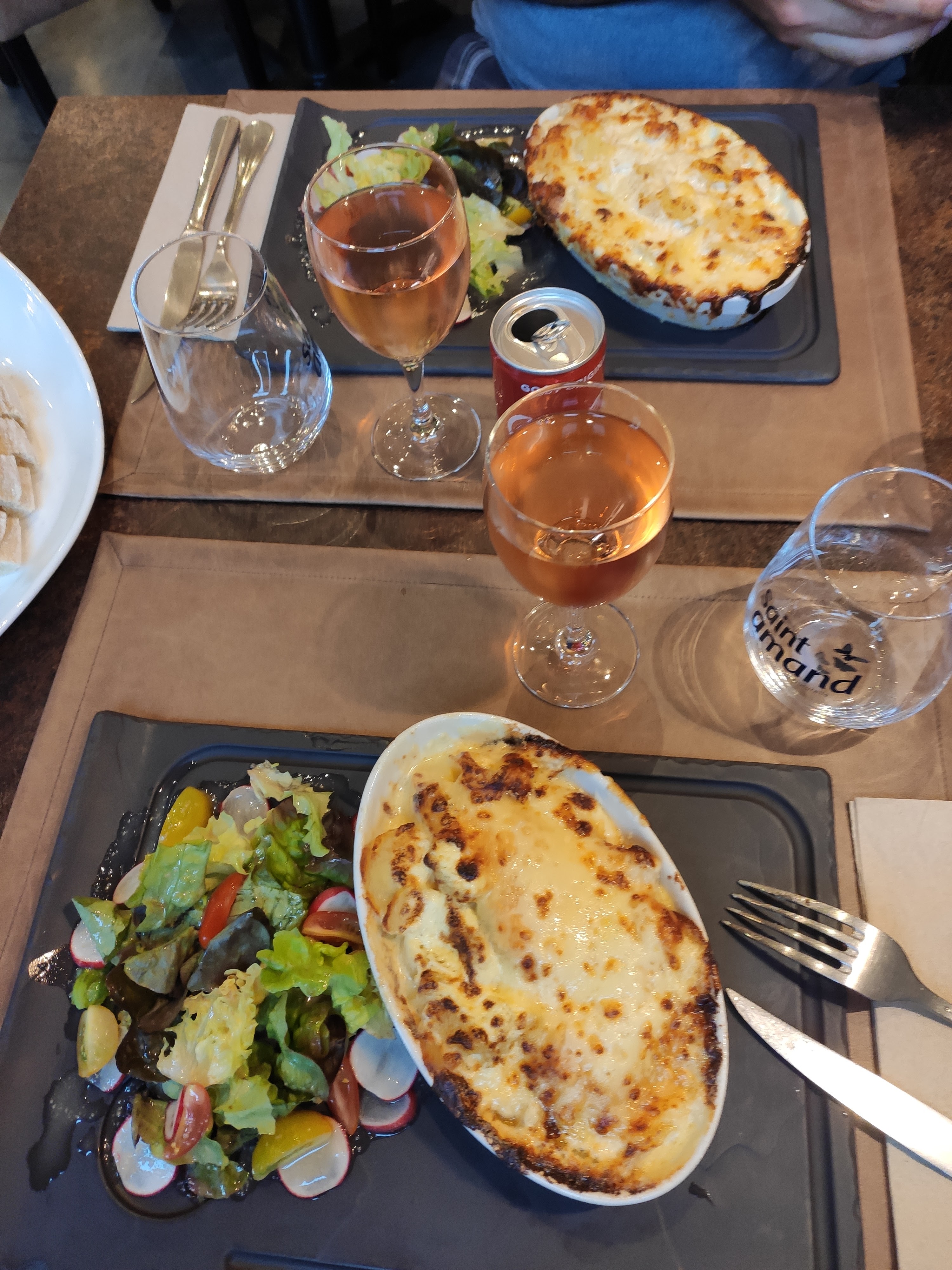 Nous nous sommes régalés. Arrivés tard. 13h25....pas de soucis pour être acceptés... Tarte au maroilles et tatin de boudin noir aux pommes en entrée puis maroiliflette et coq au vin pour le menu... Fondant au chocolat en dessert.... Tout était bien cuisiné et savoureux. Du plaisir.