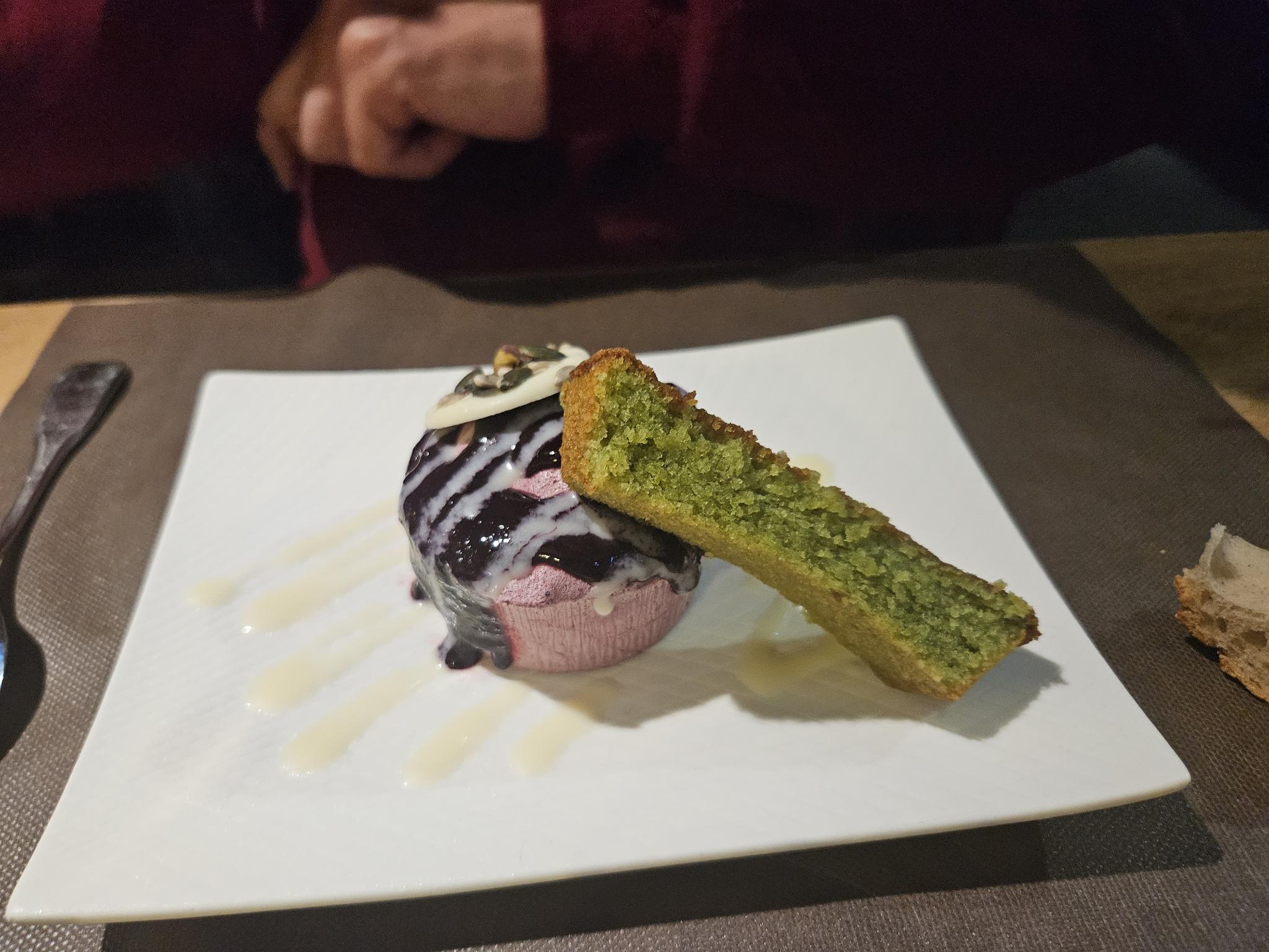 Terrine de lièvre et pistache fantastique - le velours avait avant et encore mieux le parfait désert de Roquefort… miam bon vin et générique aussi - j'ai vraiment apprécié et je comprends pourquoi il est très bien noté