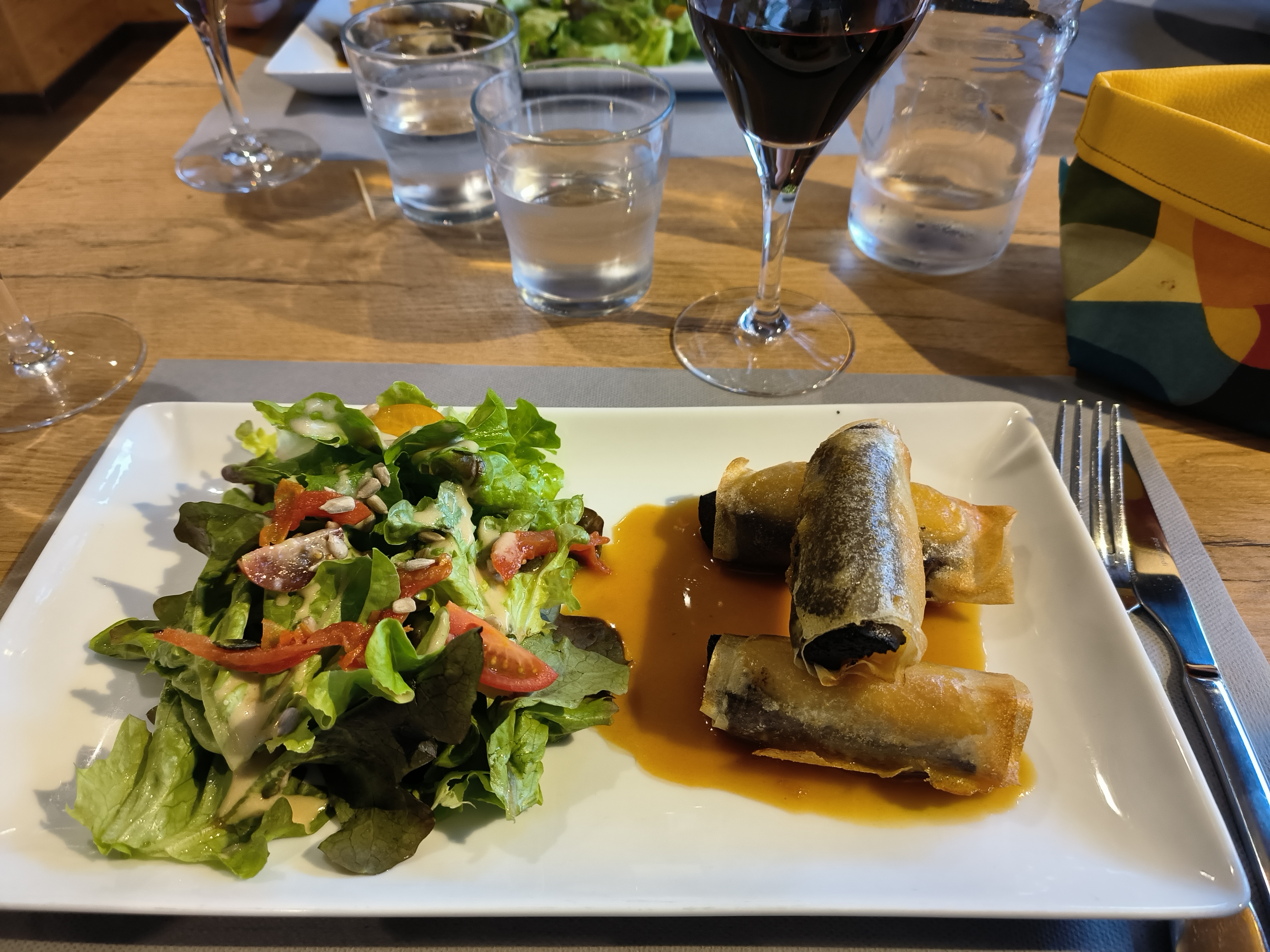 De bons plats. Un bon dessert et une bonne entrée. Pas grand chose à râler. Manque juste un vrai amuse gueule avec l'apéro et un service moins stressé.