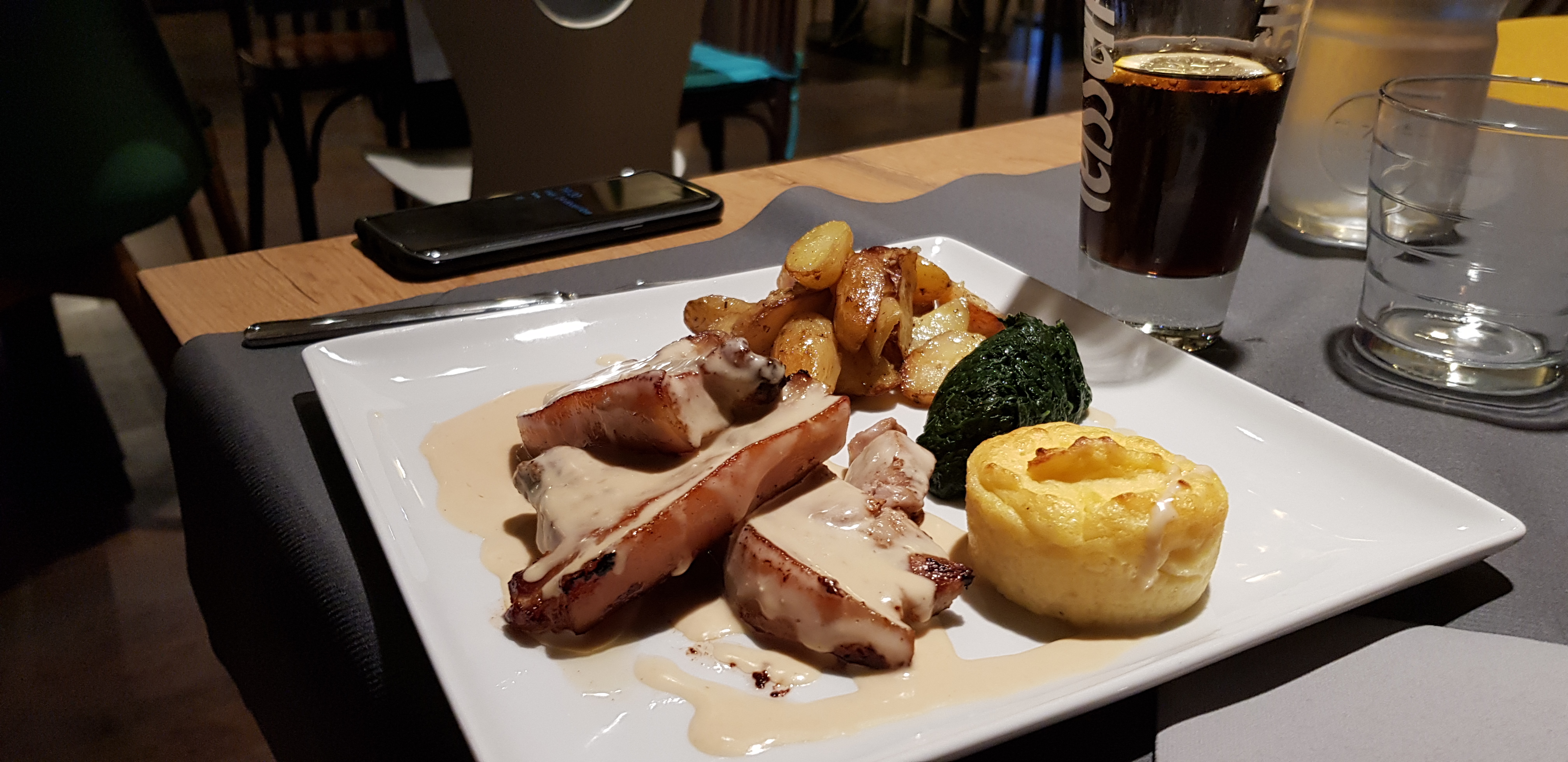 L'accueil est très sympathique. La salle à plafond bas est extrêmement bruyante. Les viandes sont tendres et leur cuisson est maîtrisée. Dommage que la saveur des plats sont gâchés par le goût très salé des pommes de terre grenaille et du mélange de légume.
