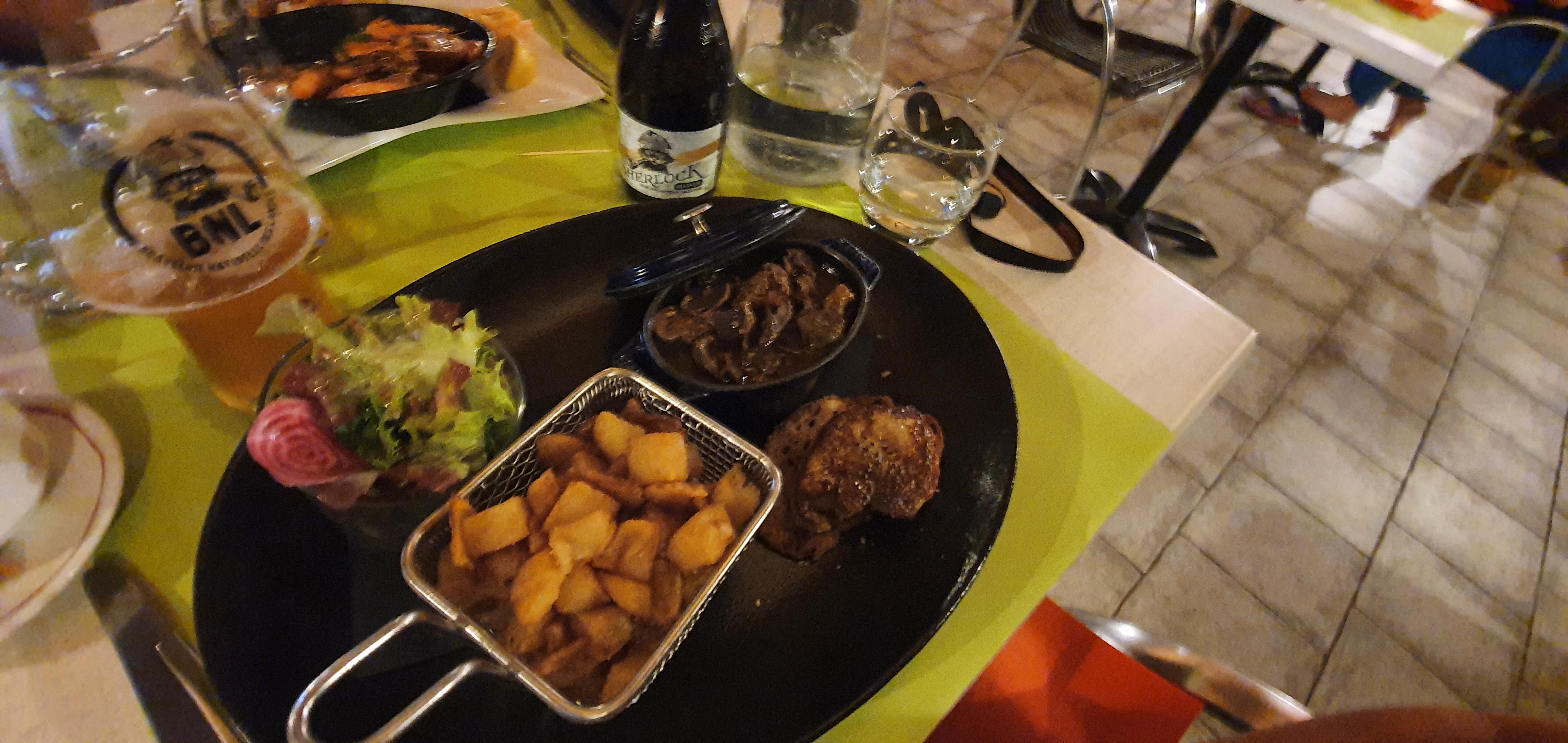 L’accueil est un peux stressant pour tous vu le pass sanitaire, mais on y arrive et tout le monde respecte les règles. Installés à notre table tout se passe comme sur des roulettes. Service attentionné et efficace. Serveurs sympas!! Plats copieux et délicieux. Bière locale.