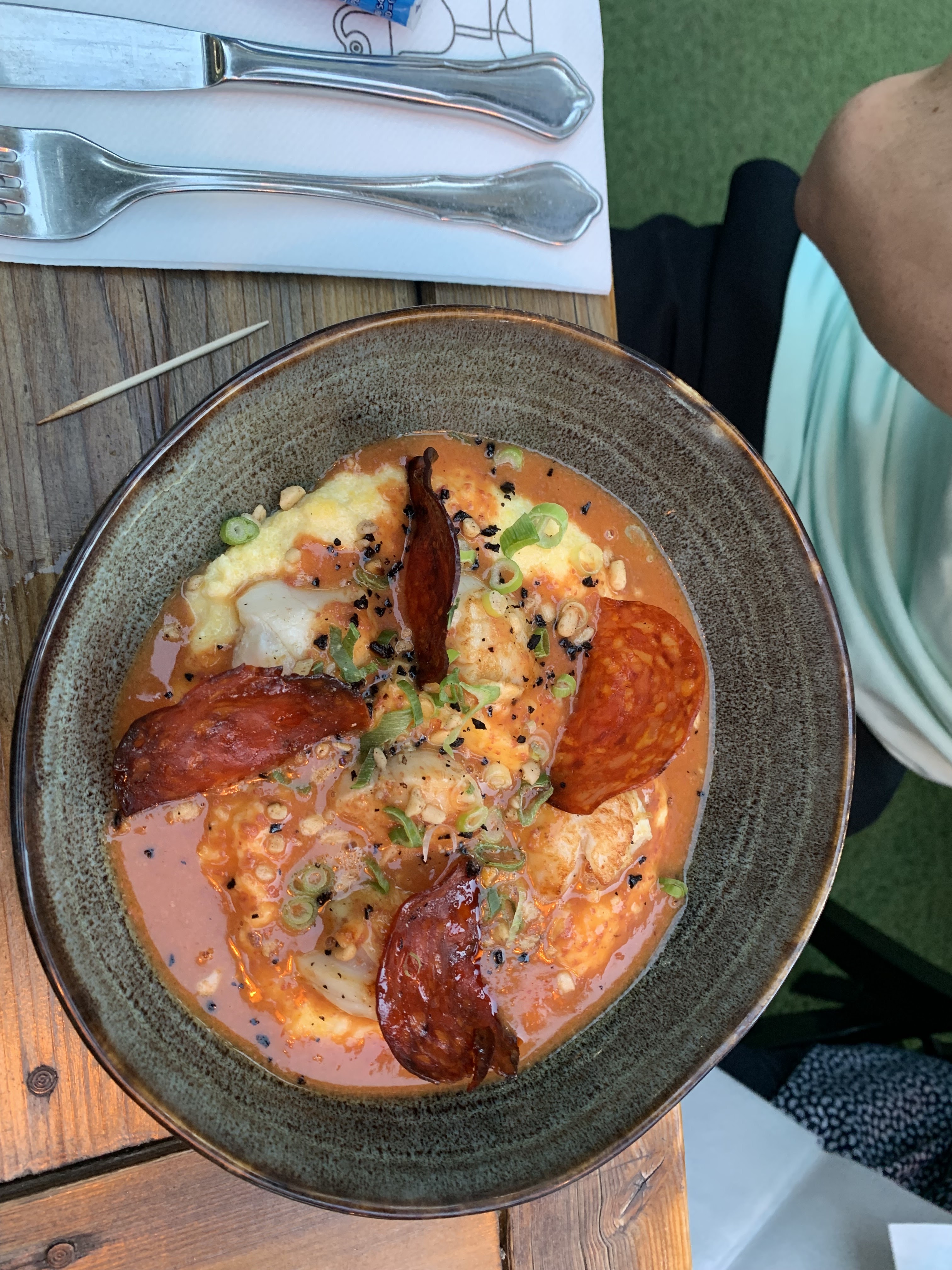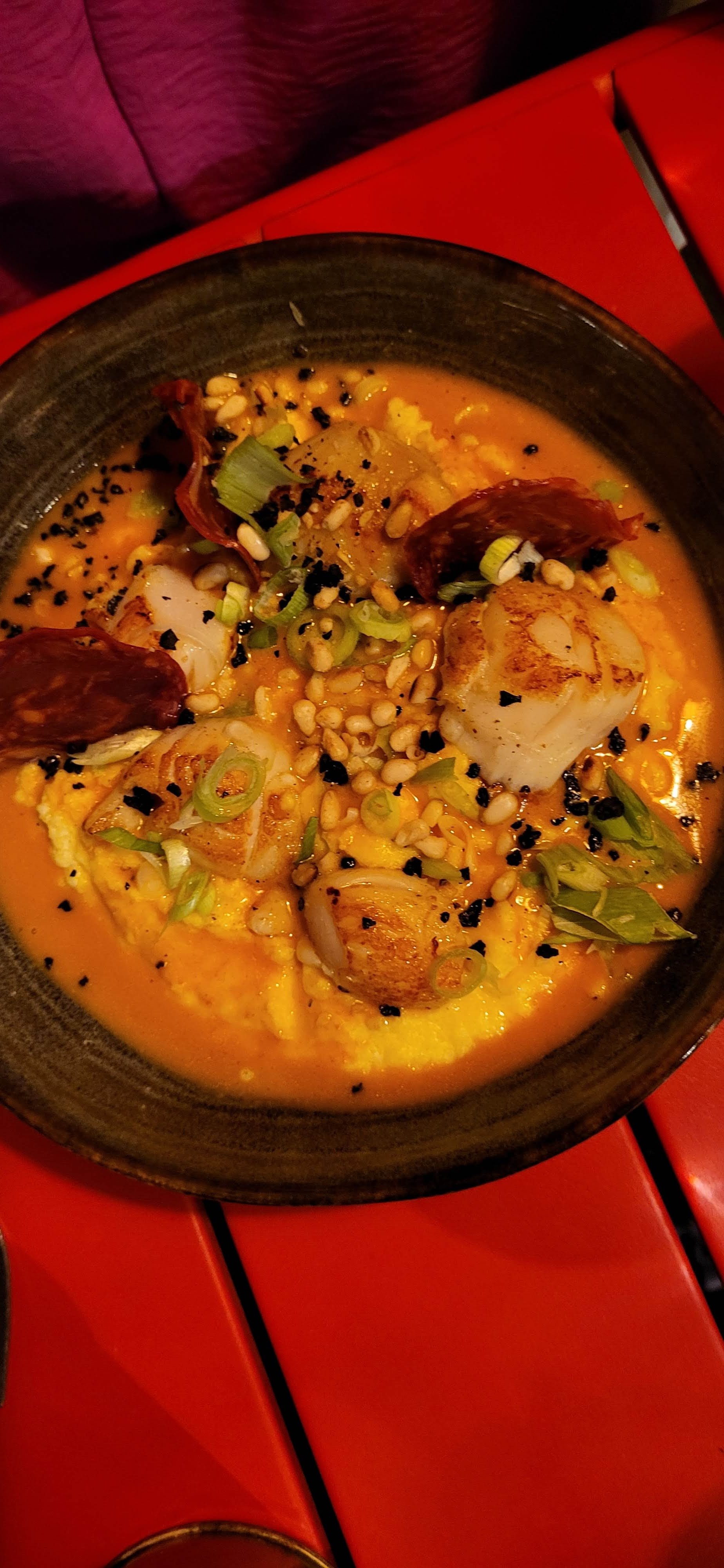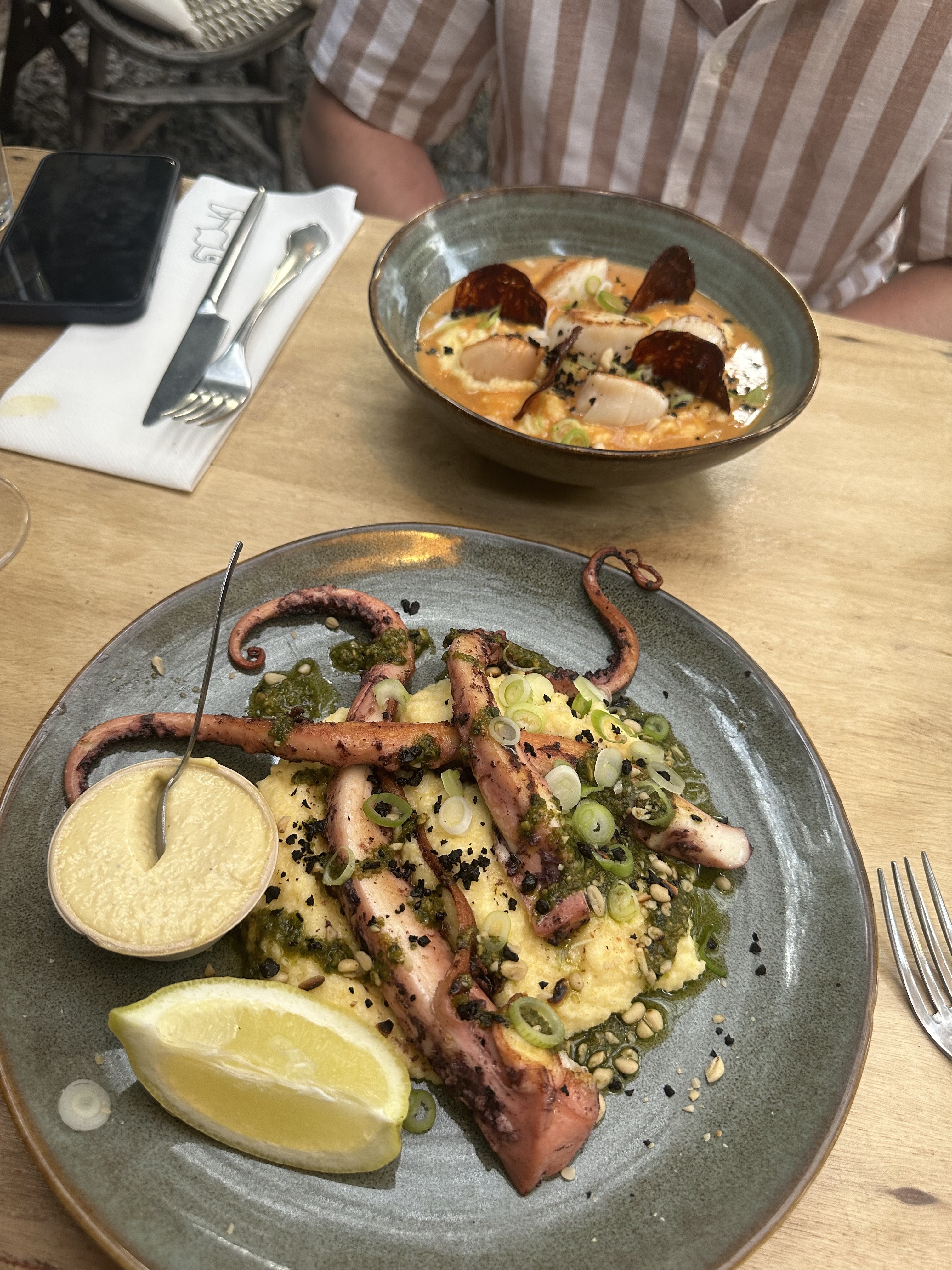 Serveur et serveuse sympathique, et surtout on y mange très bien. St Jacques aux chorizos sur lit de polenta 👌