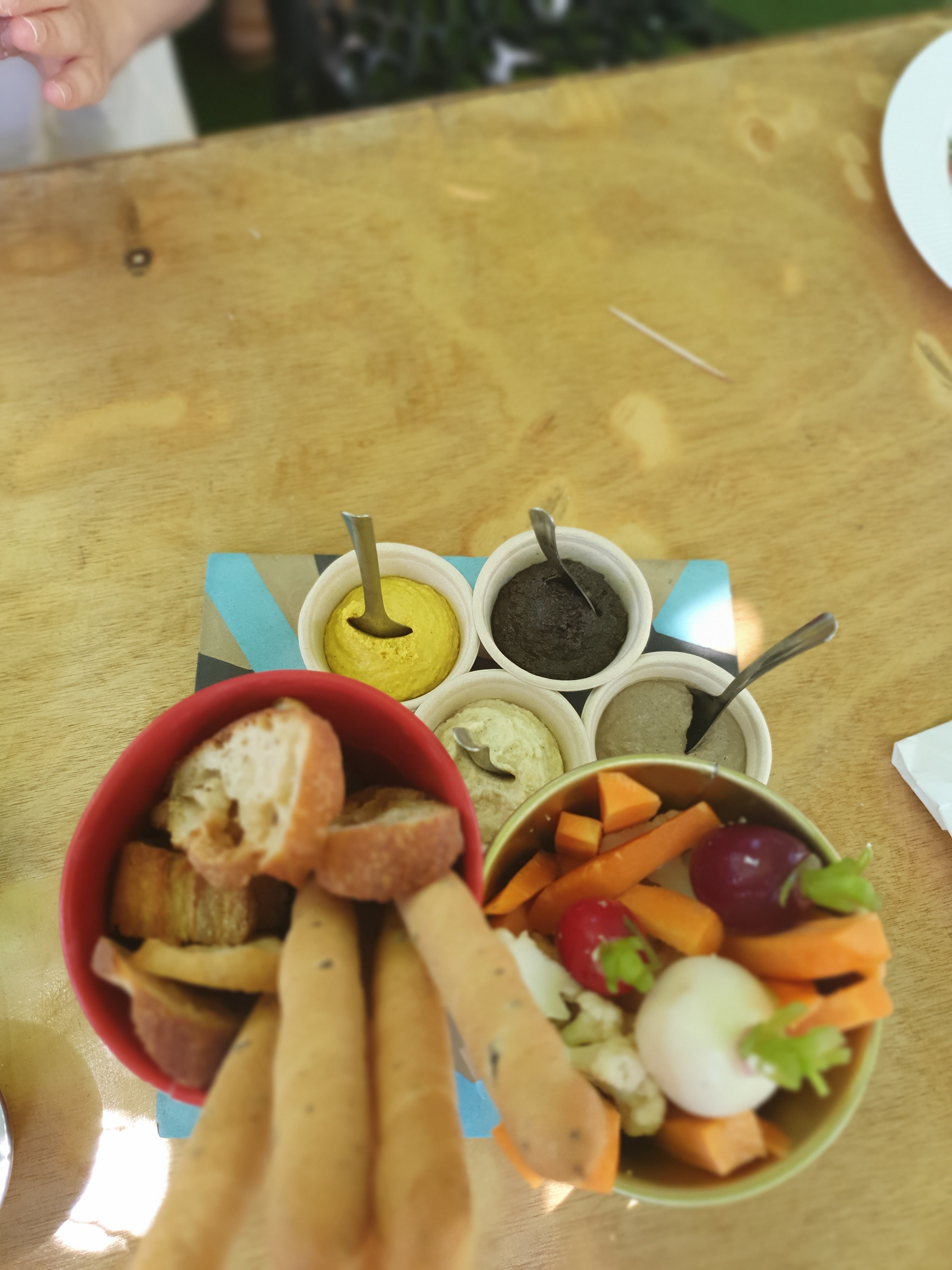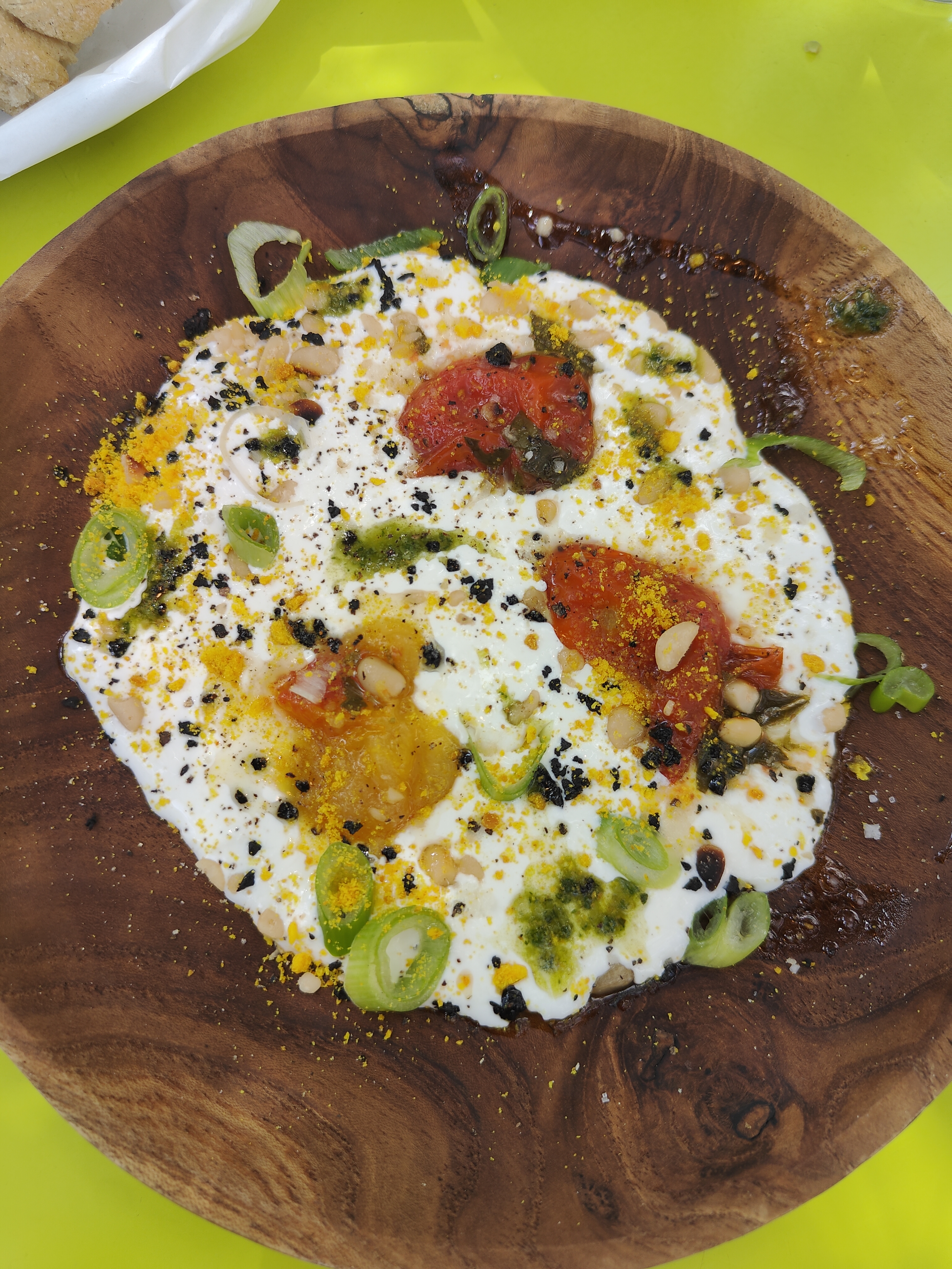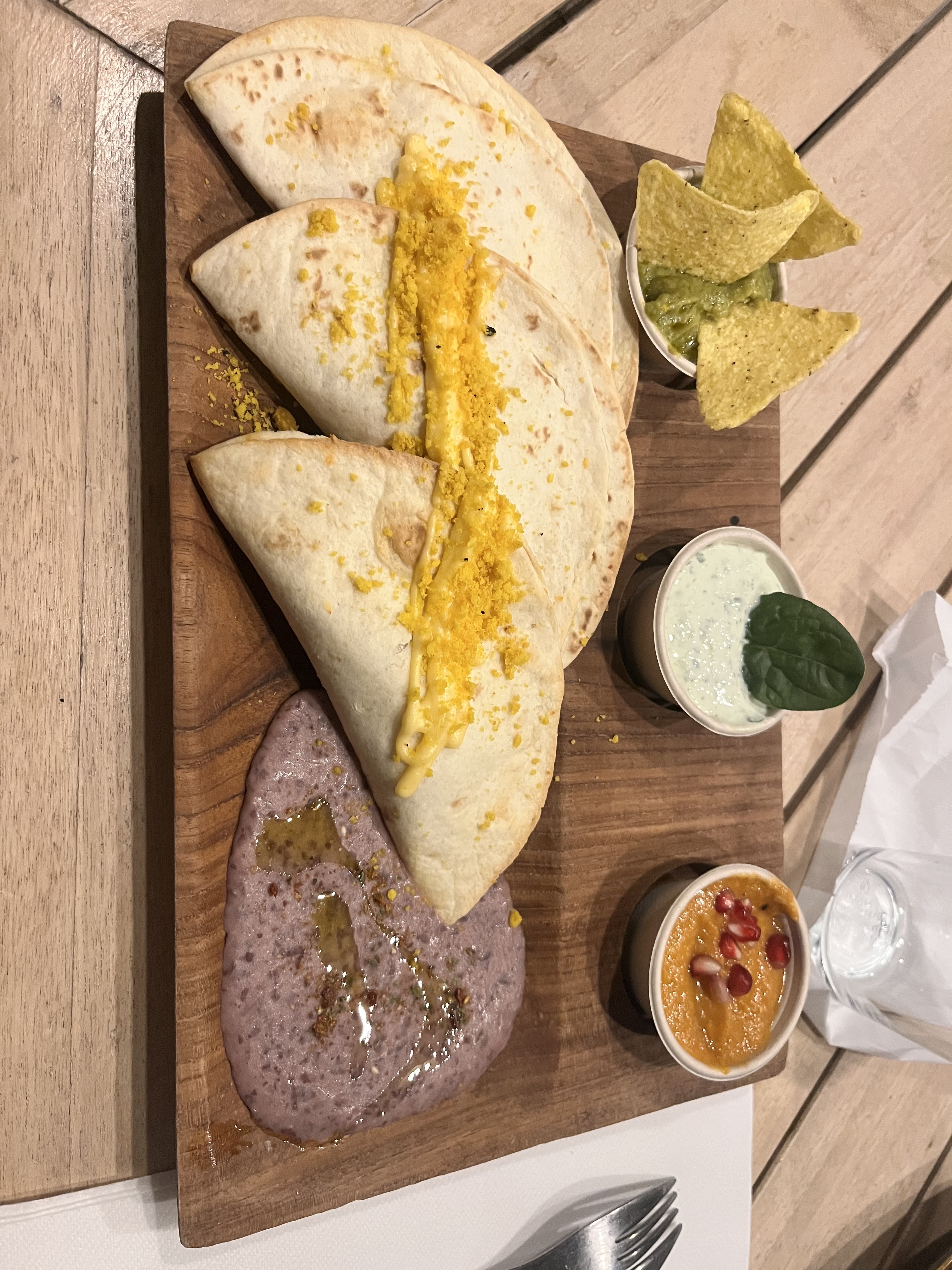 Lieu sympa, différent. Service un peu lent, avec une règle surprenante. Ils ne peuvent pas lancer le plat lorsque les amuses bouches (dips, pain, gressins) sont encore sur la table. Pourquoi ne pas nous les laisser jusqu'à l'arrivée du plat?