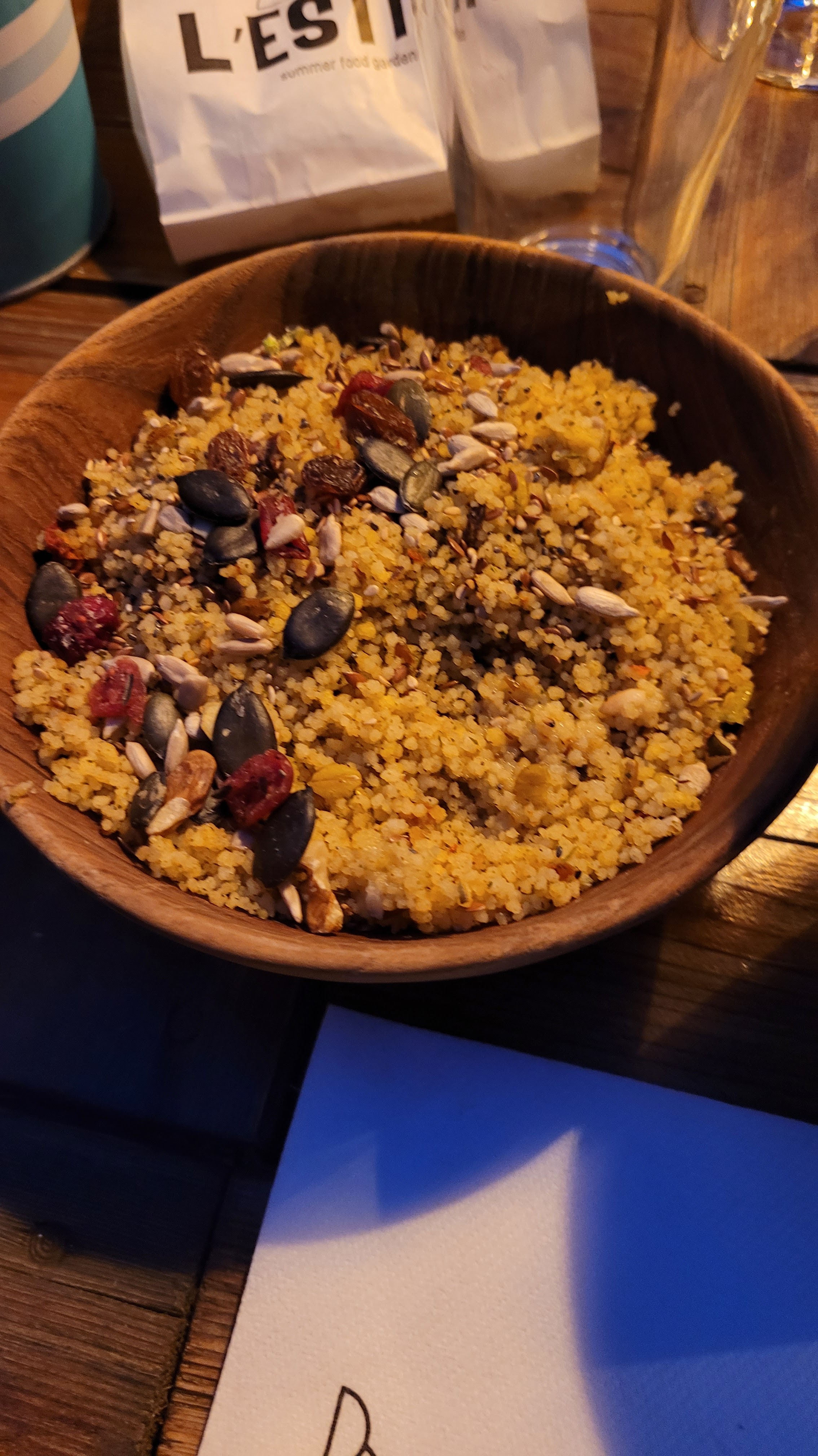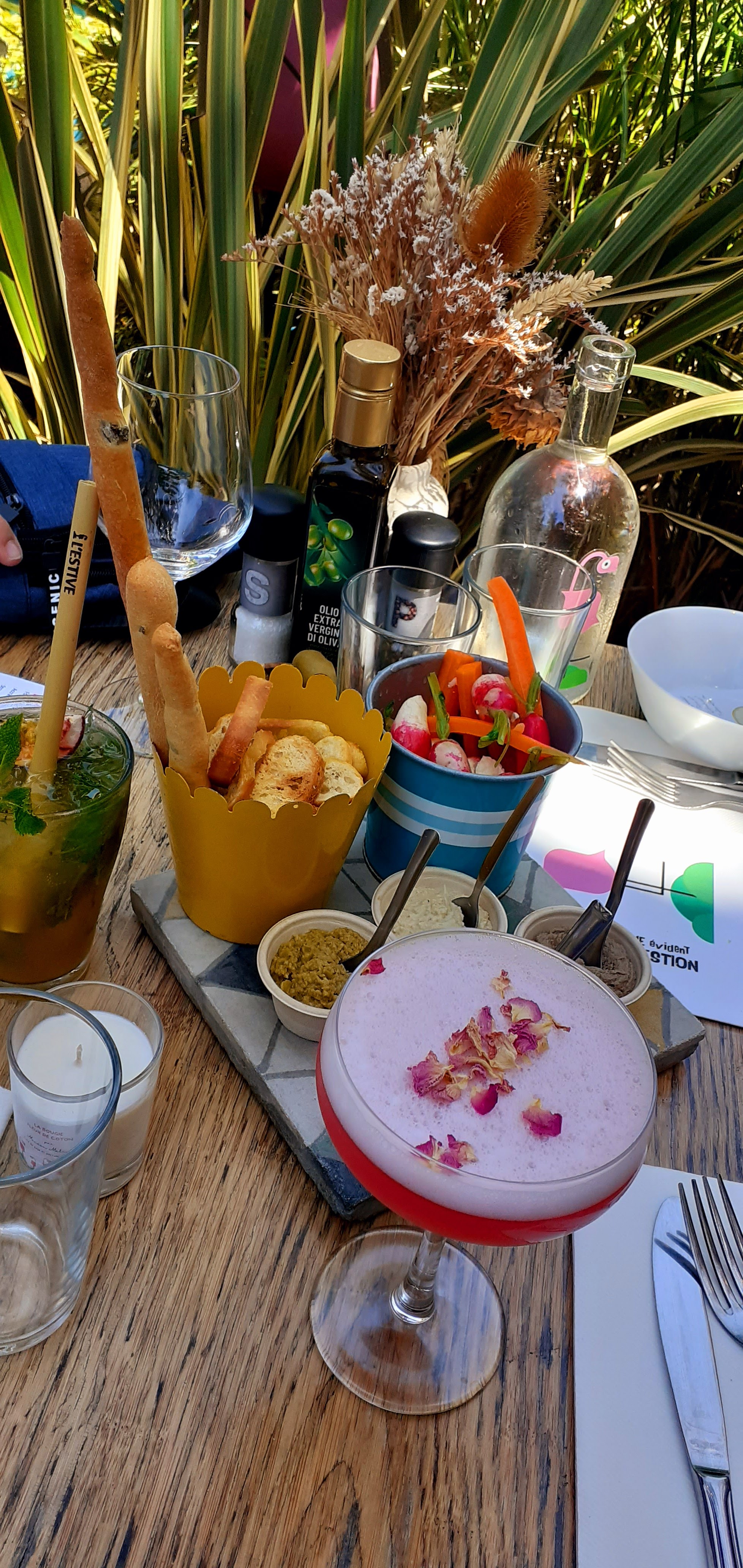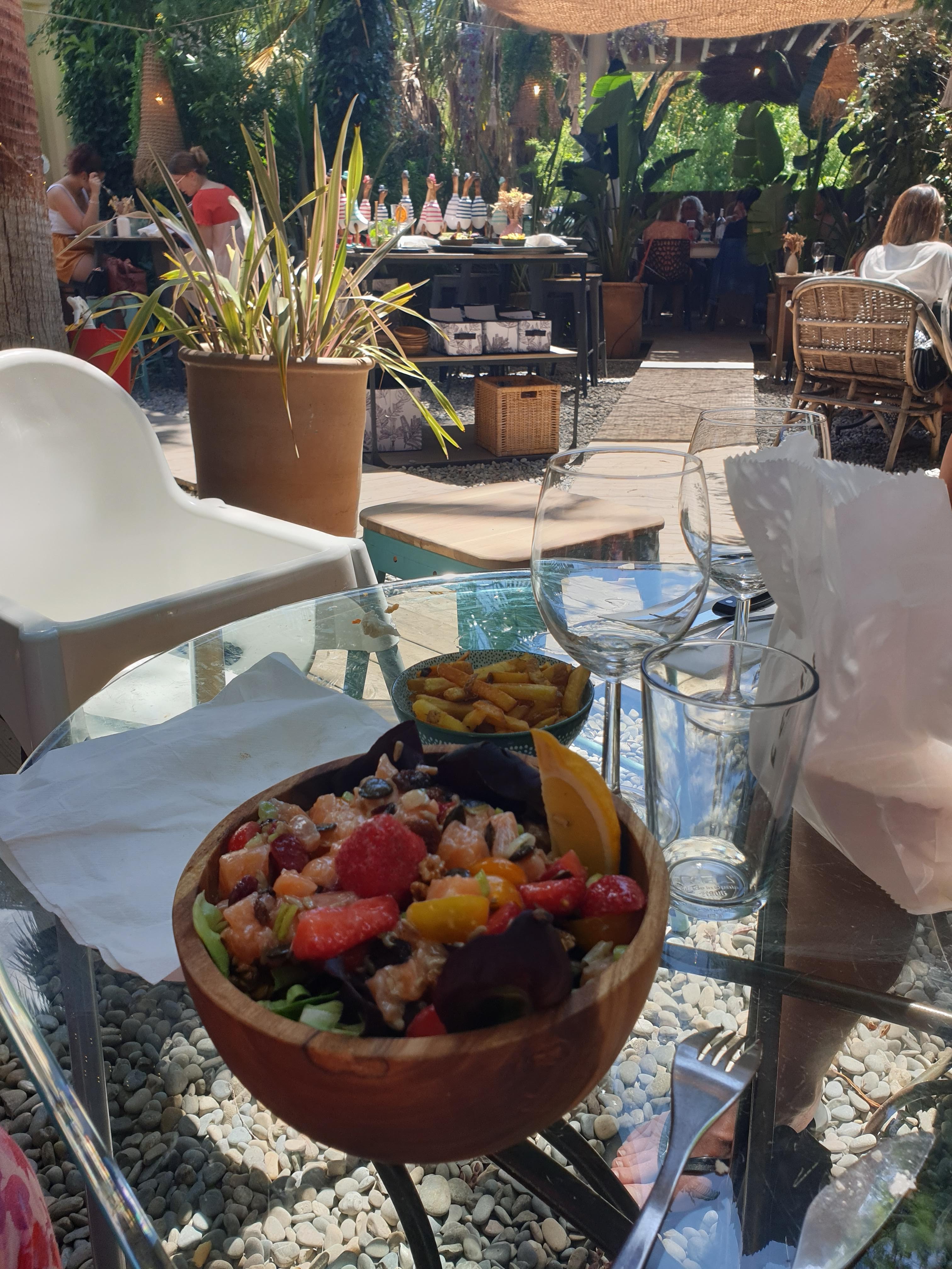 Une fabuleuse expérience !! Le lieu est excellemment bien décoré, couleurs et décorations bohème chic sont mains dans la mains. Les plats sont frais et de saisons, nos compliments au chef. Quant aux serveurs ils sont très agréables et bonifient le repas. Restaurant incontournable à Hyères les palmiers.