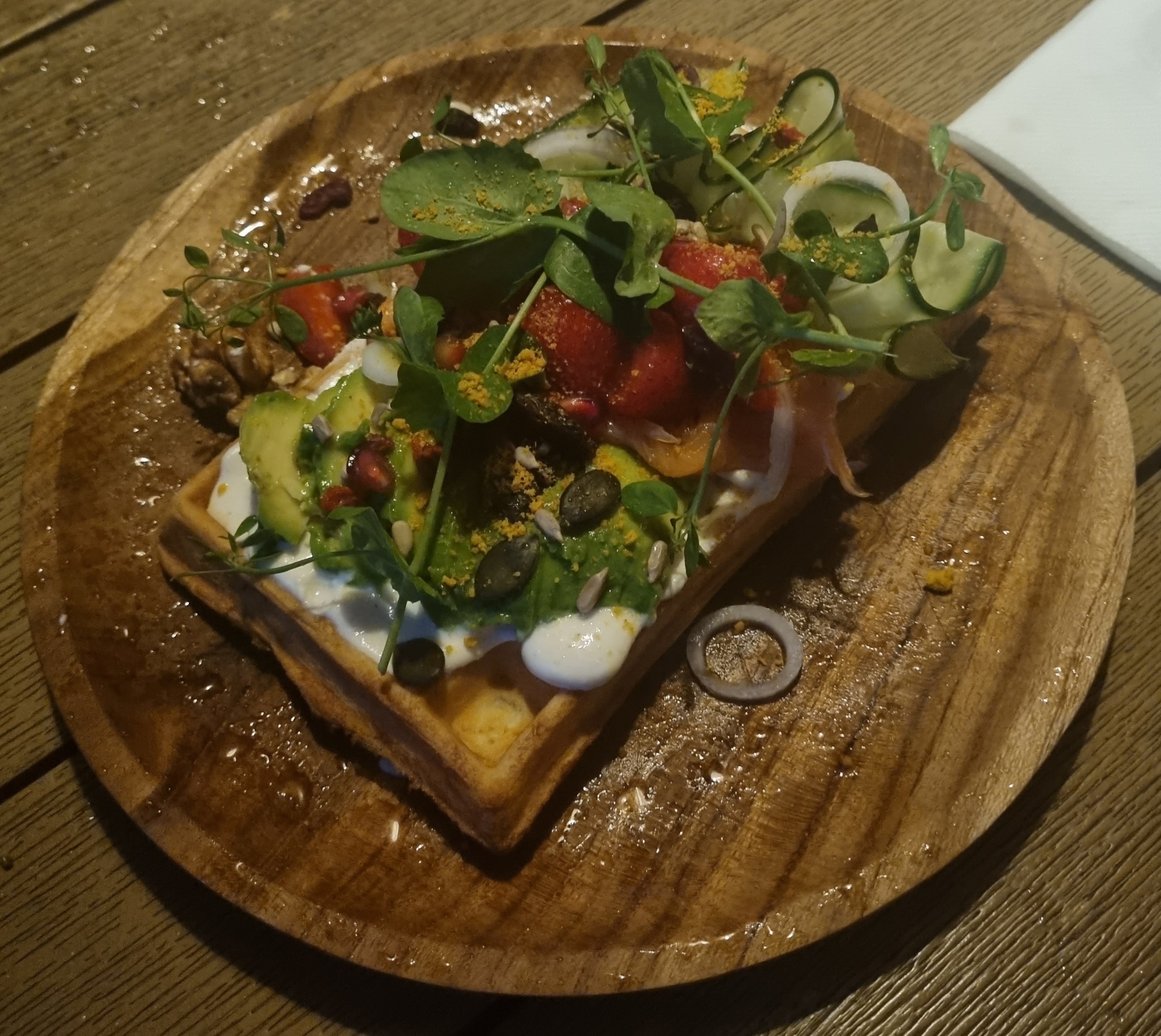 Cadre magnifique, carte très intéressante, les prix sont bien pour la quantité dans les assiettes. J'ai pris la Waffle BLT, c'était délicieux. Le tartare de saumon à la fraise était très bon également.