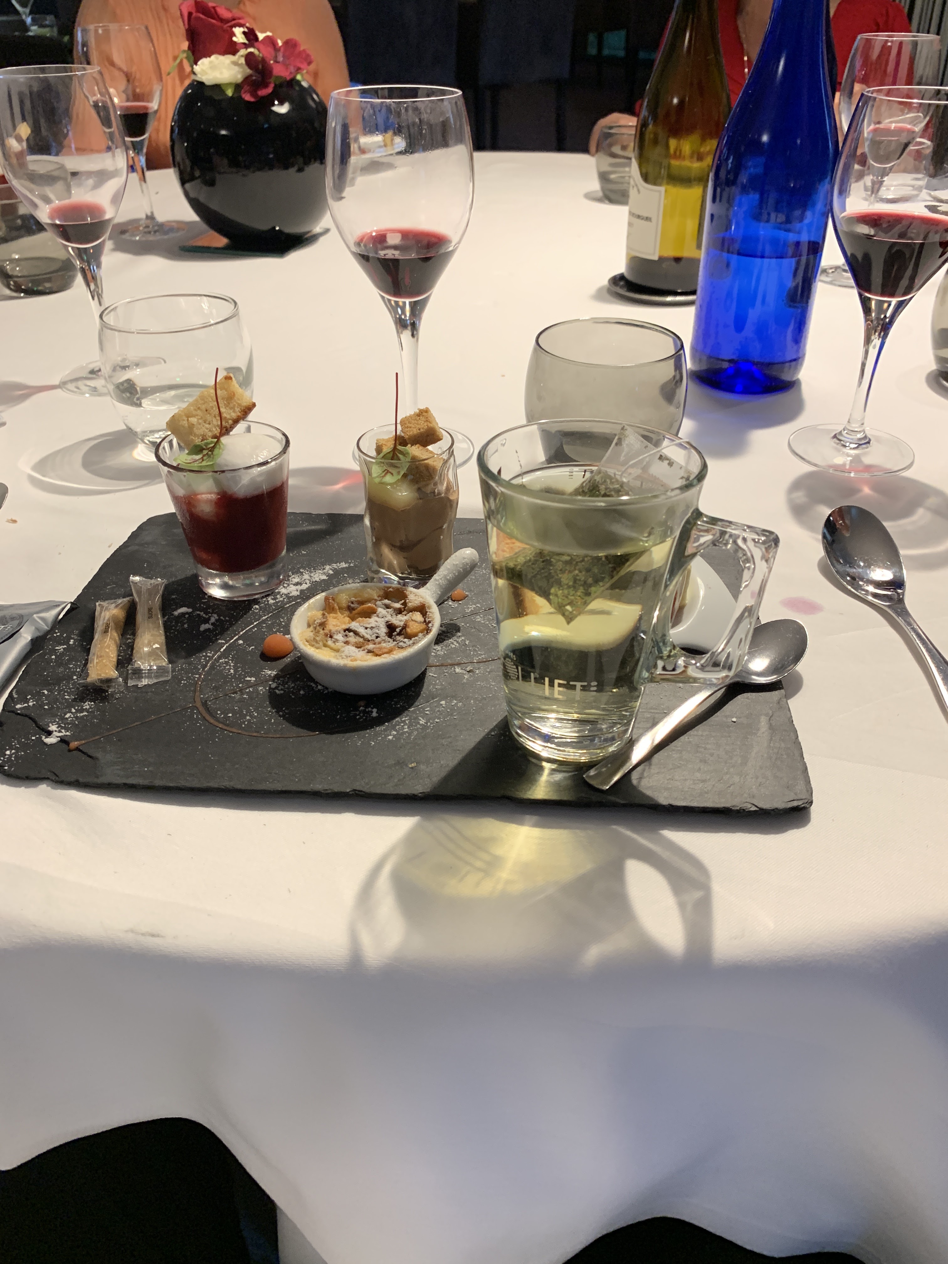 Mais quel régal !! De l entrée au dessert en terminant par les mignardises offertes au petit salon, tout était parfait ! Et le service vraiment de qualité.