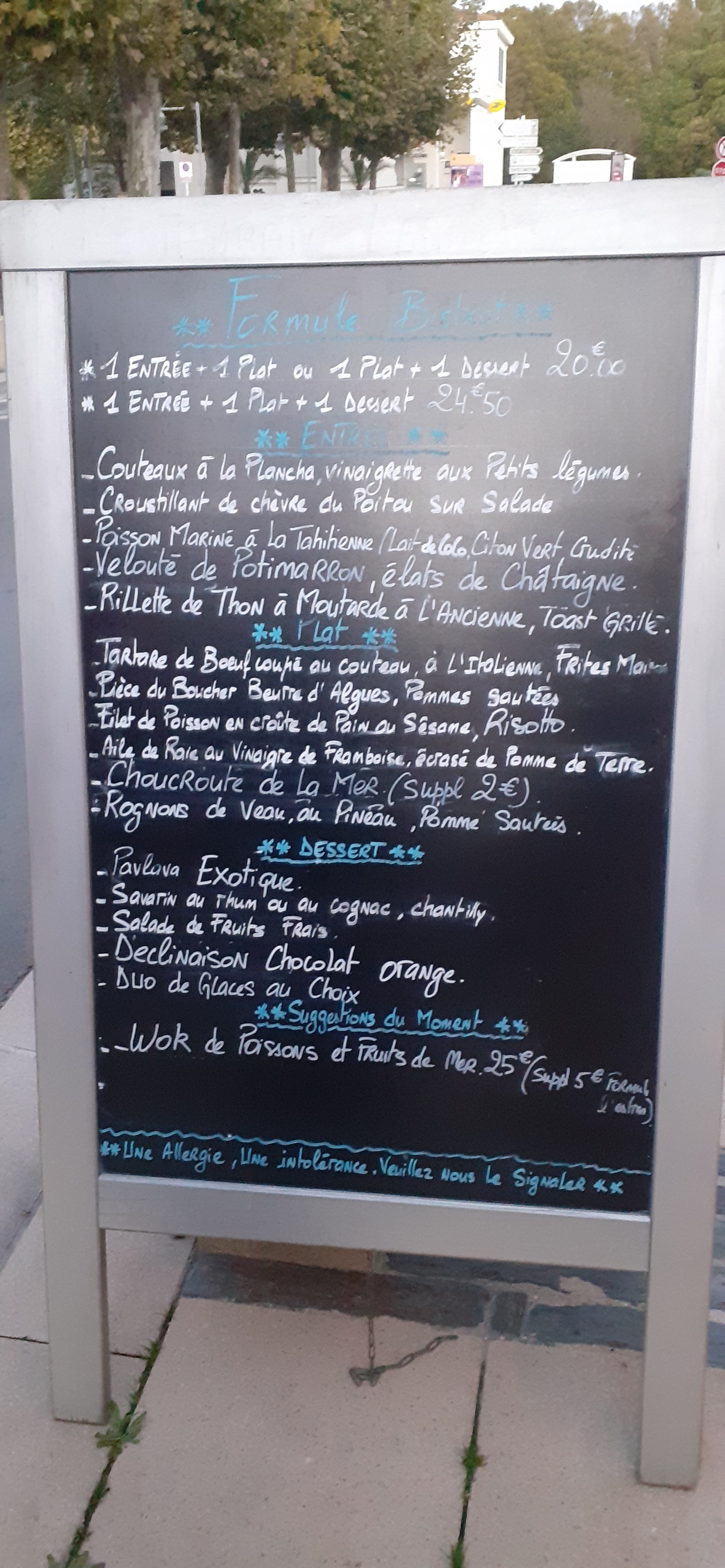 Excellent choix de ce jour au Château d'Oléron. Restaurant de qualité aux choix éclectiques. Cuisine raffinée, très bien présentée. Ce dimanche, menus à 27 ou 33 € et carte. Addition raisonnable pour la qualité et le sourire en plus