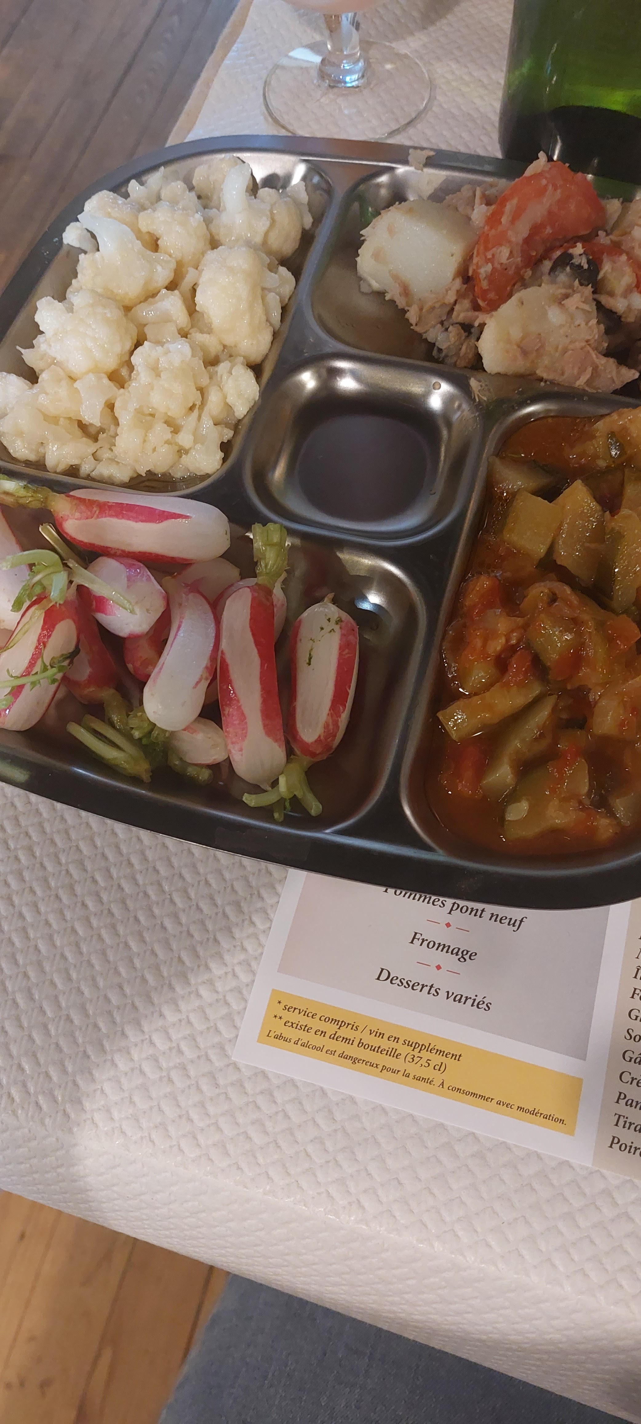 Repas excellent très copieux trop peut être on a pas pu finir et je pense même que ce soir je ne mangerai pas . Félicitations aux chef . Equipe sympa.