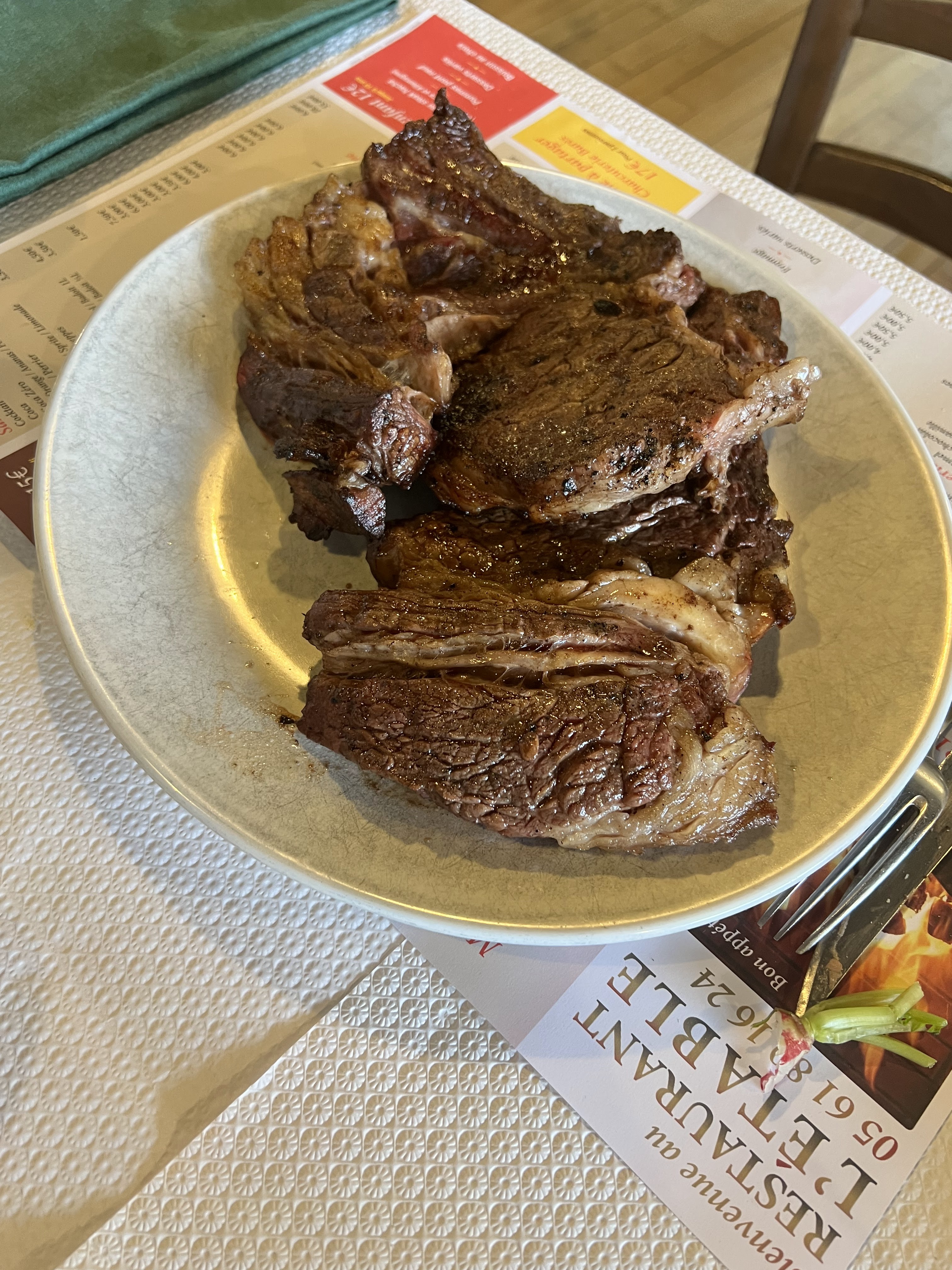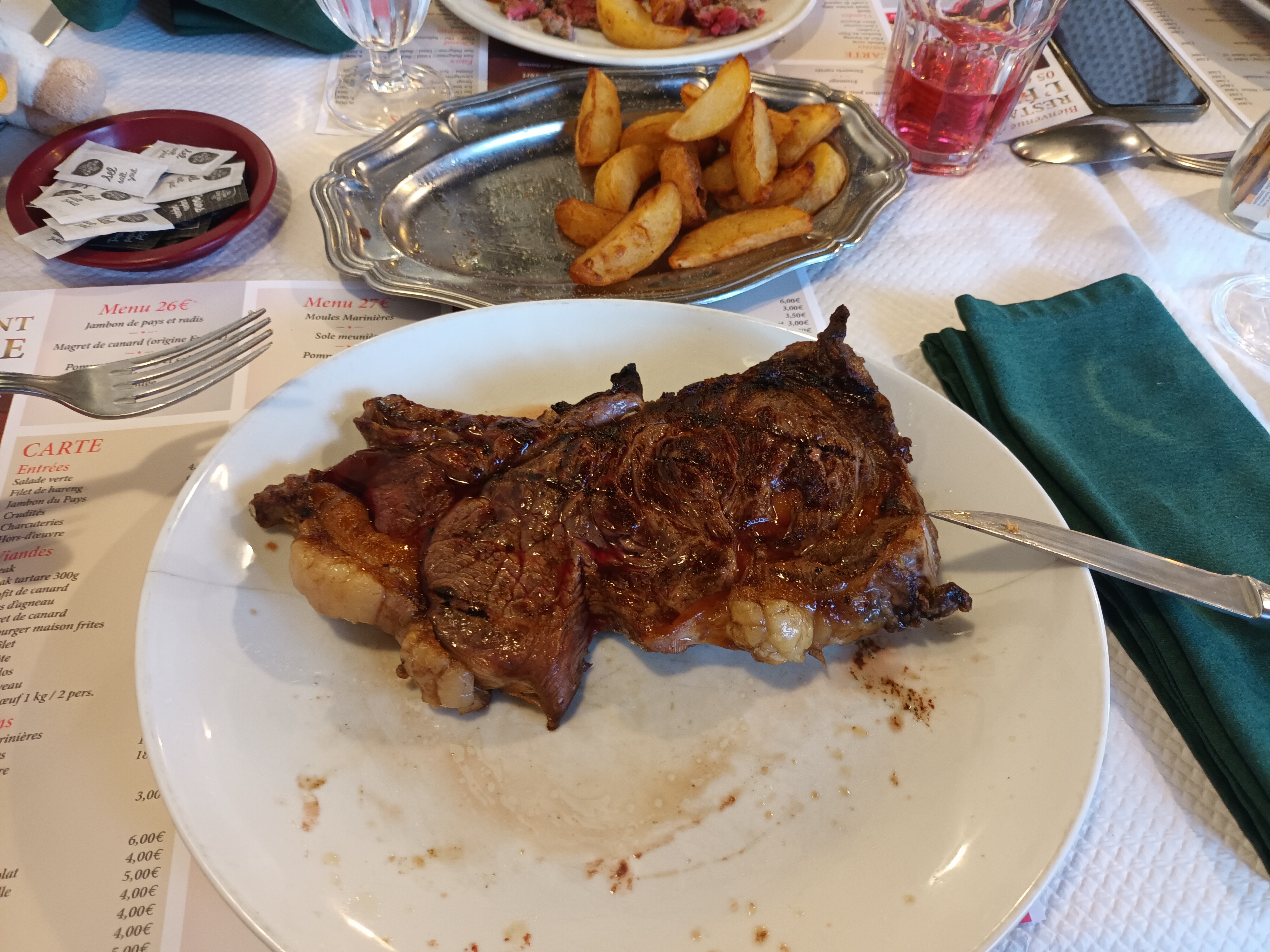 Attention pour gros mangeur, l'entrecôte est énorme, grillée au feu de bois et d'une super qualité. Mais il faut avoir très faim