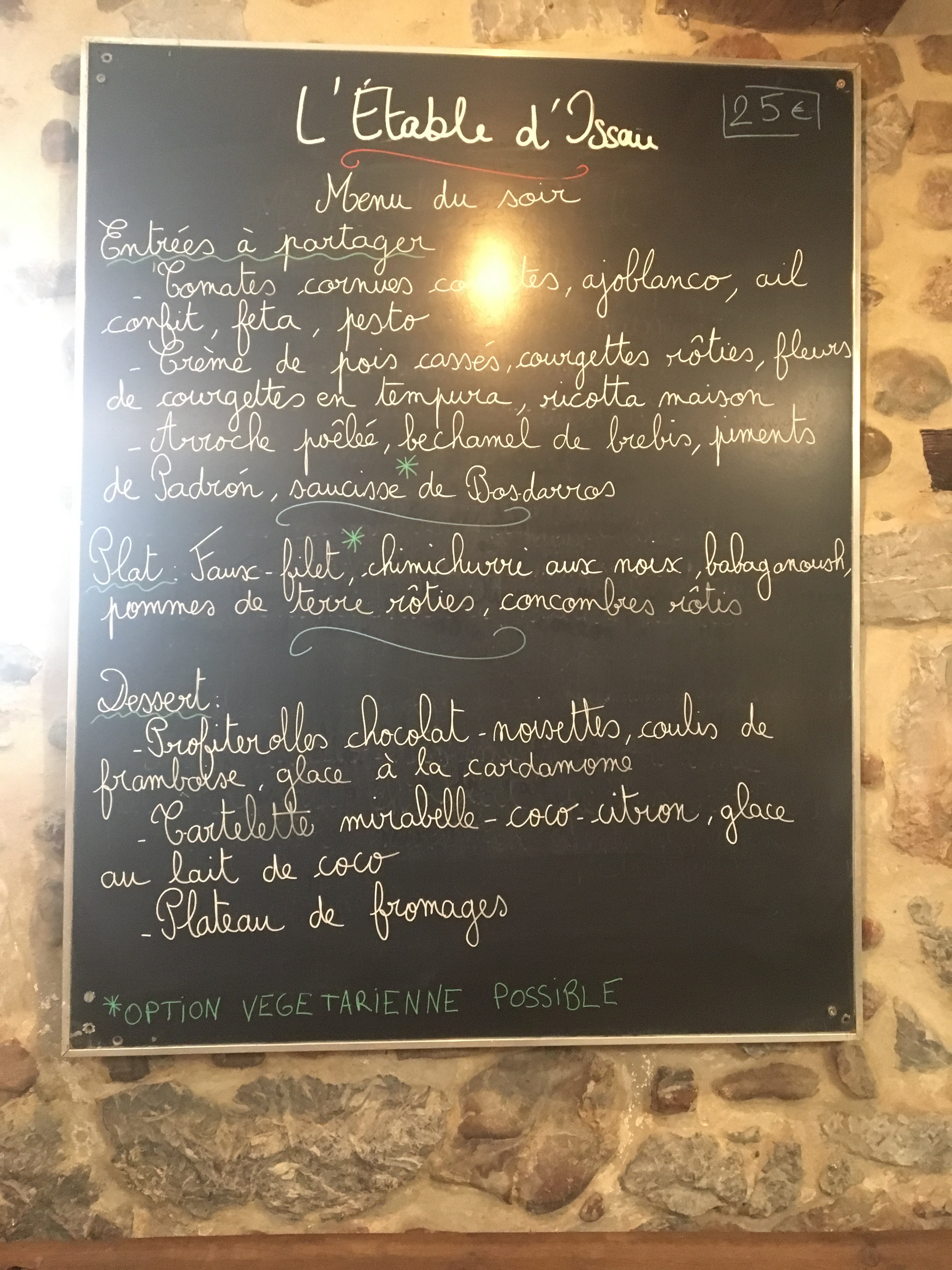 Menu unique original a base de produits bio locaux. Bravo c'est très bon ! La carte des vins sympa, on reviendra !