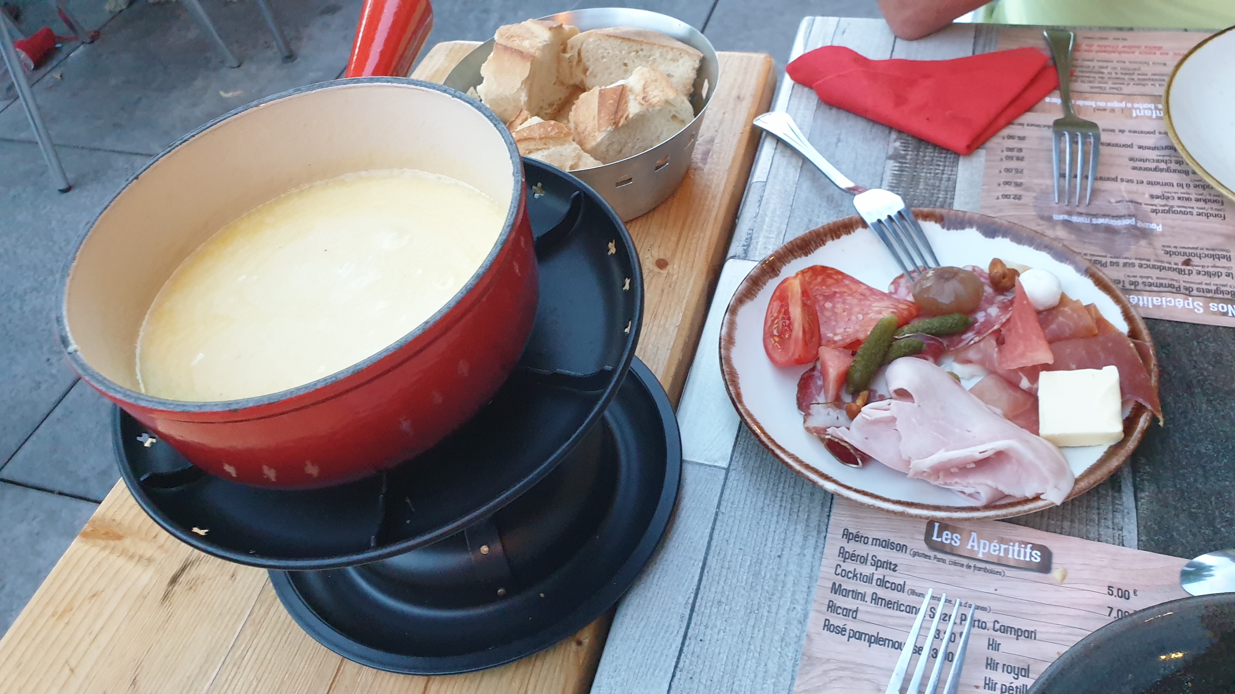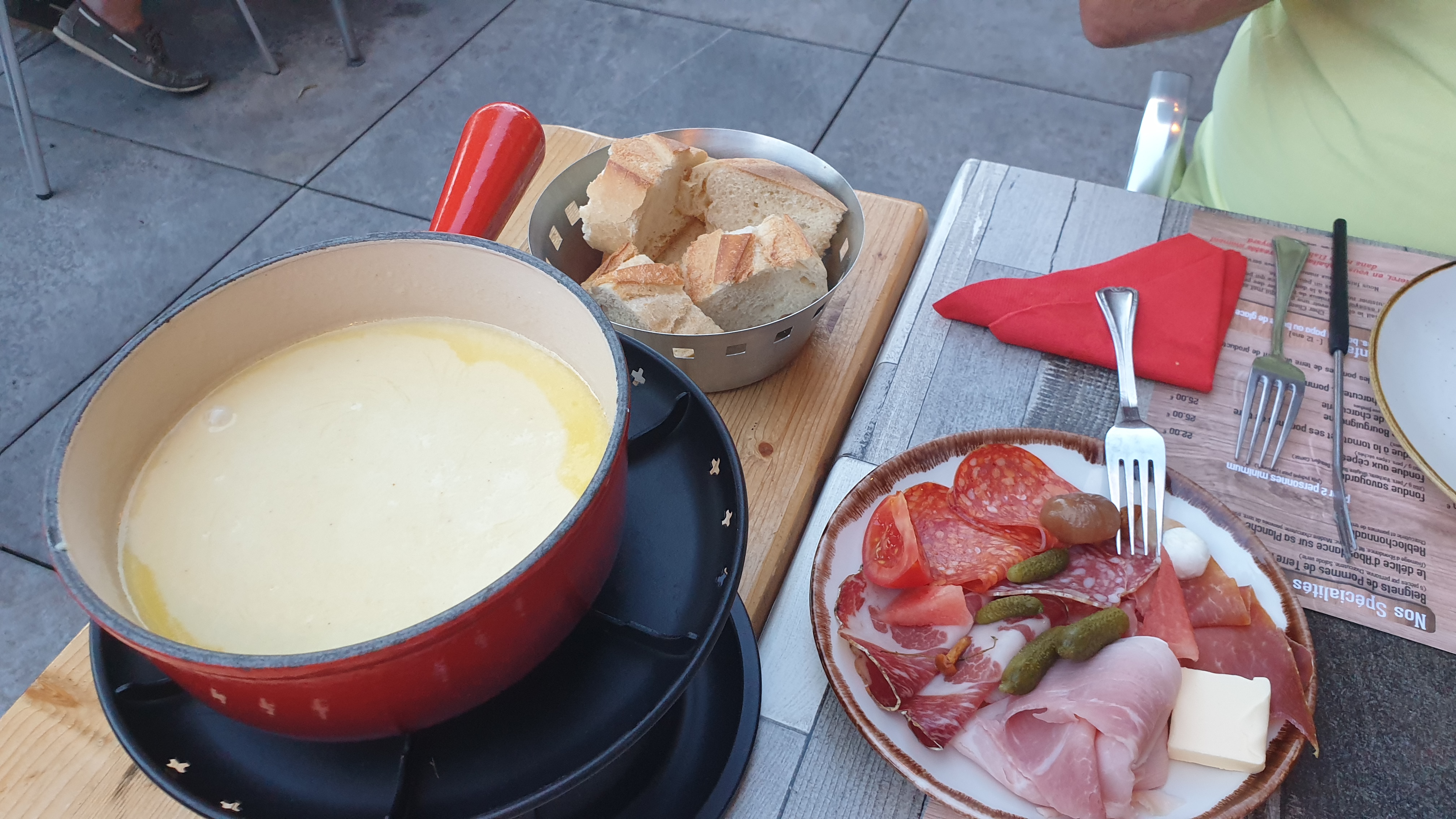 Ambiance très sympathique, beaucoup de monde avec des locaux, c'est plutôt bon signe. Après une petite salade d'accueil, la fondue pour 2 et la raclette pour 2 arrivent. C'est copieux et très bon. Nous aurions juste apprécié d'avoir une salade avec la fondue mais c'est un détail. On a juste pris une boule de glace par gourmandise car on n'avait vraiment plus faim ! Les serveurs et serveuses sont sympas et disponibles.