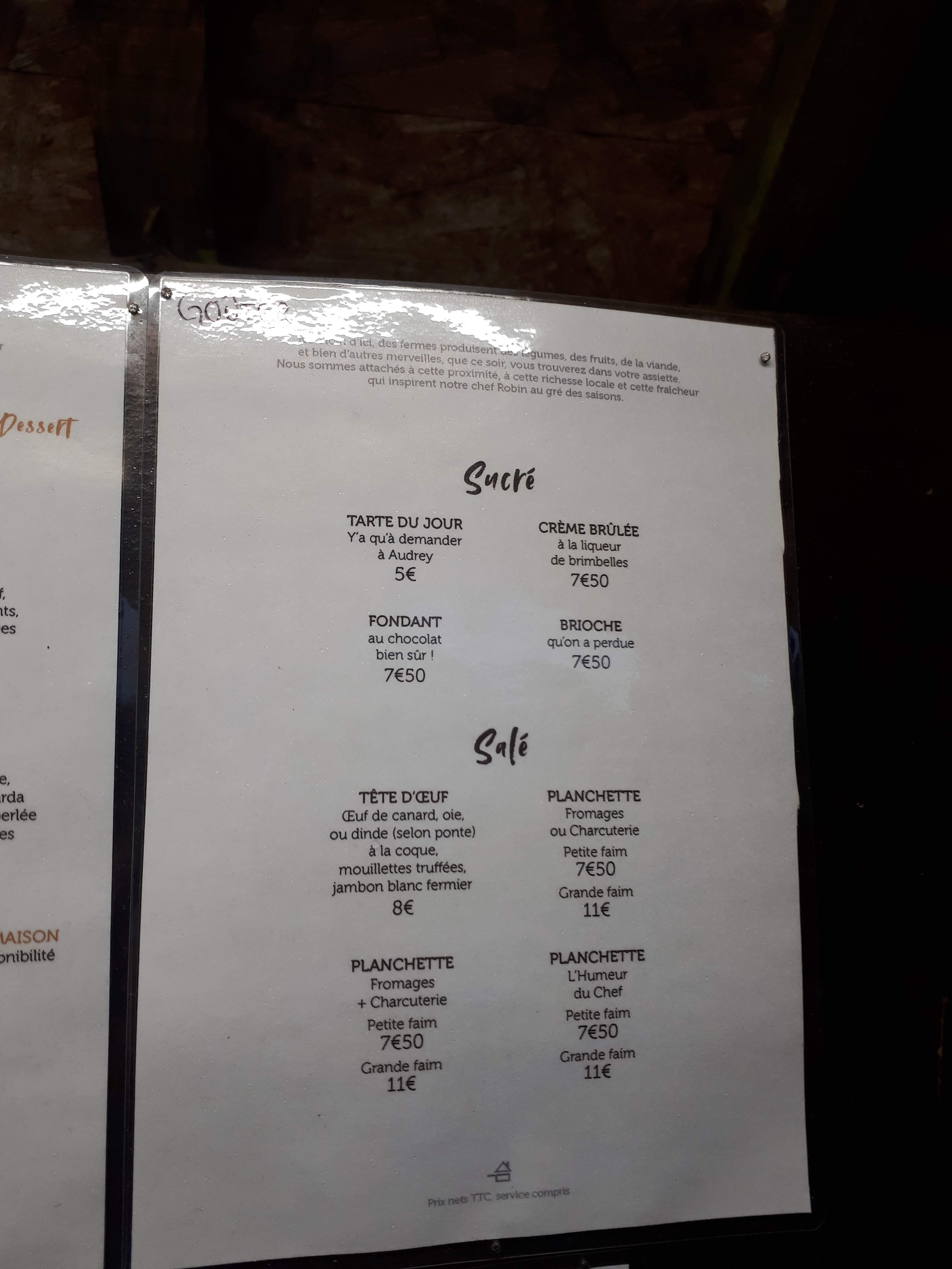 Nous avons été très bien accueilli par Audrey et la cuisine de Robin un délice... Nous recommandons cet établissement avec un réel plaisir. Rapport qualité prix plus que attractif pour la qualités des produits.