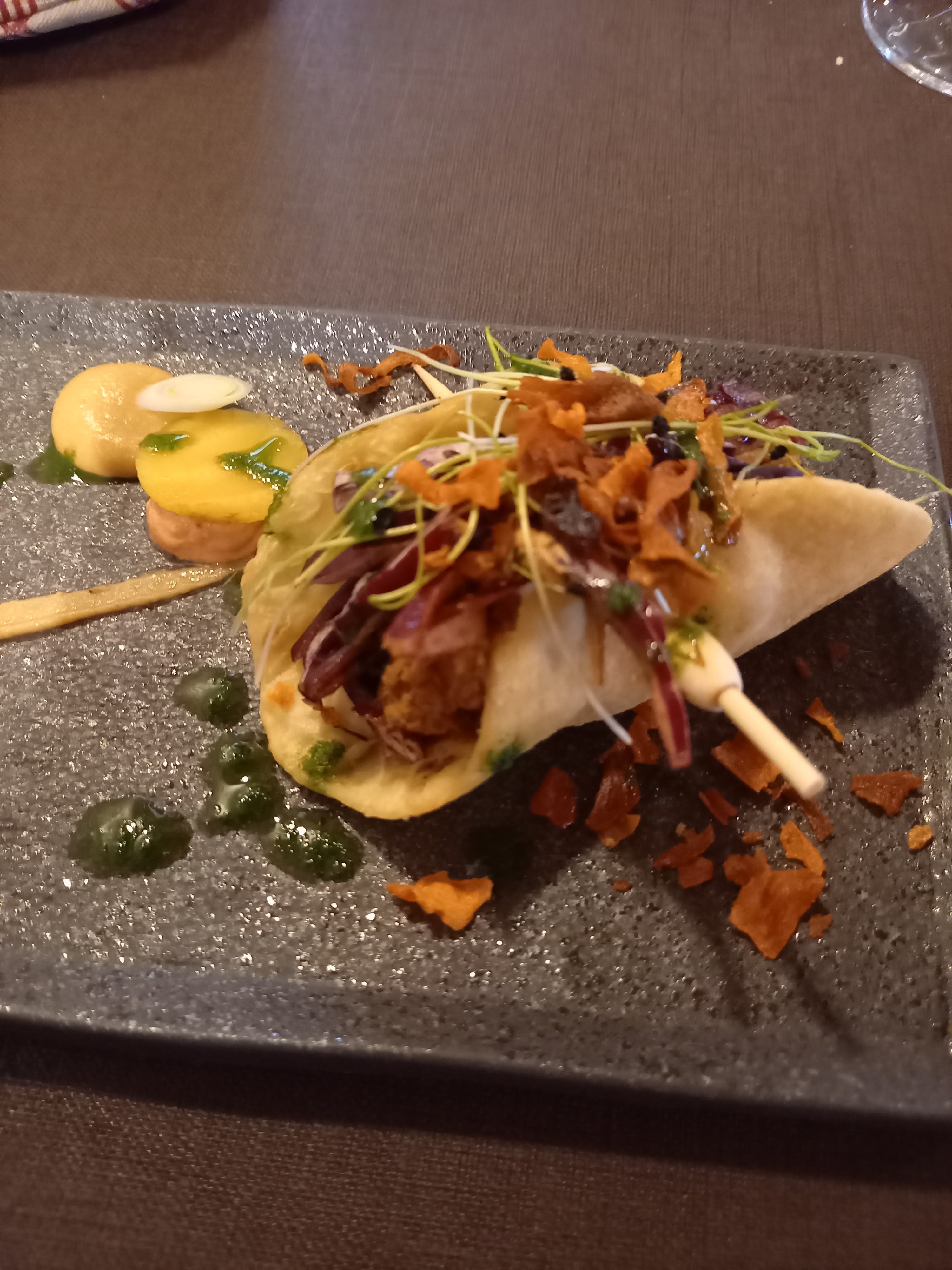 Ravi de cette expérience ! Aucune chance de passer devant cet établissement par hasard tant il est discret, mais il offre un cadre agréable et une cuisine de qualité, originale dans sa présentation. Service très professionnel.