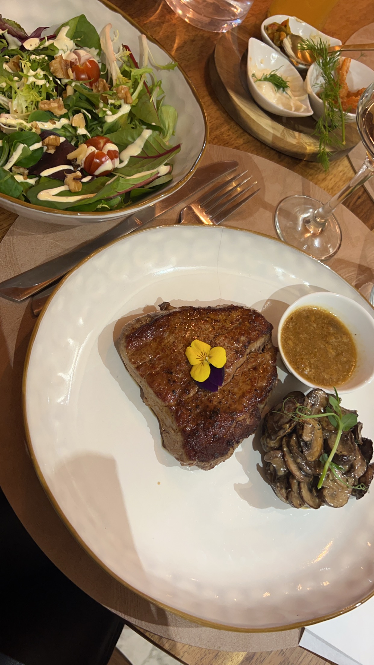 Belle décoration, ambiance calme, service agréable. Les portions sont correctes, le tarif cohérent avec la qualité (aux alentours de 20€ le plat) Nous aurions préféré moins de viande et plus d'accompagnement (il y avait 2/3 viande, 1/3 accompagnement environ)