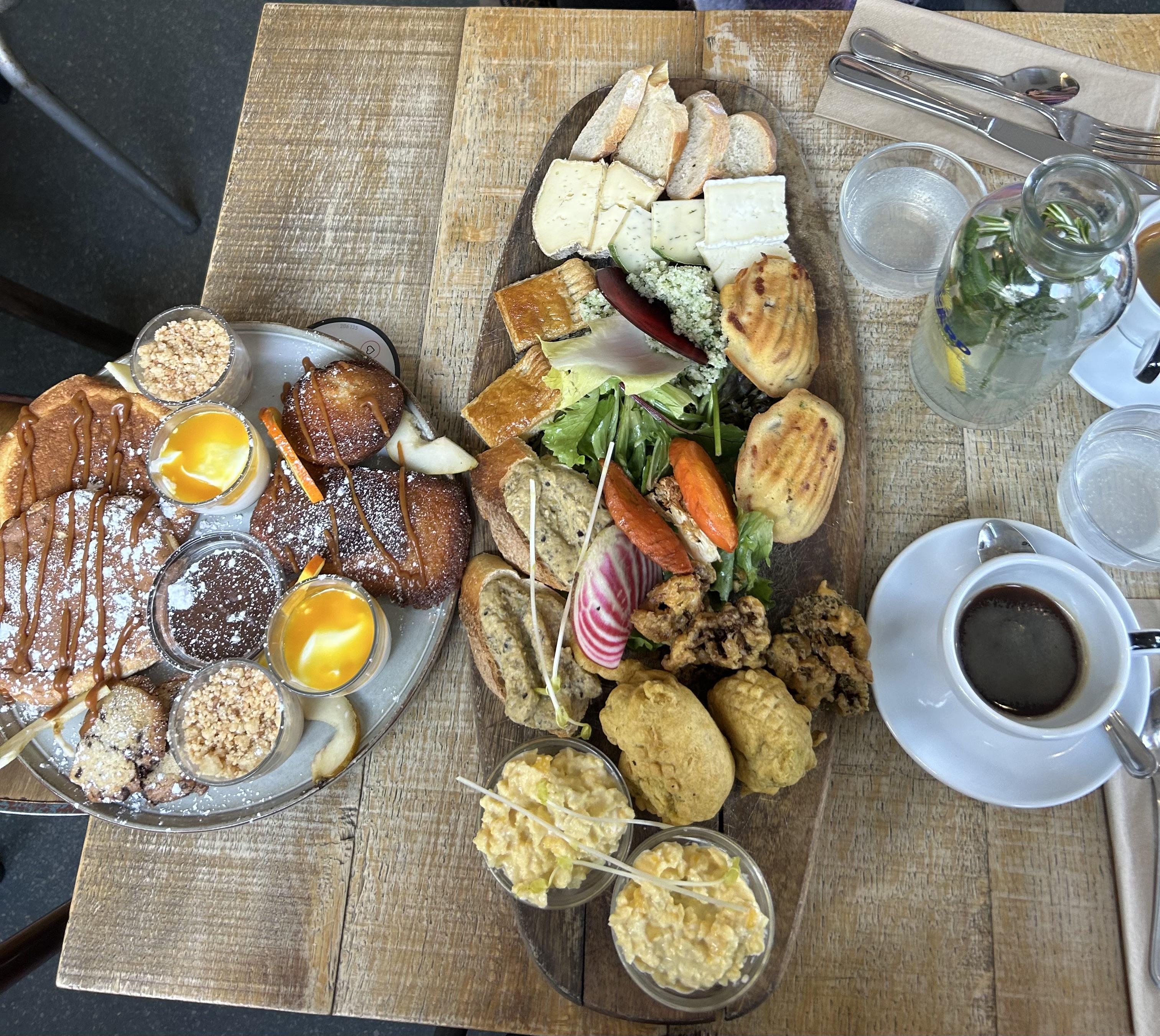 Très bon brunch! Pour 2 personnes on a 2 planche et 1 planche de sucré c’était top! On avait vraiment plus faim après. Option végétarien est disponible aussi.