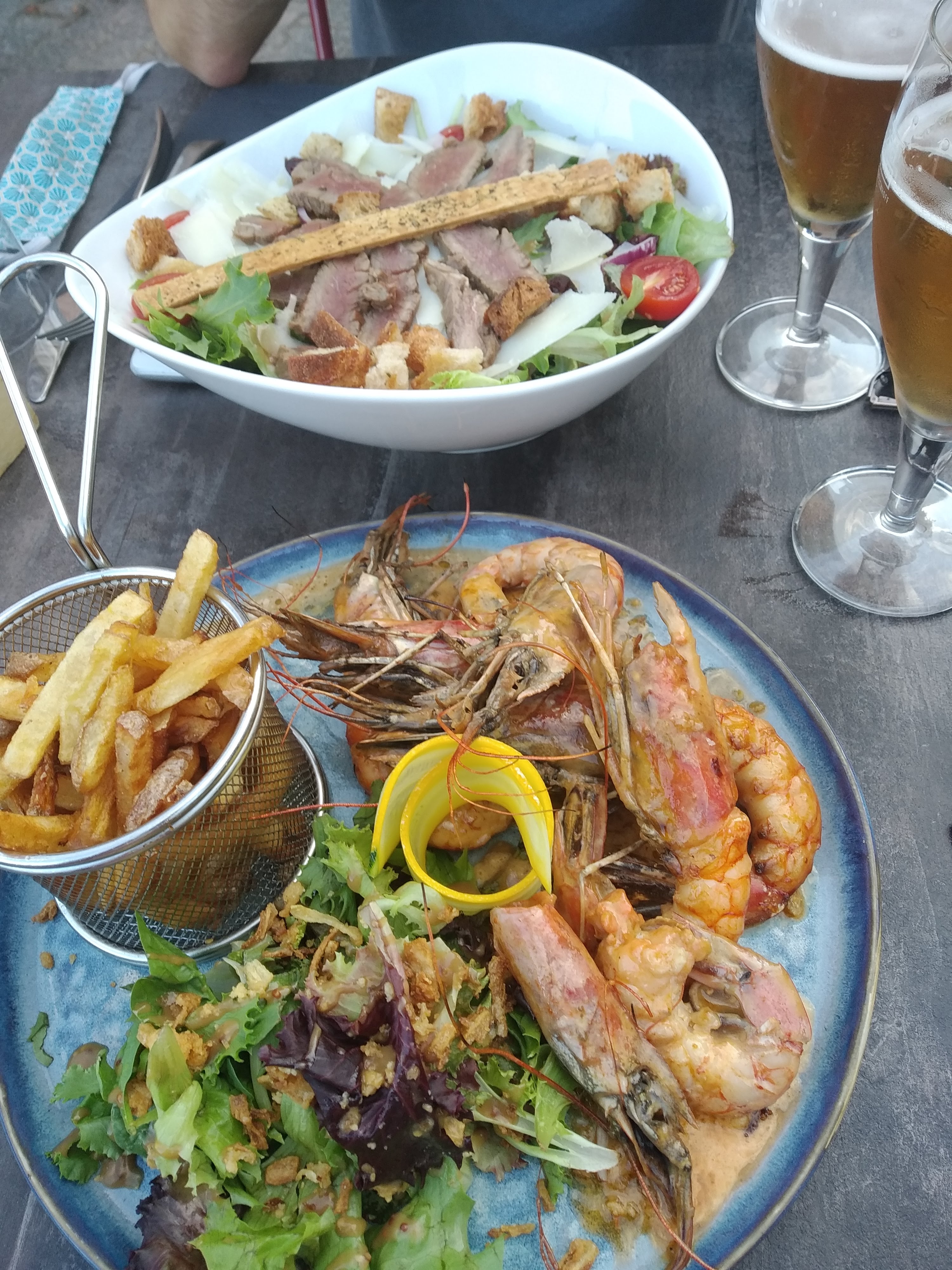 Nous avons passé un agréable moment le restaurant et décoré avec goût le personnel est souriant et agréable nous avons été servis rapidement en ce qui concerne le repas pour ma part j'ai pris la grande salade l'établi elle était très bonne bien garnie et le foie gras excellent pour le plat de mon époux il a pris la suggestion la cuisson était parfaite et le goût de la viande au top voilà on recommande ce restaurant niveau qualité/prix impeccable merci on reviendra