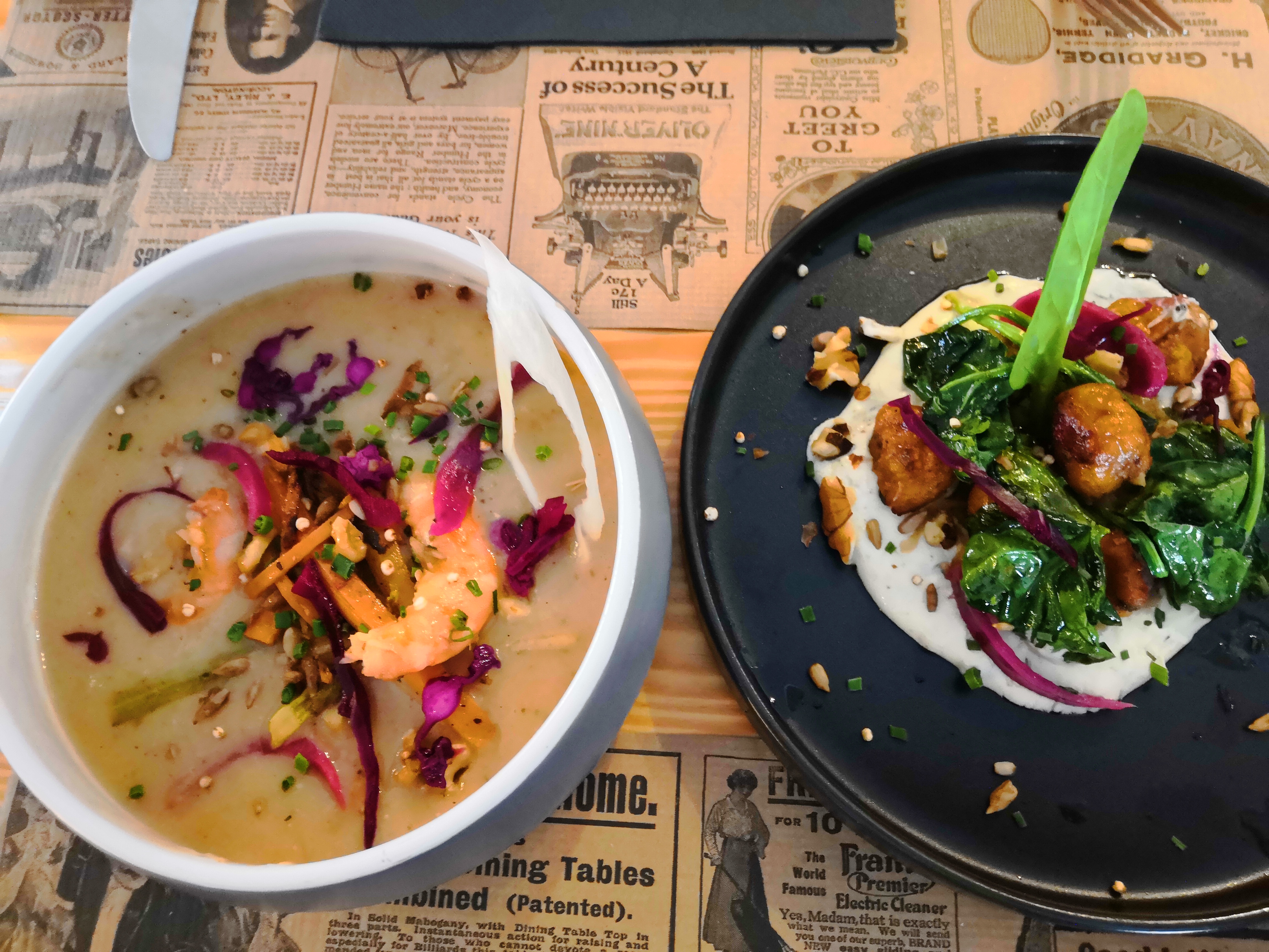Quel déception, quand je vois la note générale, les photos et ce qui nous été servi, en premier lieu c'est très cher 2 fois plus cher le soir que le midi en semaine, 33,90 plat+ dessert, nous étions 4 et tous insatisfait, le Bowl contenait des morceaux de mangue en piteux états manque de fraîcheur pas d'assaisonnement ou si peu, que du coup le Bowl à 18 euros est insipide, le veau de mes convives pas tendre des épouvantables frites sûrement le fond du paquet toutes petites et pleine de défauts légèrement noires cuites dans une huile trop vieille. Le dessert était pas mal mais un peu minimaliste et pas cohérent avec le prix et les photos. Nous habitons à côté mais nous n'y retournerons pas. L'établissement à du changer de cuisiner ou il est blasé.