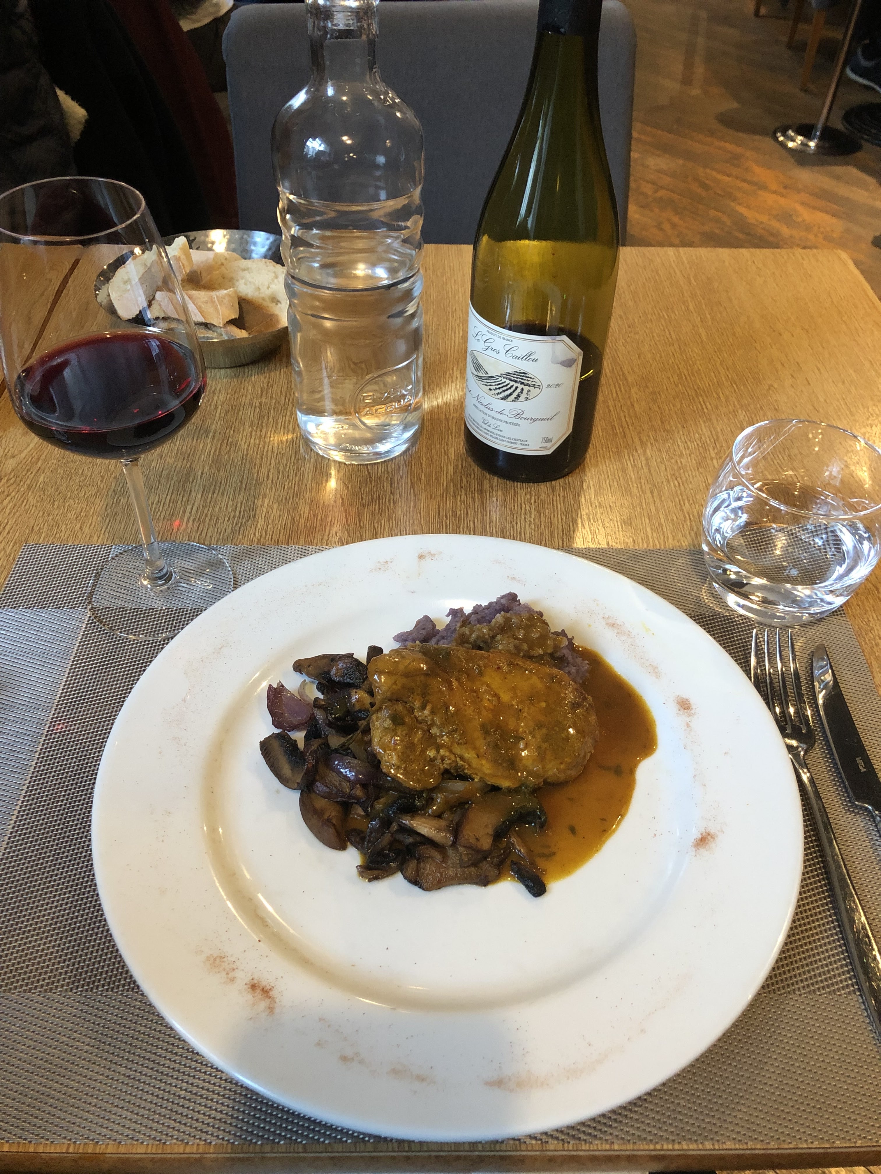 Service charmant et ambiance moderne C'est notre première visite à Orléans et après un horrible voyage à travers Paris, ça devait être mieux et ça l'était. le stationnement était facile et bon marché et nous avons trouvé tout le monde très sympathique. Ce restaurant est très moderne et a une bonne ambiance. le personnel est plutôt branché et amusant. il y a un mélange d'entrées assez chères et de plats principaux d'un bon rapport qualité-prix. Un menu assez intéressant et moins traditionnel que ce à quoi nous nous attendions avec beaucoup d'ingrédients modernes dans le mélange. Le plat principal ou le porc de Beth était plutôt fade mais le reste de la nourriture était excellent. Cela dit, c'était seulement 15 €, ce qui est un très bon rapport qualité-prix. Le vin qui nous a été proposé était excellent. Dans l'ensemble, c'était bien plutôt que génial et nous avons mis 5 étoiles au début, mais nous avons finalement décidé de n'en mettre que 4. Nous pourrions l'essayer à l'avenir si nous revenons par ici, mais nous essaierons probablement ailleurs. C'était amusant et pas cher.