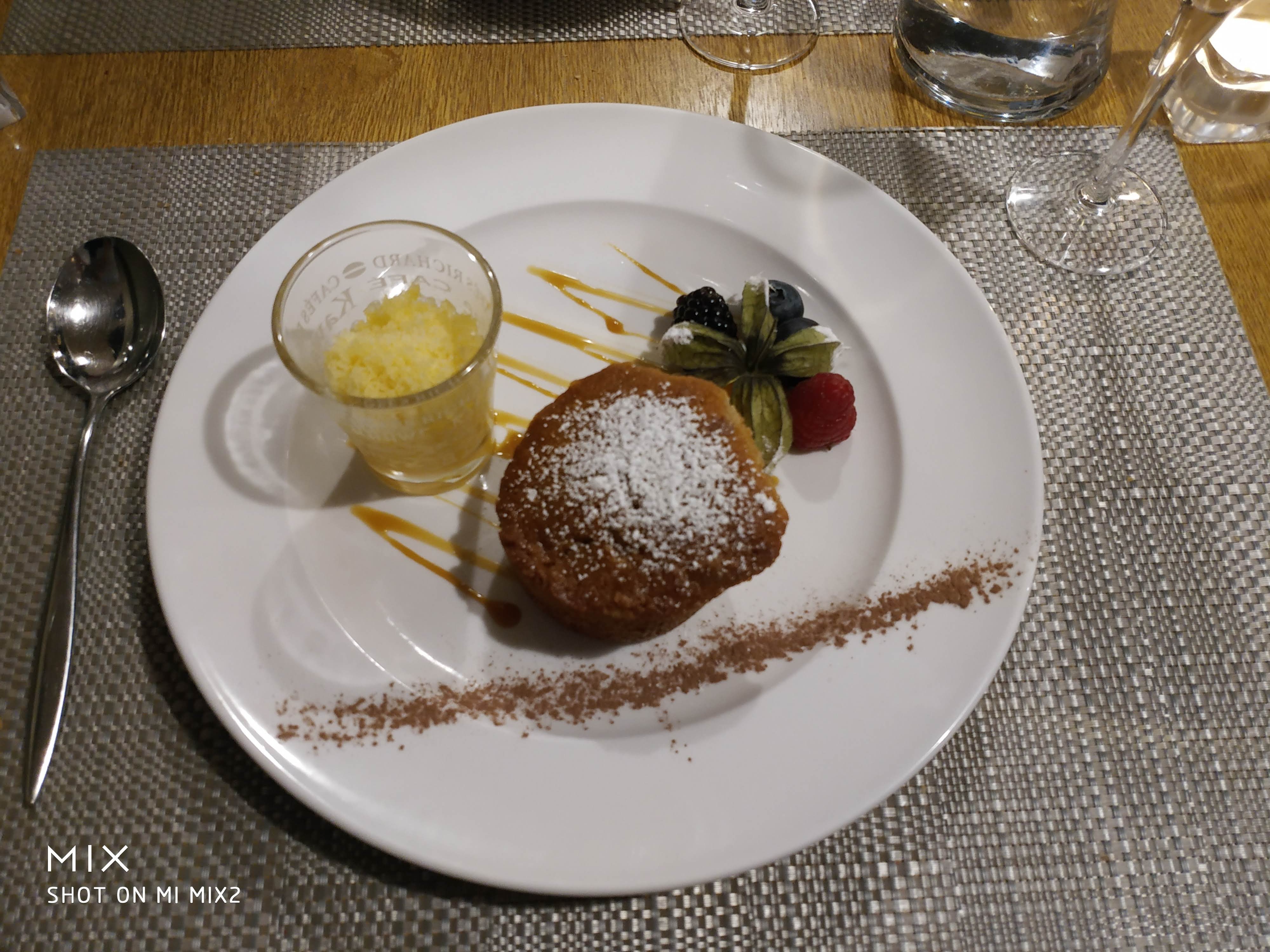 Tout d’abord nous avons été très bien accueilli par le personnel qui est très sympathique et l’a été durant tout le repas. Nous avons eu un petit en-cas en attendant nos plats qui sont arrivés assez vite. Je recommande le risotto qui peut aussi se commander sans le jus de viande pour les végétariens : gourmand, savoureux avec de bons légumes j’ai été rassasiée et j’ai passé un très bon moment !