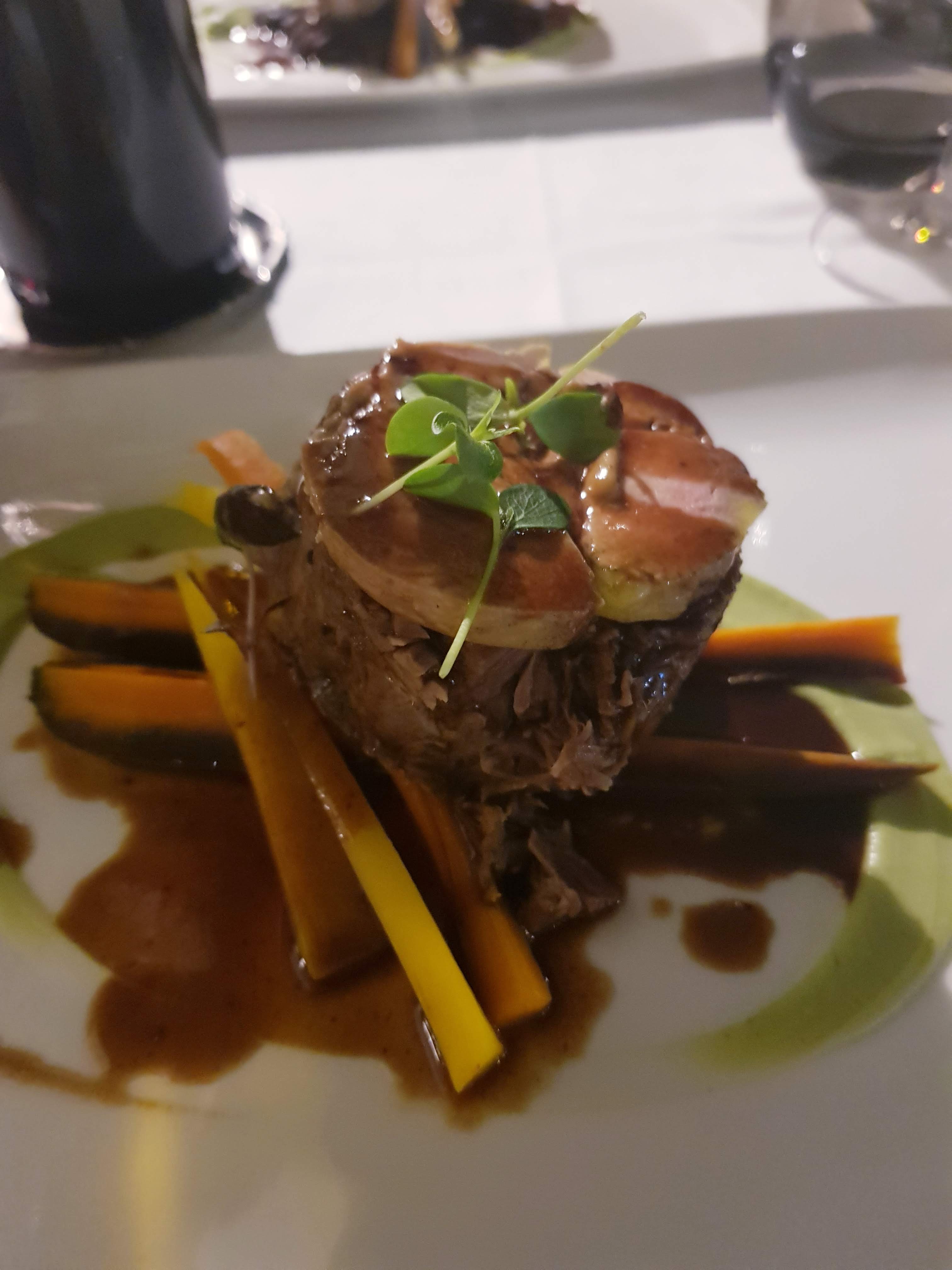 L’attente est looooongue ..malgré le peu de monde ce midi là , Au menu , on nous vend une super viande maturée ....que nous n’avons appréciée ni l’un ni l’autre , pas top ! dure à couper et avec des nerfs ....l’accompagnement ; des frites maison qui ressemblaient à des spaghettis tant elles étaient fines, grasses et toutes ramollies ...je n’aurai même pas osé servir ça à mes propres invités ; le dessert pour moi , une Pavlova réalisée avec 2 petites meringues du commerce , en forme d’étoiles , rien à voir avec la vraie Pavlova !!! Quelle déception ce resto ..les 2 étoiles c’est uniquement pour l’accueil charmant, seul point positif !!!
