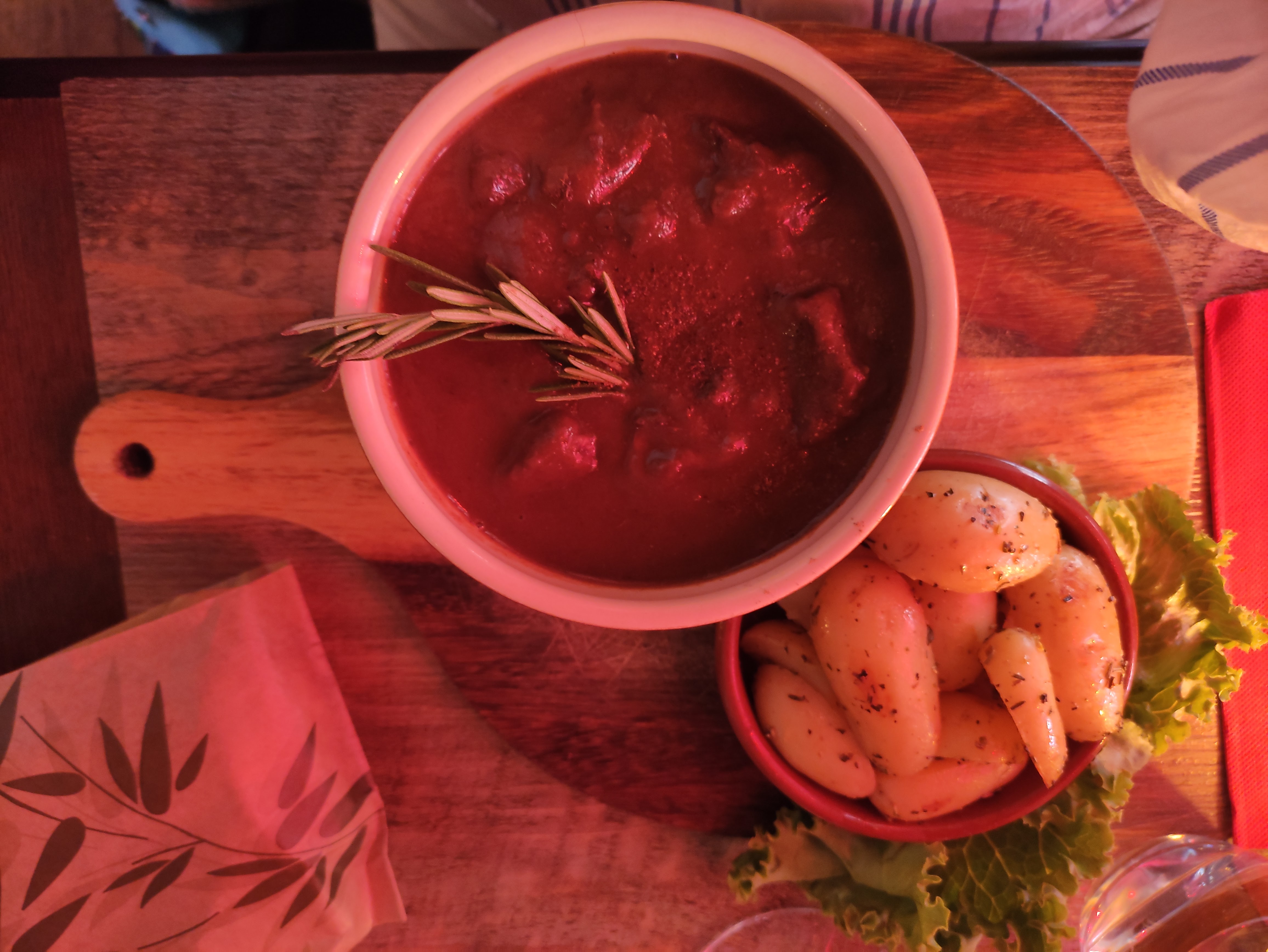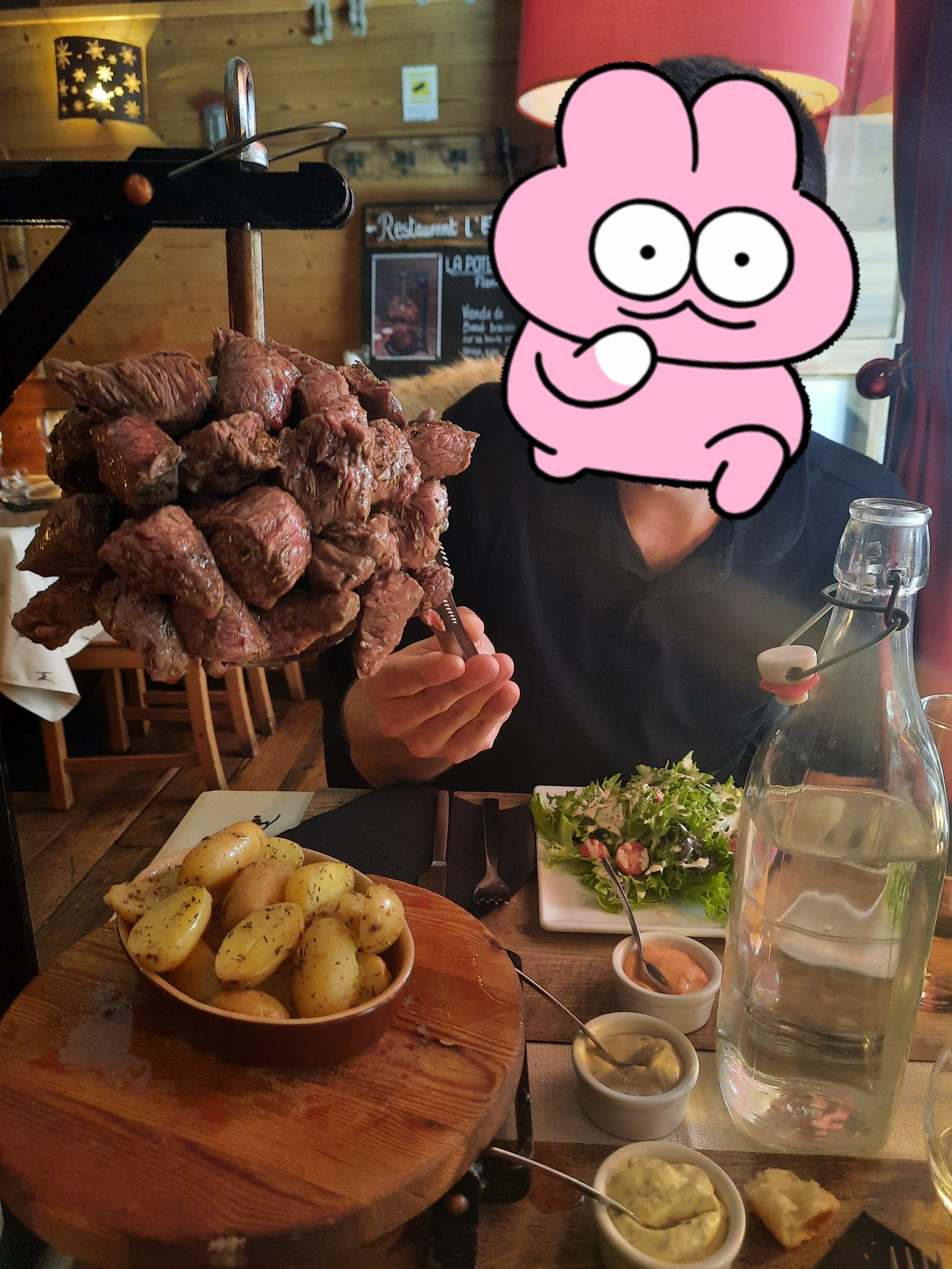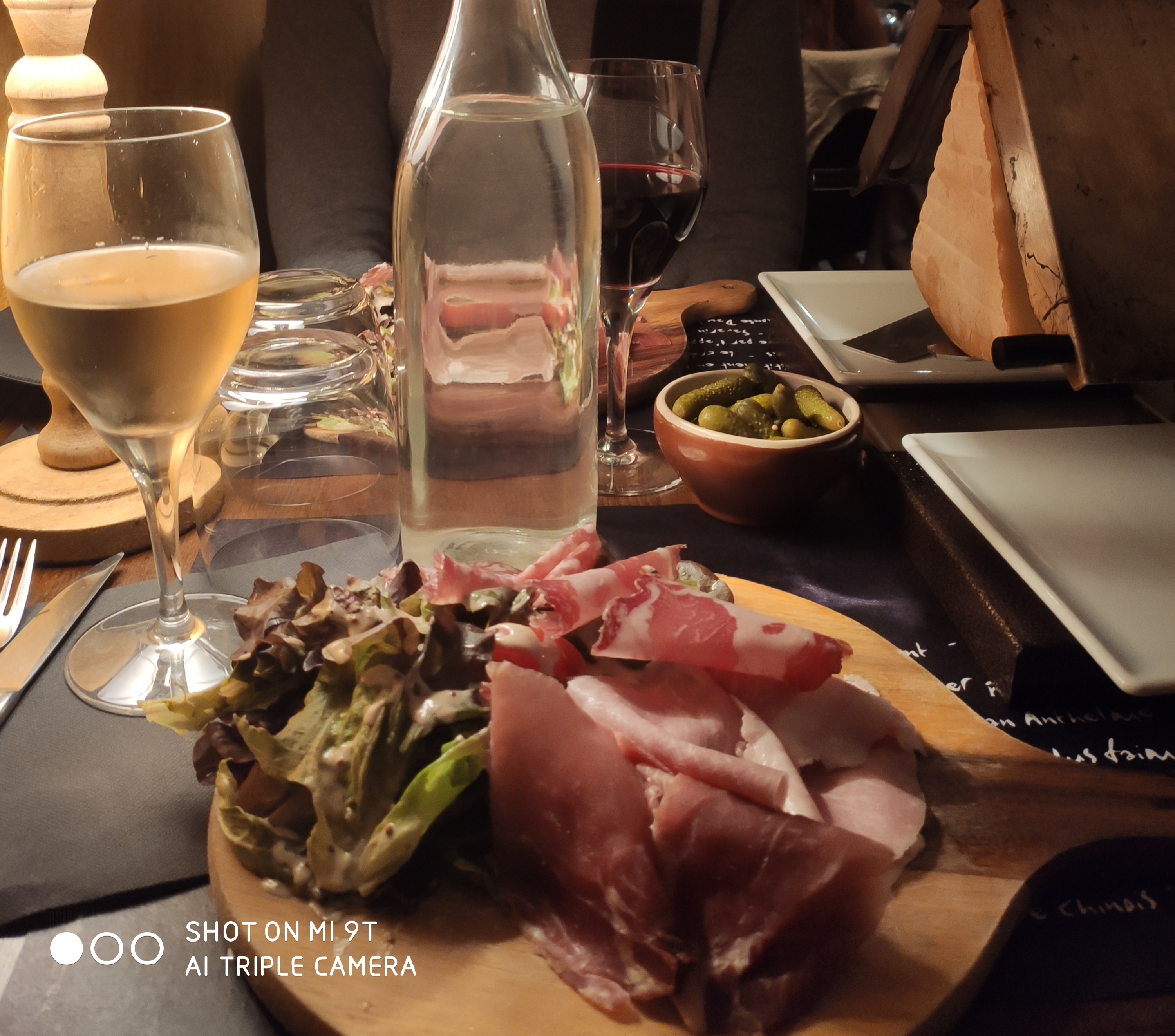 On y a mangé a 4 donc on testé la raclette et la fondue , le fromage pour les 2 très bons , léger sur la charcuterie et les plateaux en bois pour manger passable je trouve , on était 2 adultes et 2 enfants ça passe limite, mais pour 4 adultes trop juste .