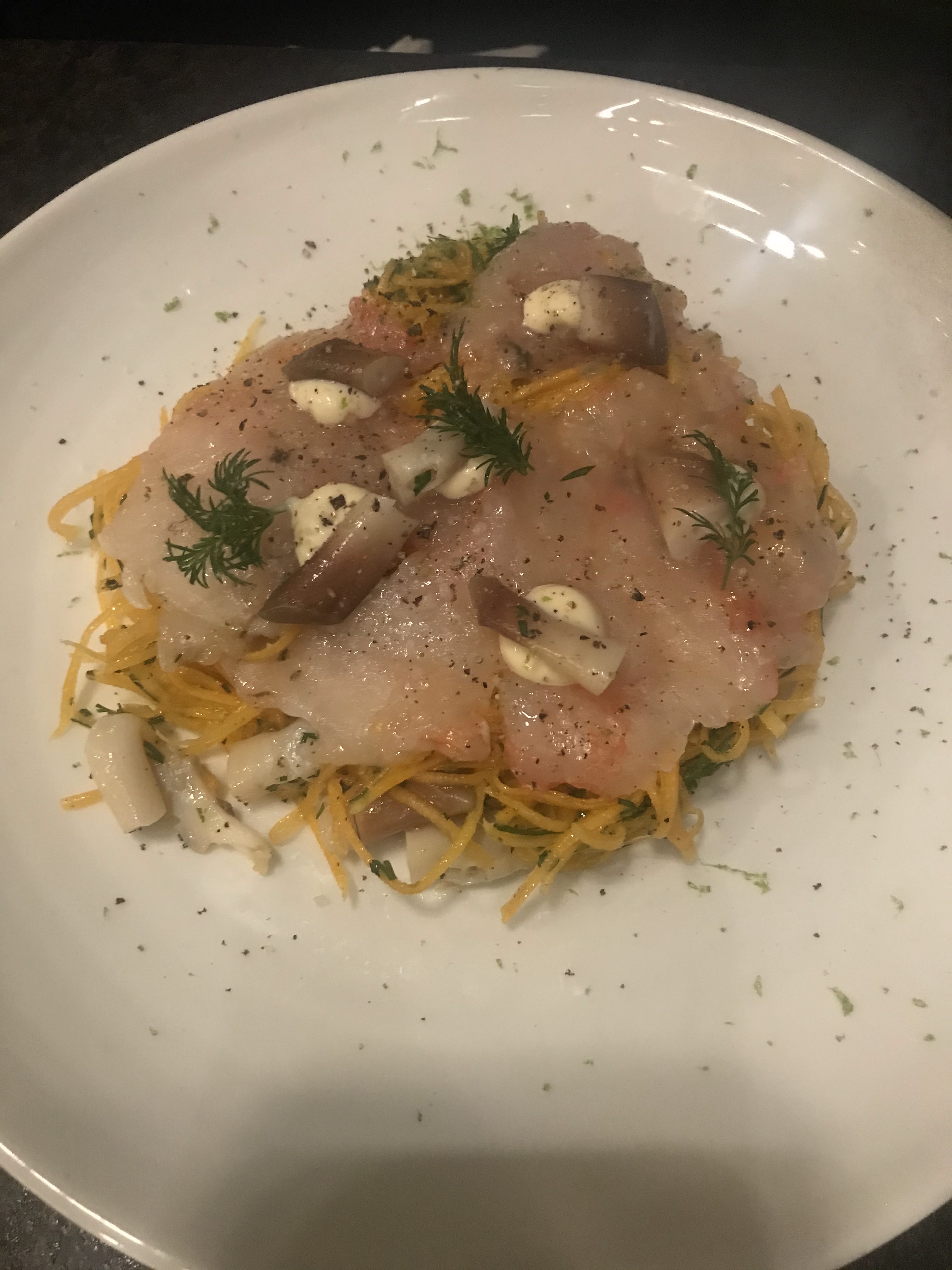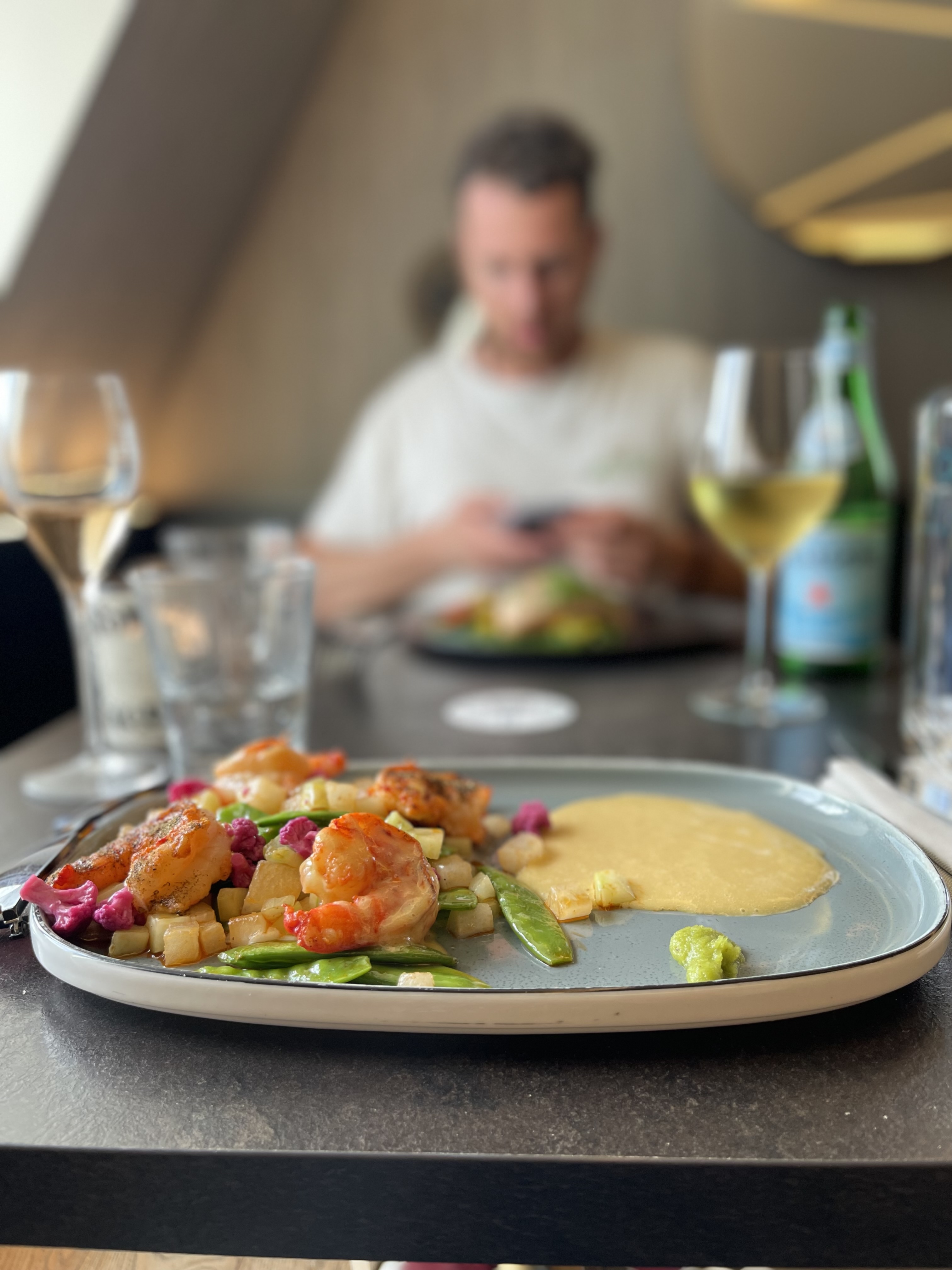 Cuisine aussi surprenante que maîtrisée et raffinée, le tout dans un cadre à la décoration design et contemporaine. Nous avons passé un excellent moment à deux, les plats choisis (cabillaud et saumon) nous ont proposés des mélanges inattendus et qui nous ont ravis ! Les prix sont très honnêtes vu la qualité des plats, du lieux et du service. Le serveur était également d’ailleurs très agréable et attentionné. Juste une envie : d’y retourner un peu plus tard dans l’année quand nous pourrons admirer depuis la table le coucher de soleil.