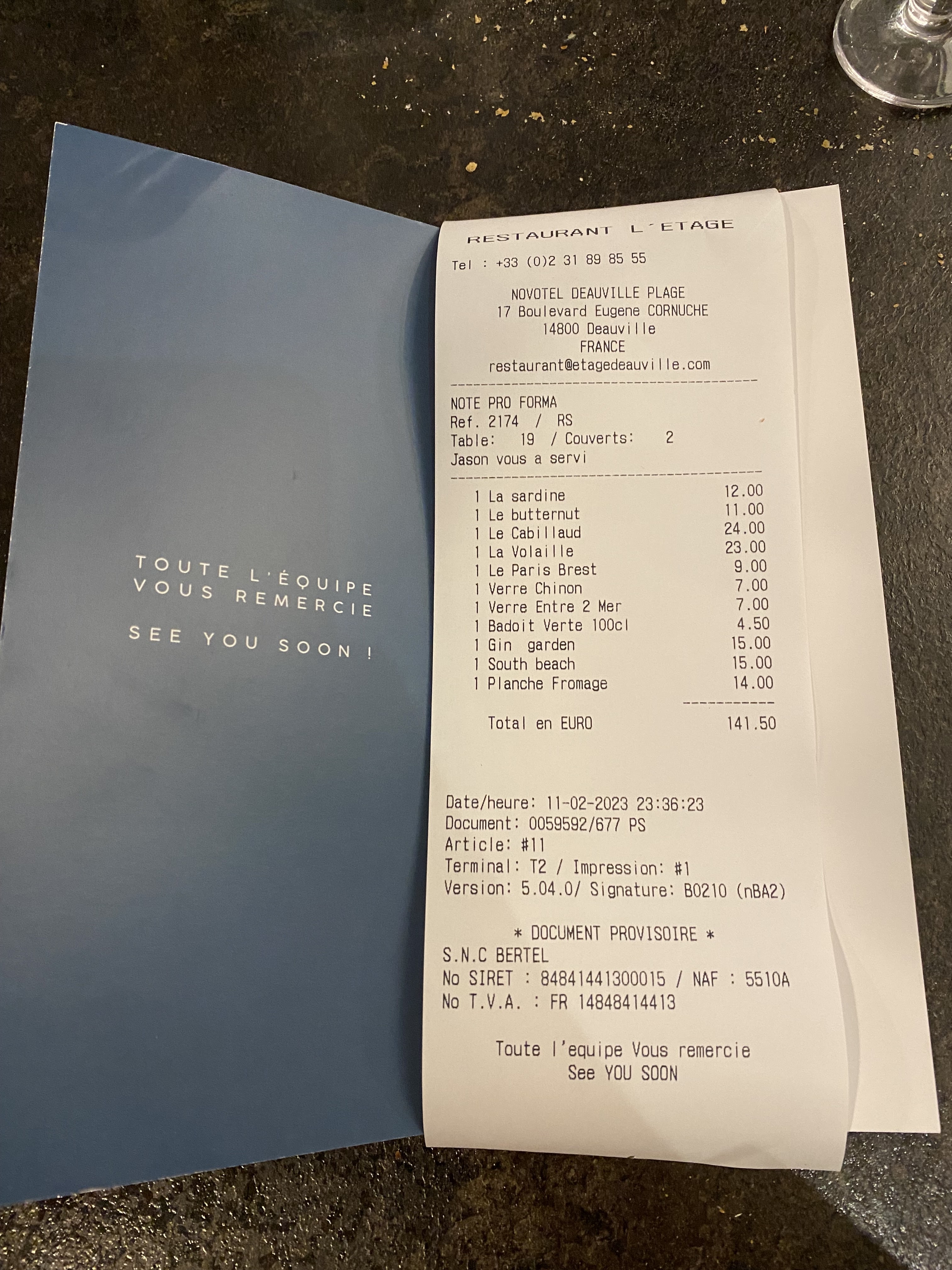 Nous avons testé ce restaurant le 4 janvier en arrivant sur Deauville. Le jeune serveur était au top et c'était très bon ! 👌