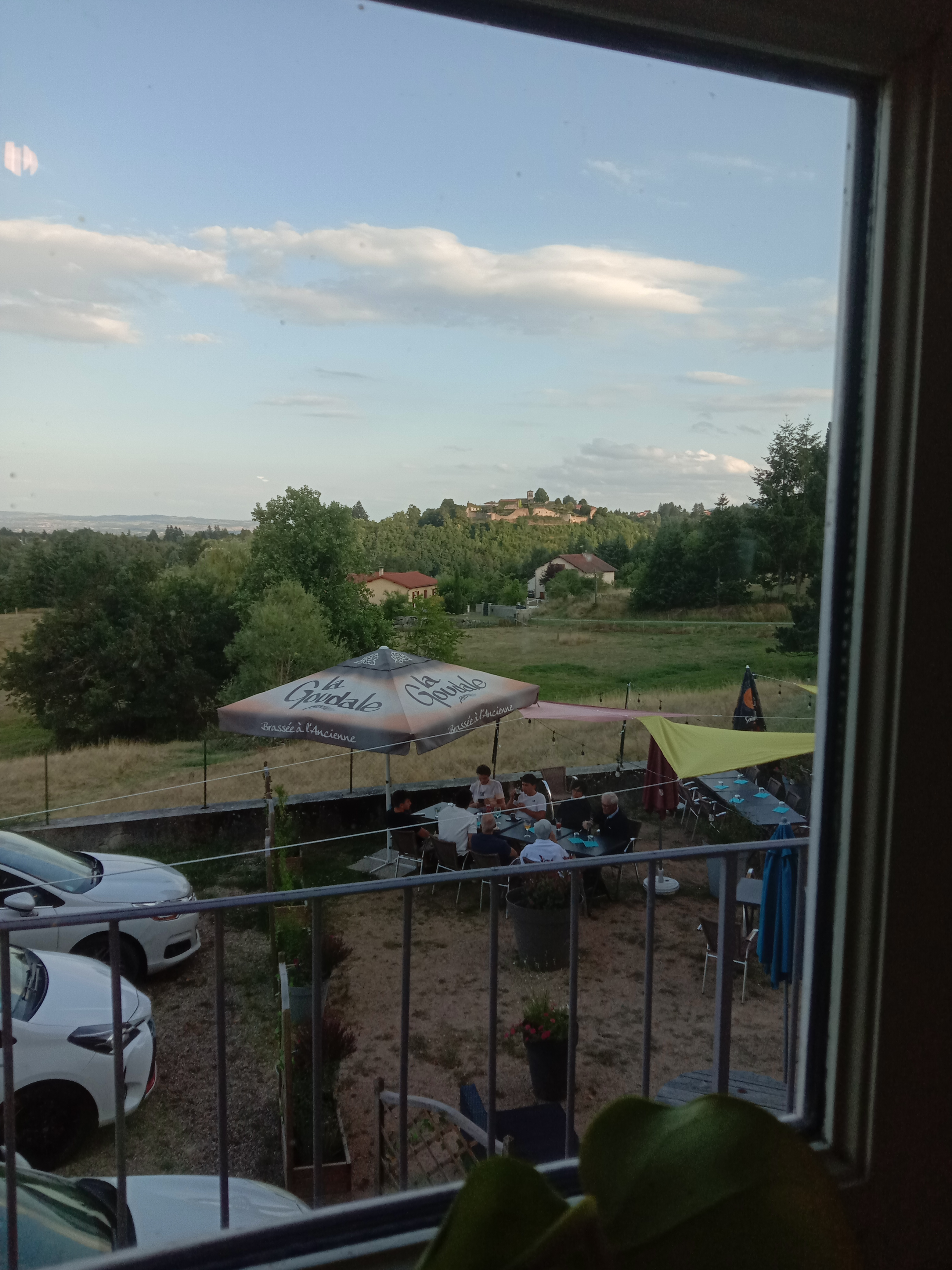 Accueil très chaleureux. Excellente cuisine... Plaisir des yeux et des papilles ! Vue magnifique sur le village médiéval de St Haon le Chatel.