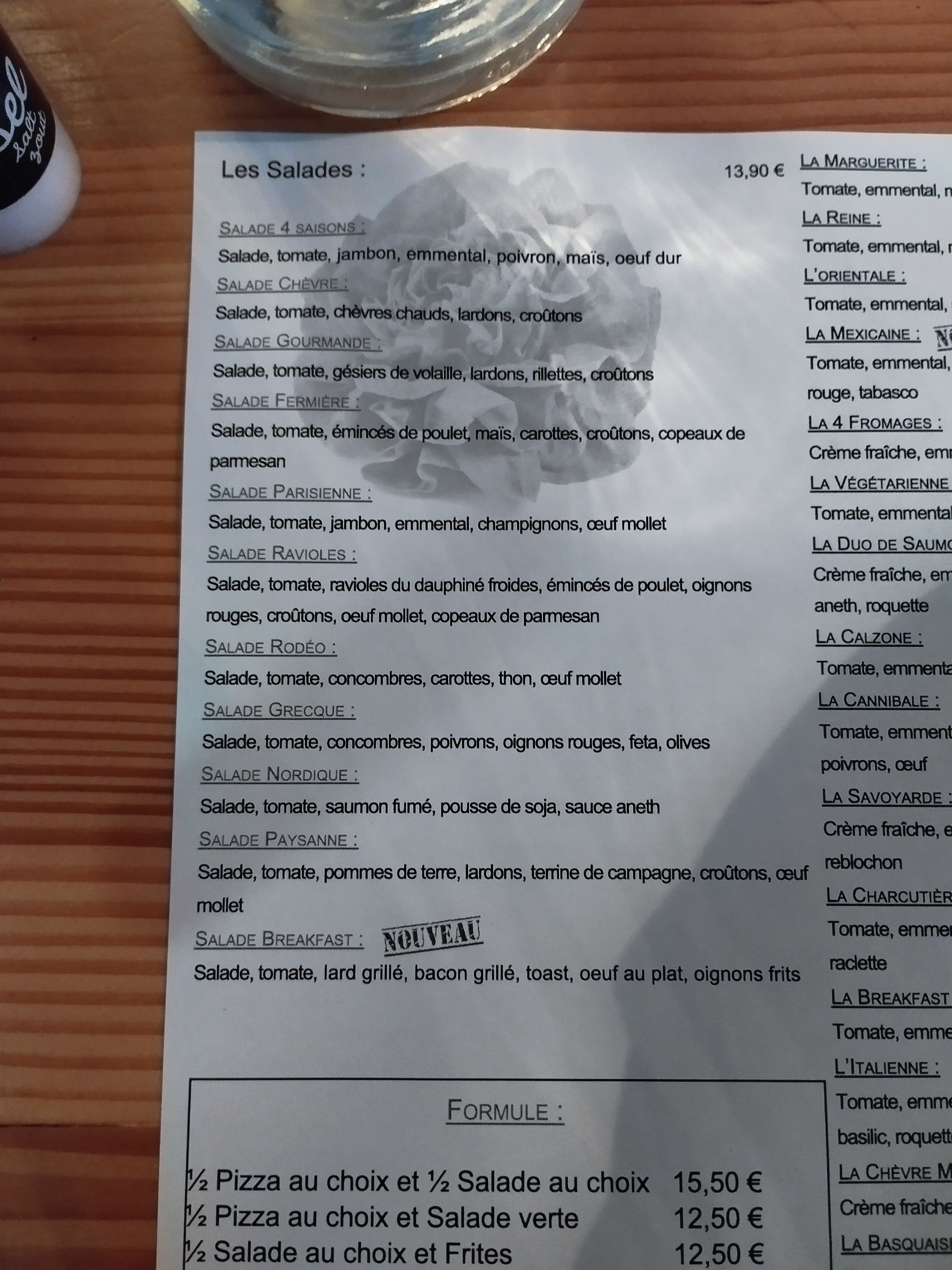 Très bien ! La formule pizza salade est top et vraiment copieux !
