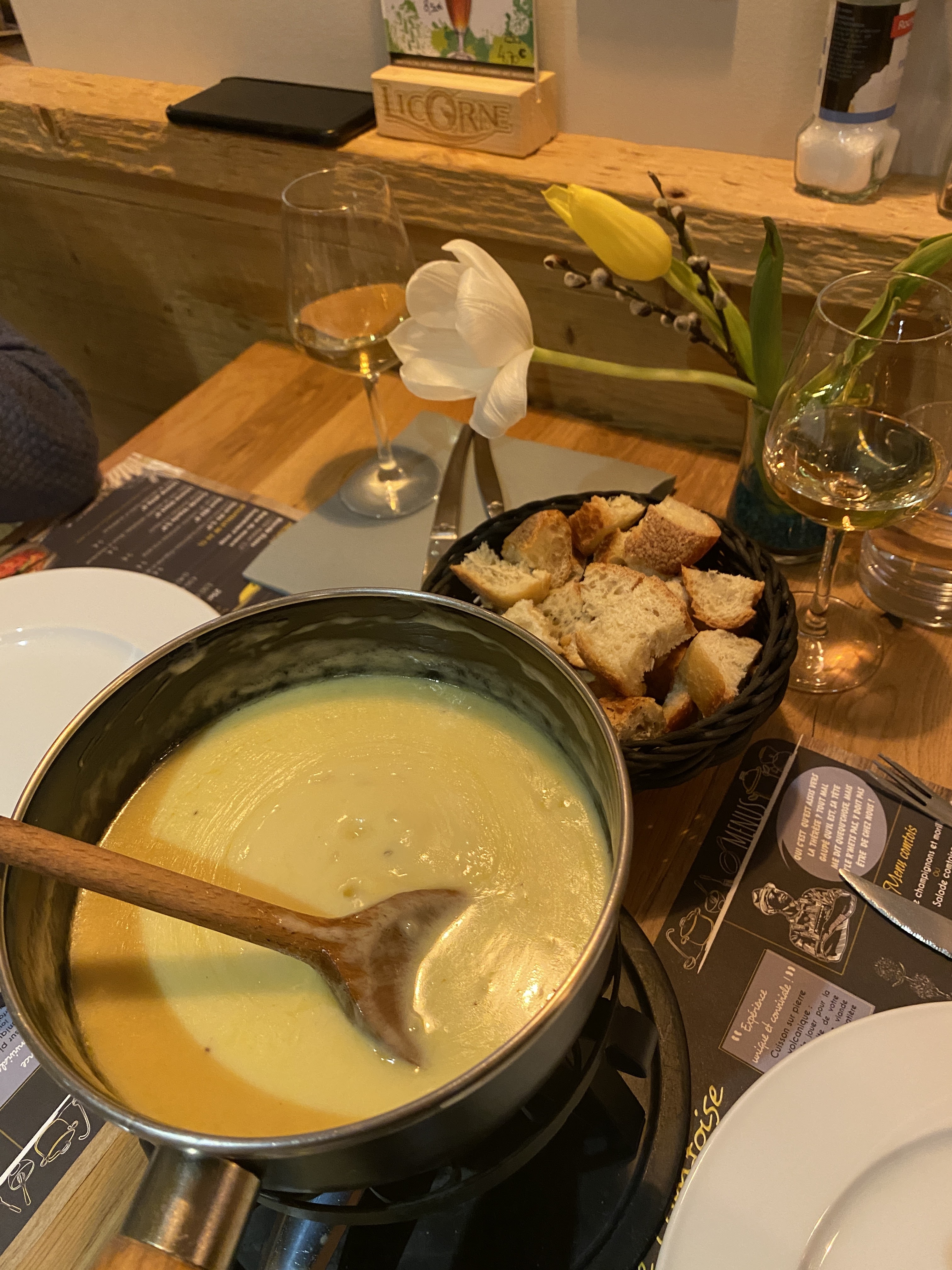 Personnel ultra sympathique. La fondue est très bonne, ça manquait peut être d’un accompagnement, une petite salade aurait fait du bien. Bon rapport qualité prix.